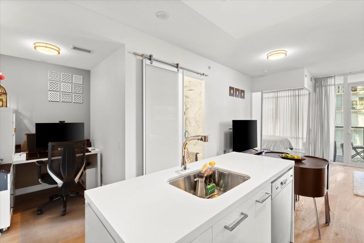 Experience upscale living at the renowned south beach condos, a sophisticated community known for its impressive resort-style amenities and striking hotel-inspired lobby. Residents enjoy access to exceptional facilities, including state-of-the-art fitness equipment, indoor and outdoor pools, saunas, hot tubs, a lounge/library, pool tables, an 18-seat theatre, party room, and more. This beautifully appointed suite features a spacious open-concept layout, high-end finishes, quality appliances, and a separate den ideal for working from home. Step onto the balcony to enjoy stunning evening sunsets and partial lake views. The unit has been freshly painted and professionally cleaned. Ideally located just minutes from the waterfront, you can enjoy nearby cafés including starbucks and tim hortons, scenic walks along the humber bay shoreline, and a great selection of local restaurants. Grocery stores, transit, highways, and everyday amenities are all conveniently close by. With the future park lawn go station also on the horizon. This vibrant and welcoming community offers an exceptional place to call home.