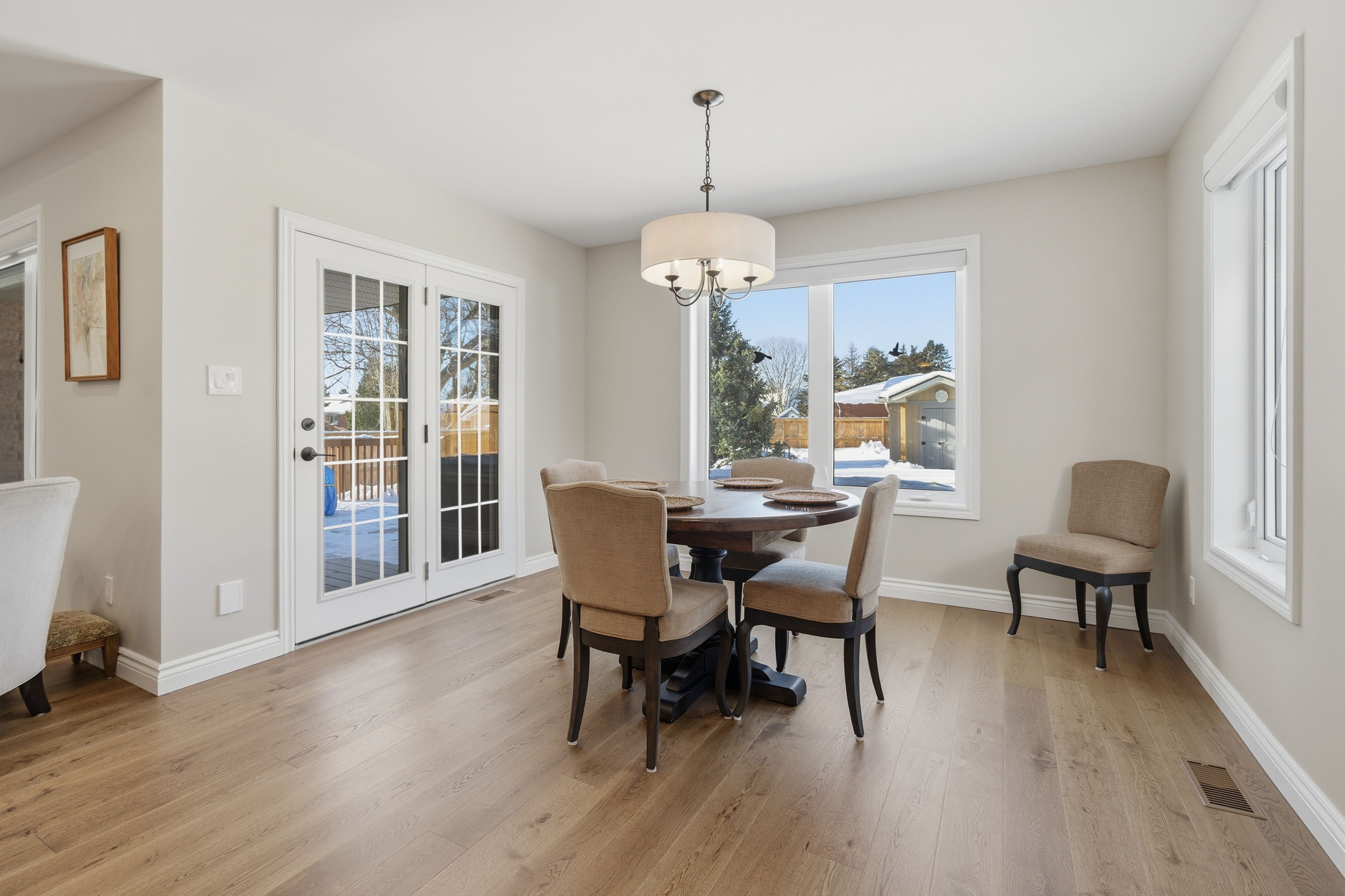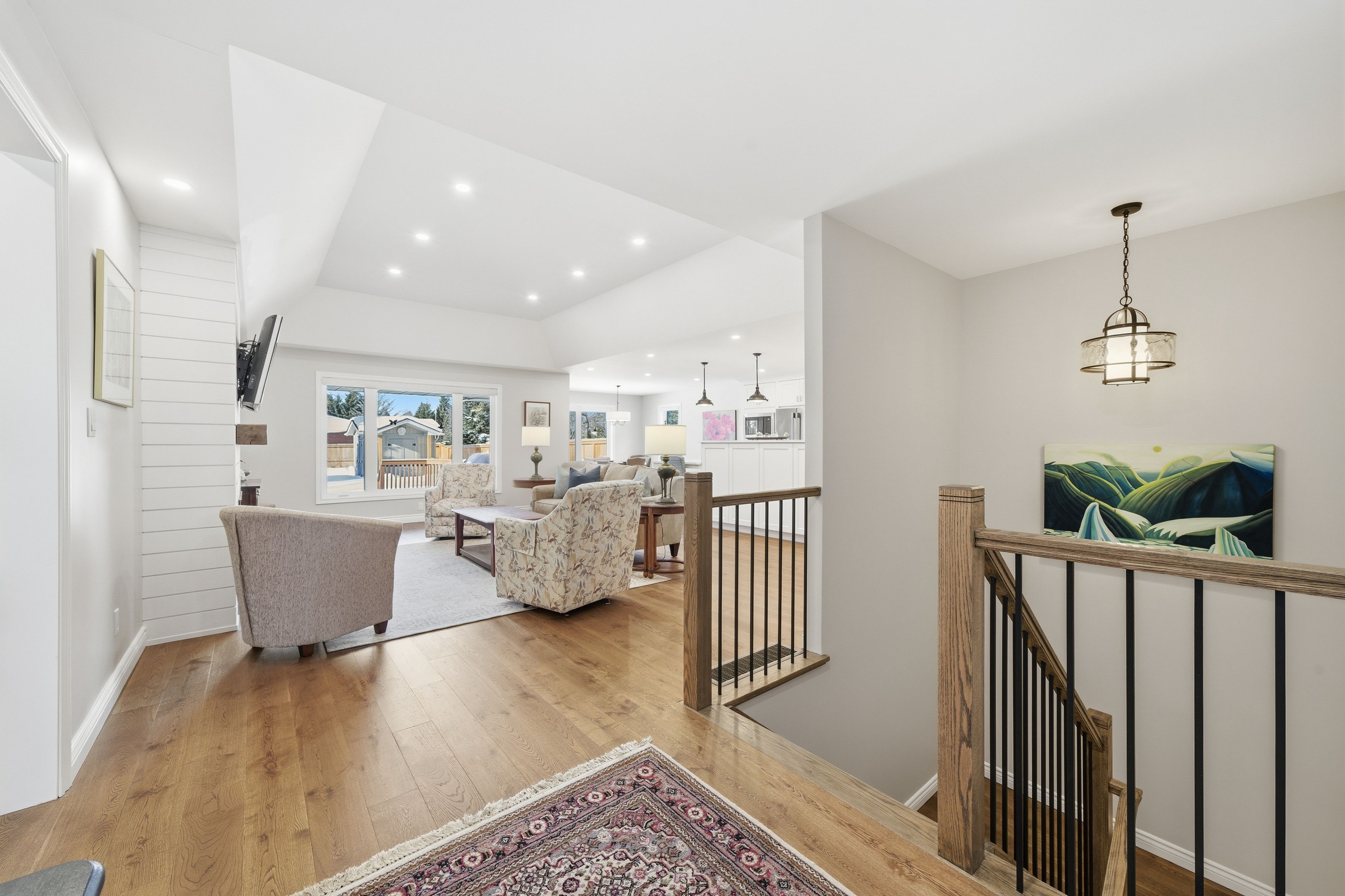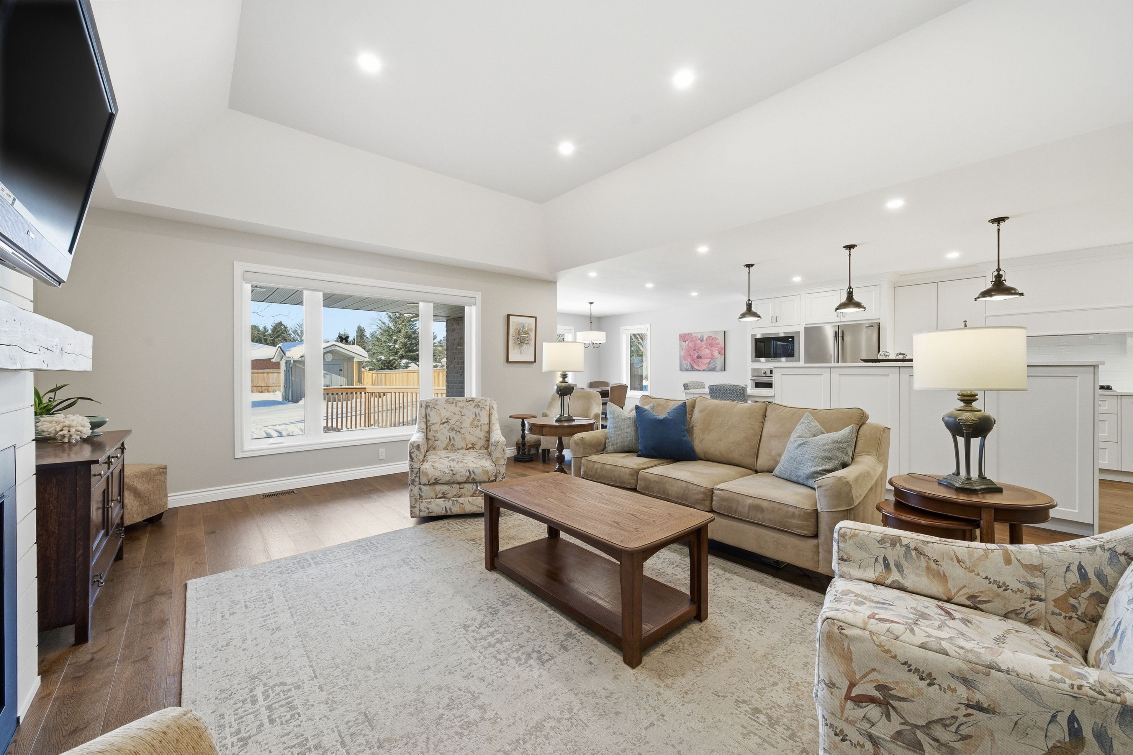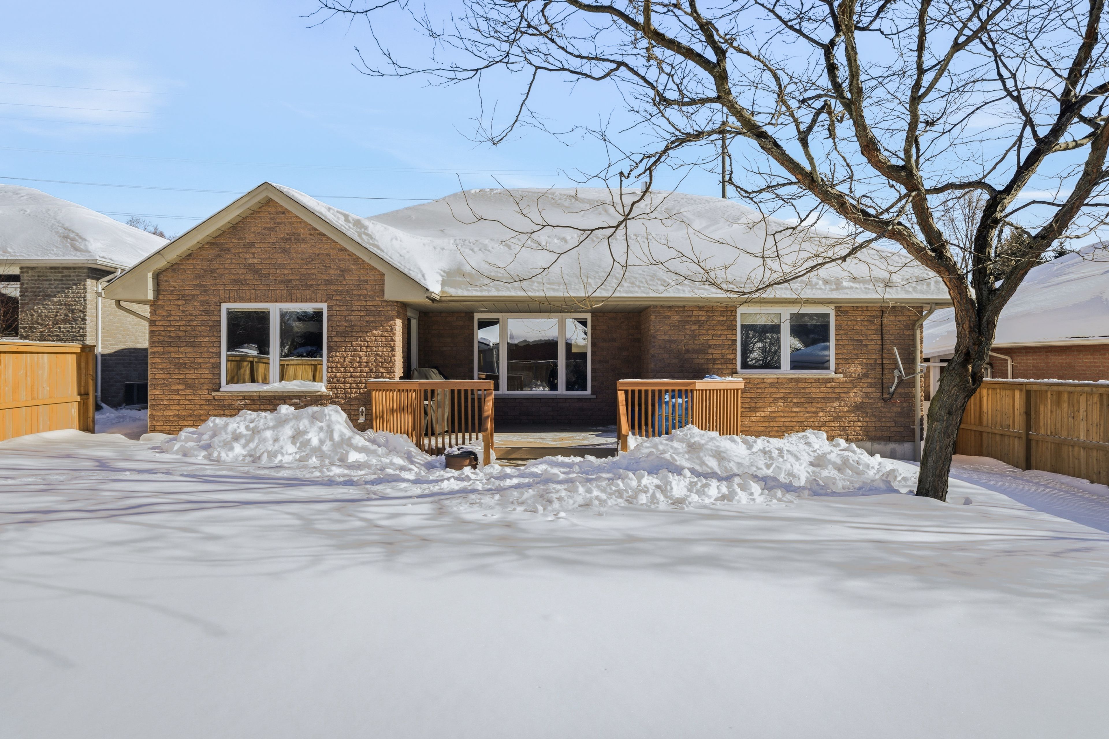 Beautifully renovated and meticulously maintained, this all-brick bungalow offers 4 bedrooms and 3. 5 bathrooms in a highly desirable mature brighton location. This impressive 3332sq ft home is ideally situated within walking distance to brighton's shops, parks, and schools. The bespoke main floor renovation offers a light-filled open-concept layout with luxury premium hardwood, expansive windows, a vaulted ceiling, and a natural gas fireplace that anchors the living space. The renovated kitchen features quartz countertops, custom backsplash, built-in stainless steel appliances, a built-in pantry within the island, and excellent workspace with its integrated breakfast table where friends will surely gather. The adjacent dining area comfortably accommodates a full family table and includes beautiful vistas, and a light-filled space ideal for relaxing while enjoying backyard views. A garden door opens to a generous deck, which is partially covered, with a gas bbq hookup-perfect for outdoor entertaining. The private and mature backyard offers ample space to enjoy the raised beds and garden paths with minimal maintenance. The main floor offers a spacious front bedroom with a tall vaulted ceiling, and excellent flexibility as a guest suite, den, or impressive home office featuring a newly renovated 4-piece ensuite. The generous primary bedroom enjoys peaceful views of the mature backyard, creating a calm and private retreat, and features a stunning 4-piece ensuite with luxurious and stylish tilework, a glass shower and walk-in closet. A renovated 2-piece powder room off the attached garage is conveniently located for guests. The fully finished basement adds excellent living space with a large recreation room, two additional bright bedrooms, and a 4-piece bathroom. A large laundry room with cabinetry leads to an unfinished area offering excellent storage, workshop, further development options. Minutes to the 401 corridor and moments from pec, come call brighton home!