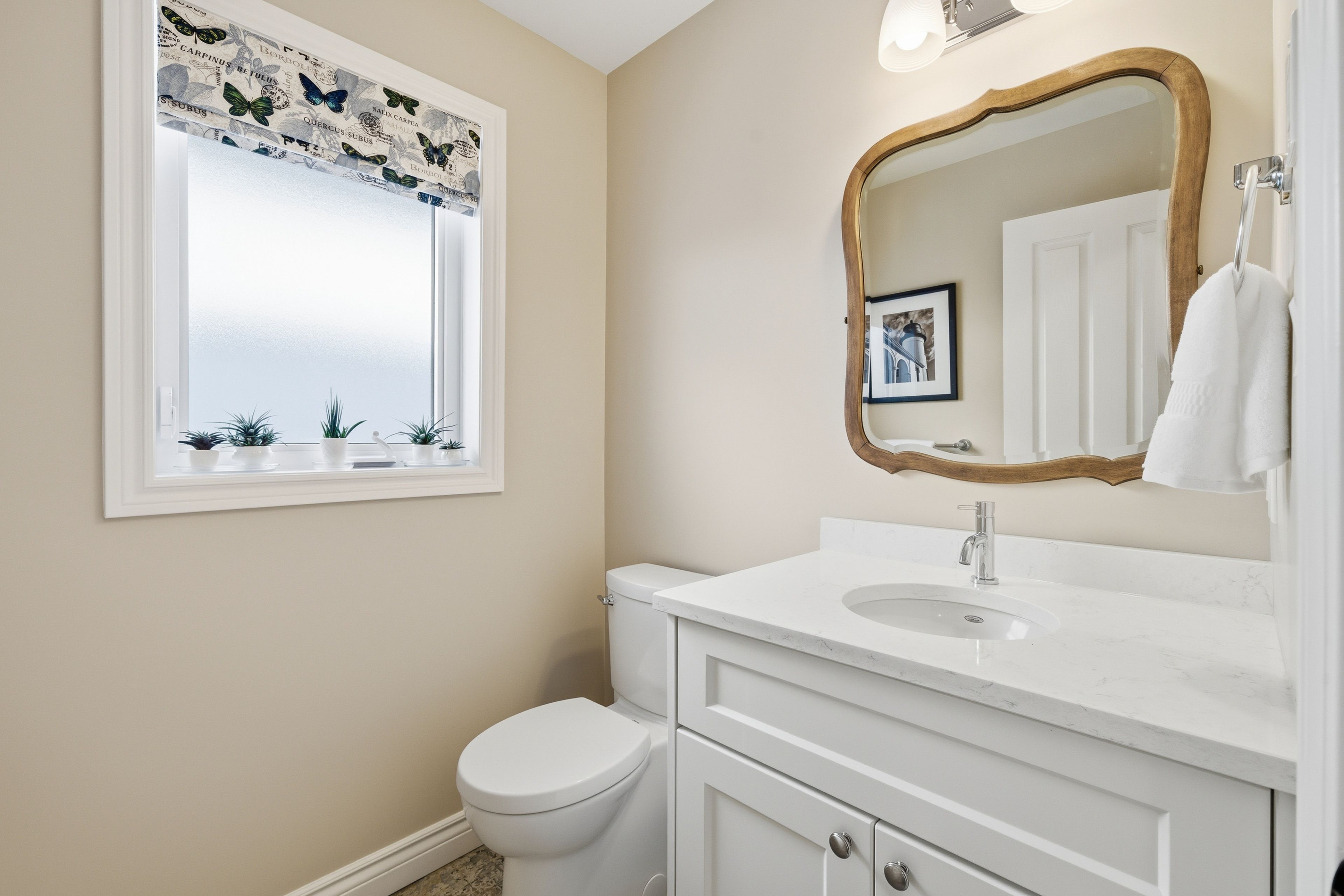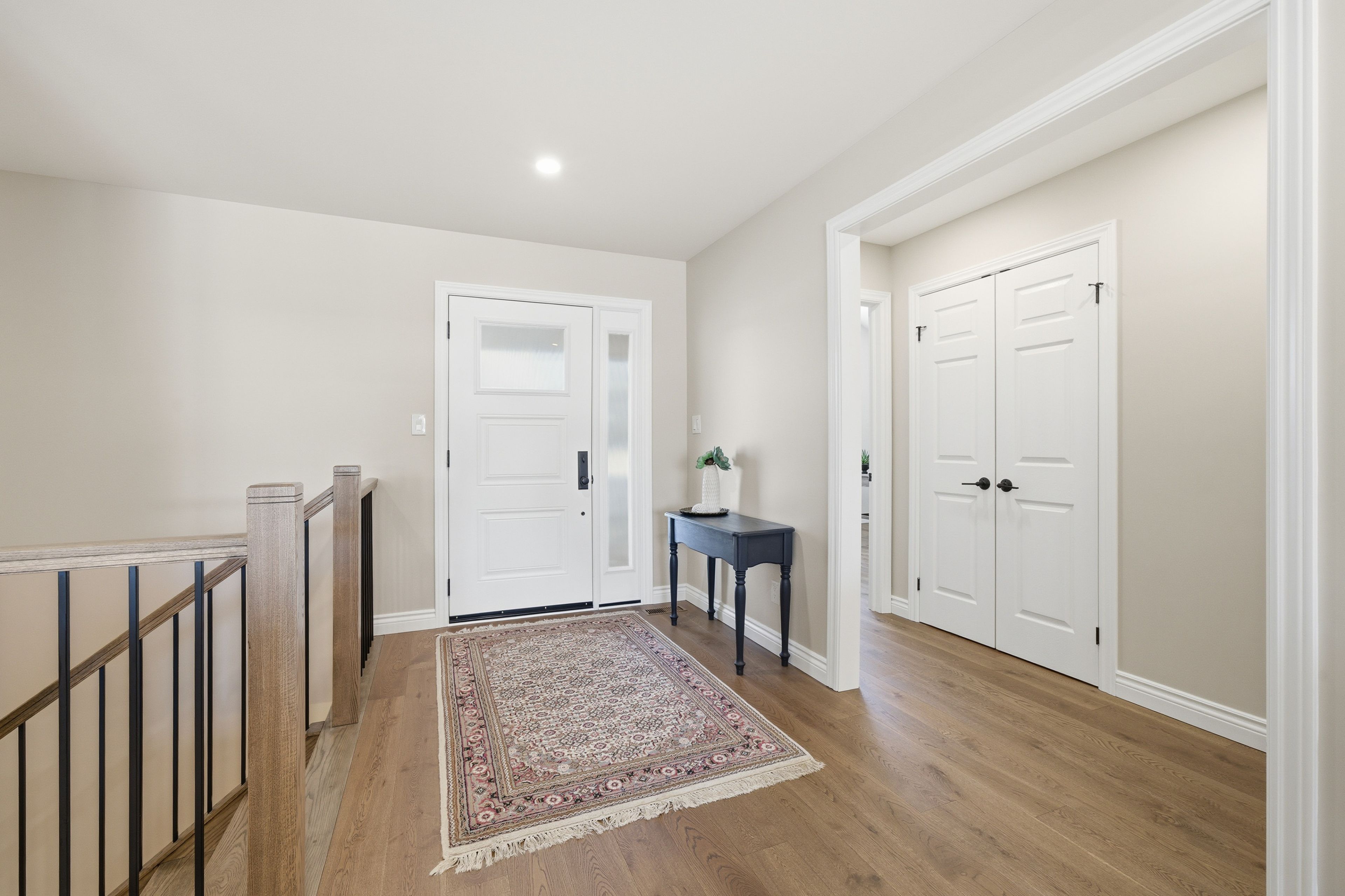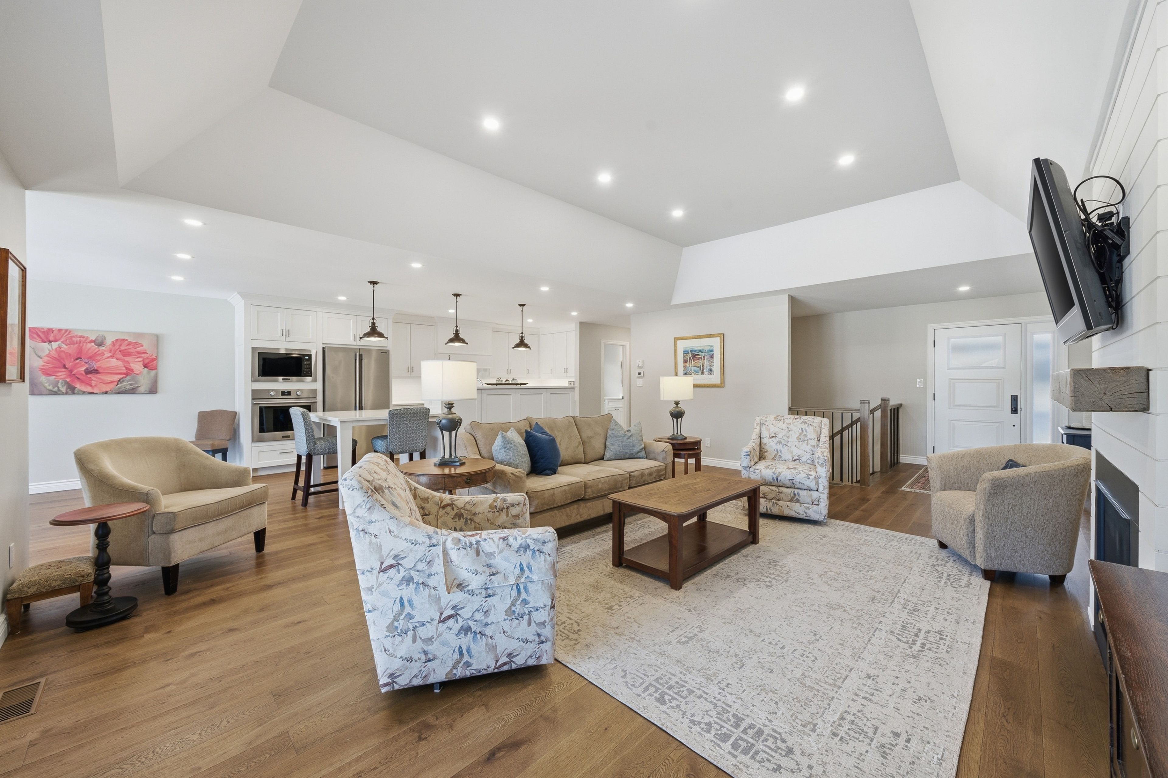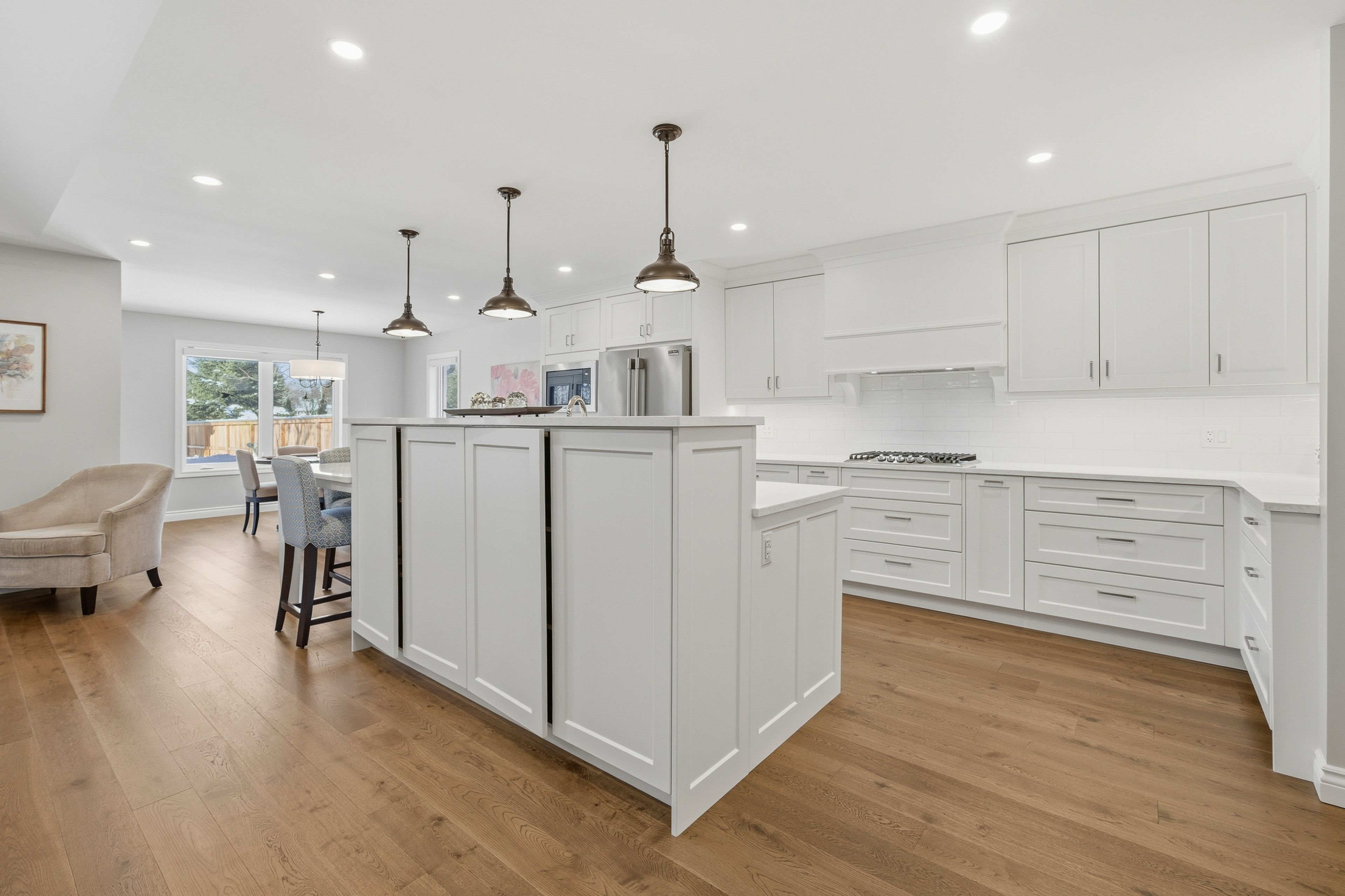 Beautifully renovated and meticulously maintained, this all-brick bungalow offers 4 bedrooms and 3. 5 bathrooms in a highly desirable mature brighton location. This impressive 3332sq ft home is ideally situated within walking distance to brighton's shops, parks, and schools. The bespoke main floor renovation offers a light-filled open-concept layout with luxury premium hardwood, expansive windows, a vaulted ceiling, and a natural gas fireplace that anchors the living space. The renovated kitchen features quartz countertops, custom backsplash, built-in stainless steel appliances, a built-in pantry within the island, and excellent workspace with its integrated breakfast table where friends will surely gather. The adjacent dining area comfortably accommodates a full family table and includes beautiful vistas, and a light-filled space ideal for relaxing while enjoying backyard views. A garden door opens to a generous deck, which is partially covered, with a gas bbq hookup-perfect for outdoor entertaining. The private and mature backyard offers ample space to enjoy the raised beds and garden paths with minimal maintenance. The main floor offers a spacious front bedroom with a tall vaulted ceiling, and excellent flexibility as a guest suite, den, or impressive home office featuring a newly renovated 4-piece ensuite. The generous primary bedroom enjoys peaceful views of the mature backyard, creating a calm and private retreat, and features a stunning 4-piece ensuite with luxurious and stylish tilework, a glass shower and walk-in closet. A renovated 2-piece powder room off the attached garage is conveniently located for guests. The fully finished basement adds excellent living space with a large recreation room, two additional bright bedrooms, and a 4-piece bathroom. A large laundry room with cabinetry leads to an unfinished area offering excellent storage, workshop, further development options. Minutes to the 401 corridor and moments from pec, come call brighton home!