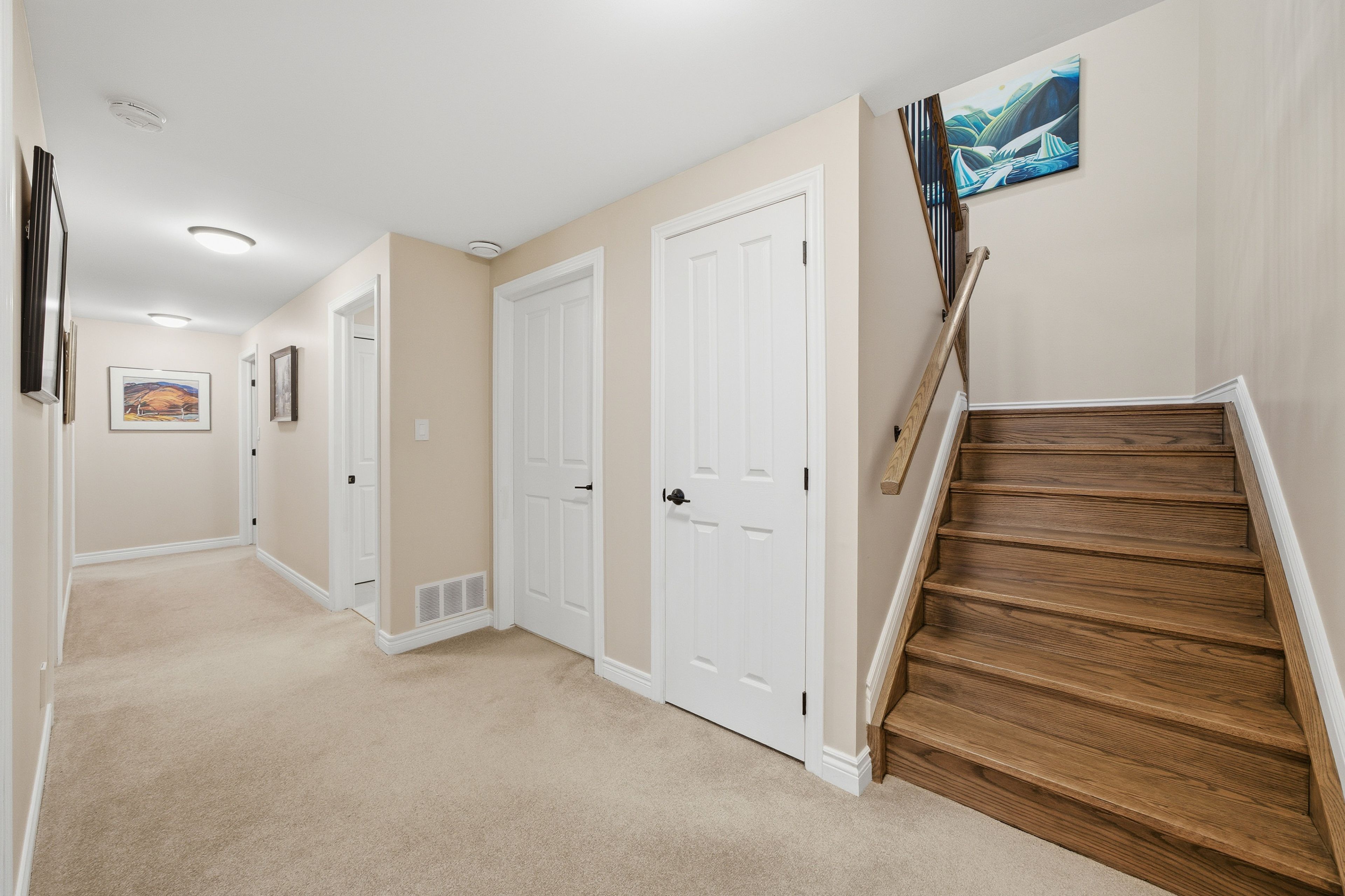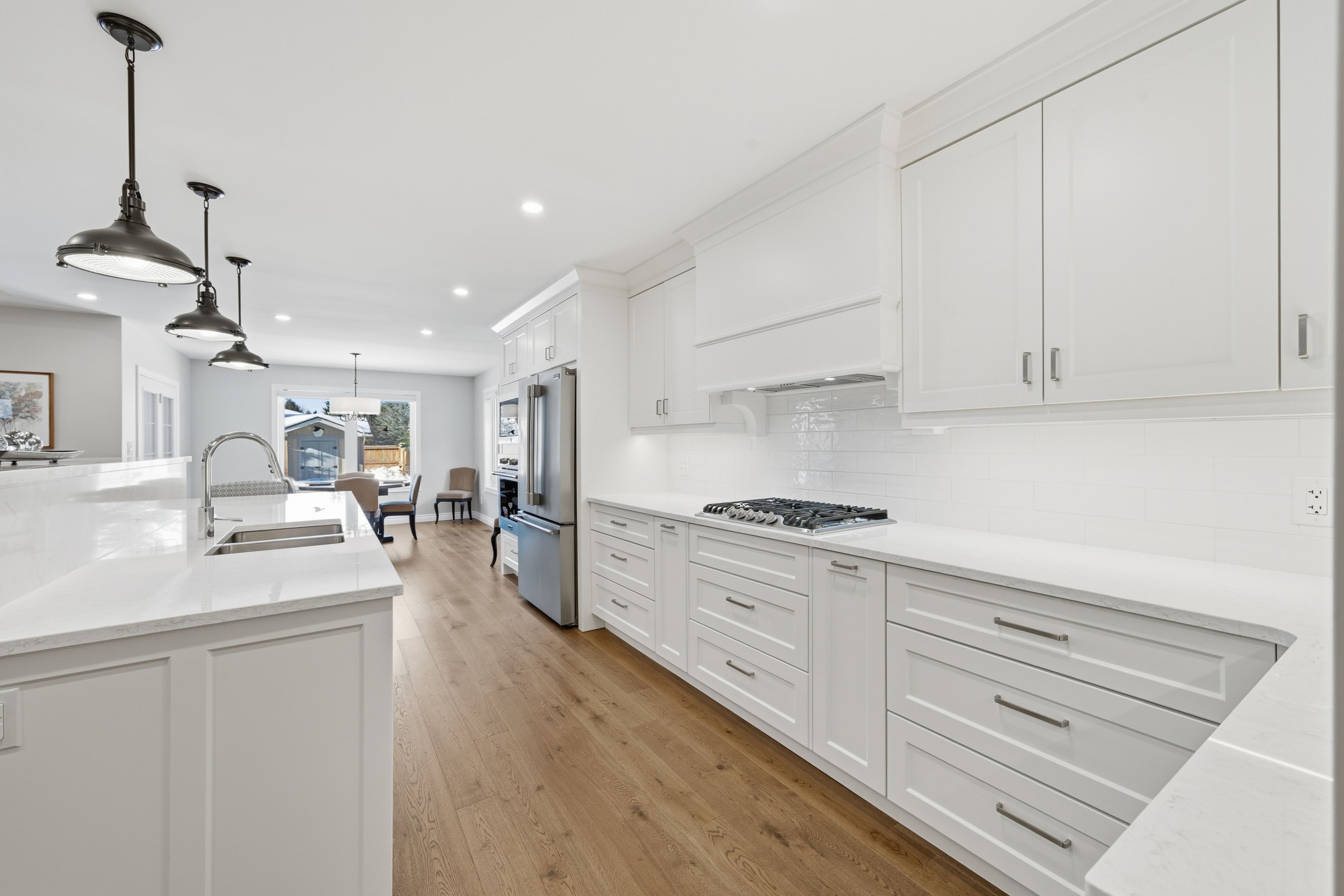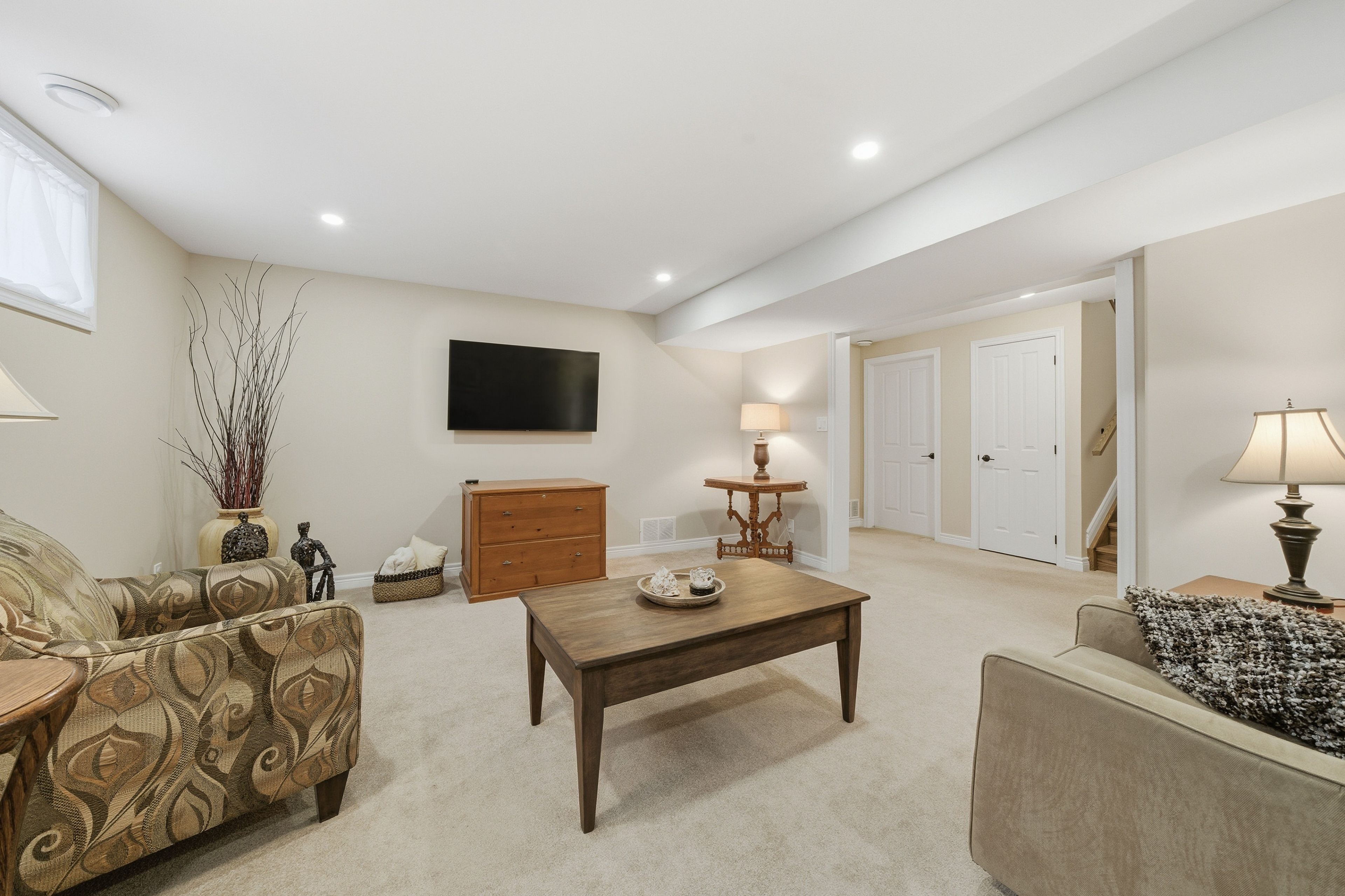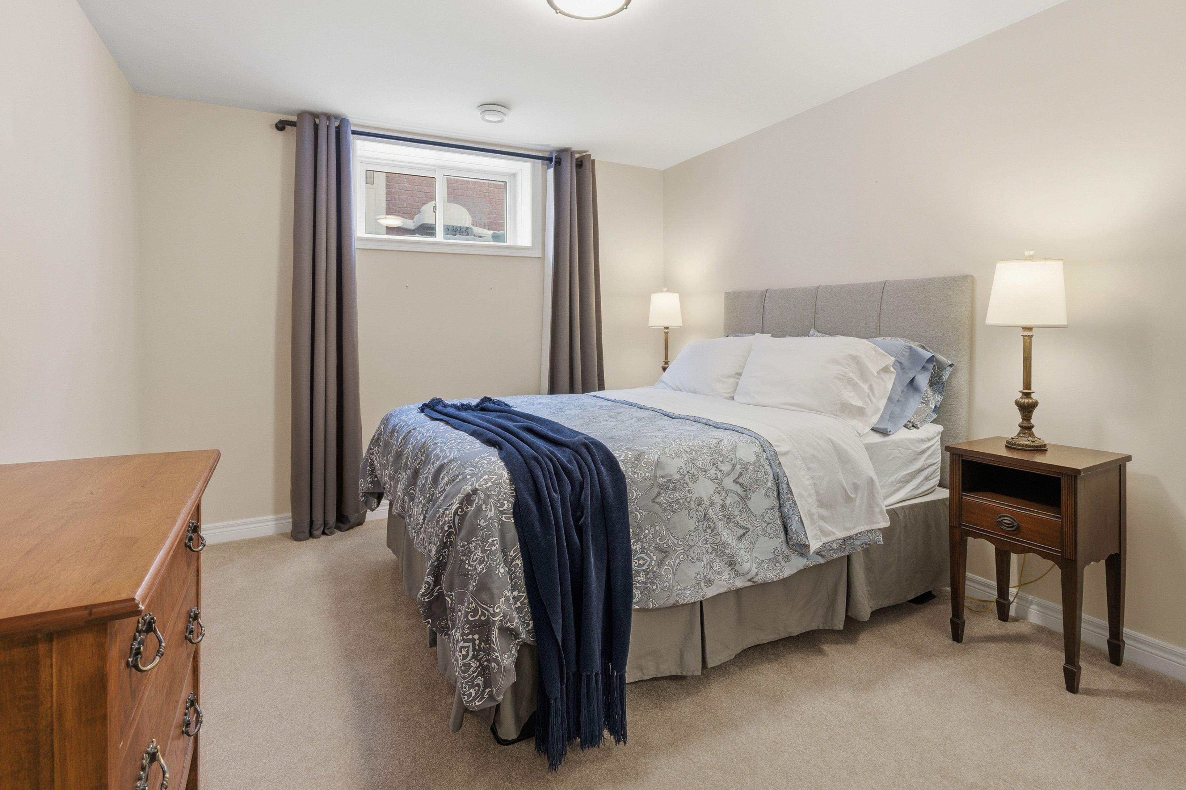 Beautifully renovated and meticulously maintained, this all-brick bungalow offers 4 bedrooms and 3. 5 bathrooms in a highly desirable mature brighton location. This impressive 3332sq ft home is ideally situated within walking distance to brighton's shops, parks, and schools. The bespoke main floor renovation offers a light-filled open-concept layout with luxury premium hardwood, expansive windows, a vaulted ceiling, and a natural gas fireplace that anchors the living space. The renovated kitchen features quartz countertops, custom backsplash, built-in stainless steel appliances, a built-in pantry within the island, and excellent workspace with its integrated breakfast table where friends will surely gather. The adjacent dining area comfortably accommodates a full family table and includes beautiful vistas, and a light-filled space ideal for relaxing while enjoying backyard views. A garden door opens to a generous deck, which is partially covered, with a gas bbq hookup-perfect for outdoor entertaining. The private and mature backyard offers ample space to enjoy the raised beds and garden paths with minimal maintenance. The main floor offers a spacious front bedroom with a tall vaulted ceiling, and excellent flexibility as a guest suite, den, or impressive home office featuring a newly renovated 4-piece ensuite. The generous primary bedroom enjoys peaceful views of the mature backyard, creating a calm and private retreat, and features a stunning 4-piece ensuite with luxurious and stylish tilework, a glass shower and walk-in closet. A renovated 2-piece powder room off the attached garage is conveniently located for guests. The fully finished basement adds excellent living space with a large recreation room, two additional bright bedrooms, and a 4-piece bathroom. A large laundry room with cabinetry leads to an unfinished area offering excellent storage, workshop, further development options. Minutes to the 401 corridor and moments from pec, come call brighton home!