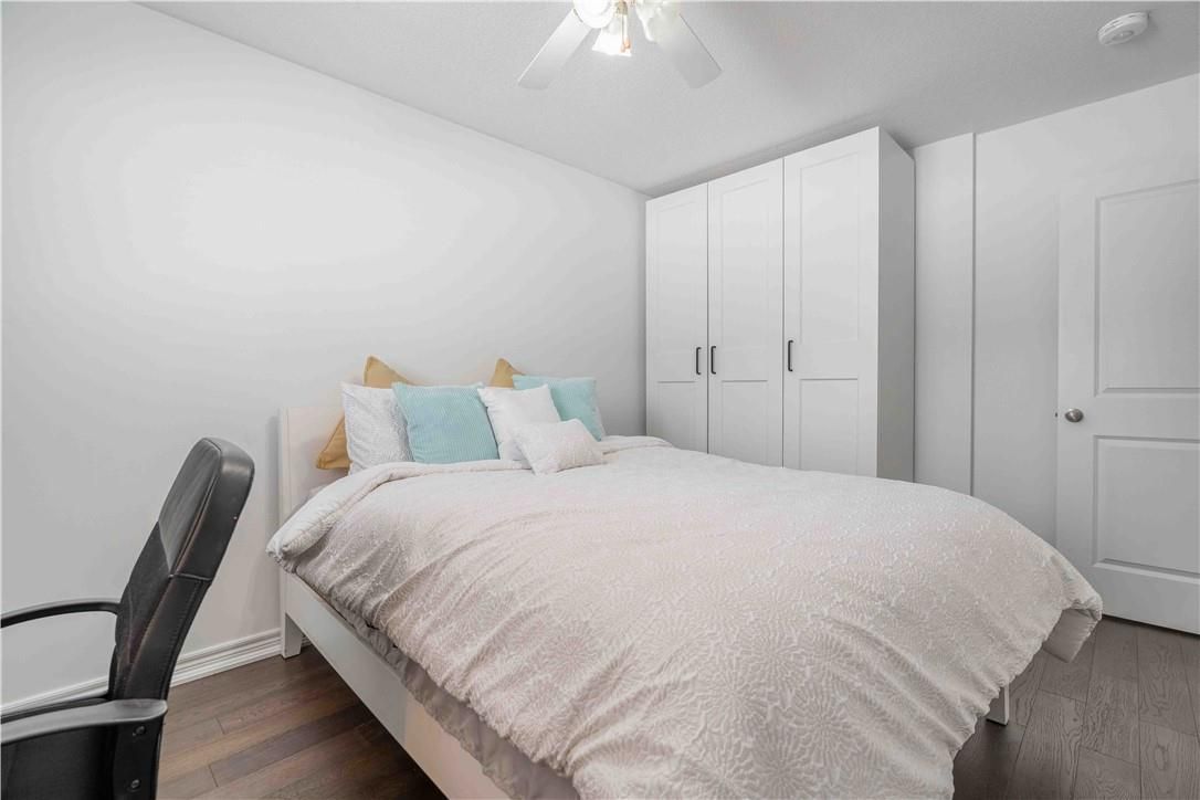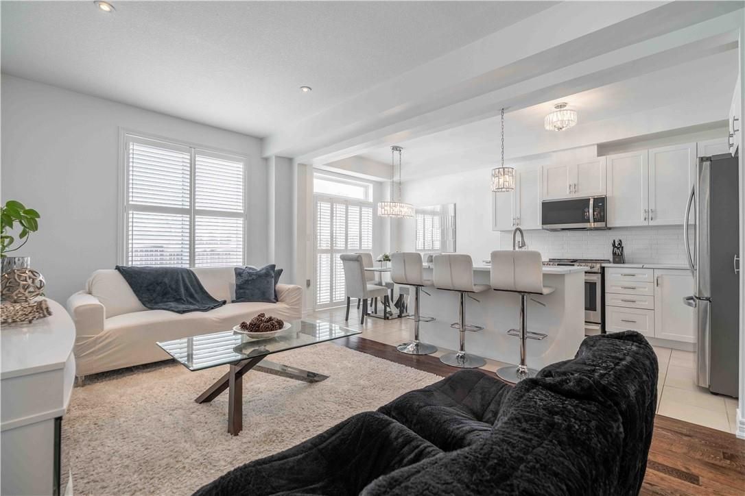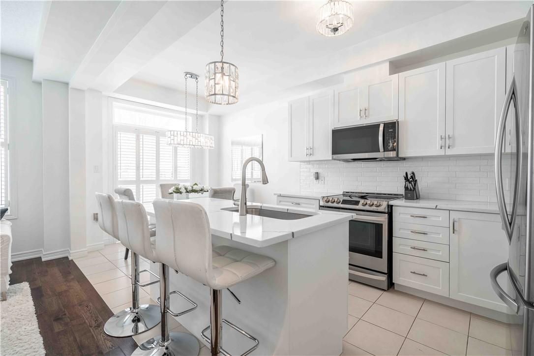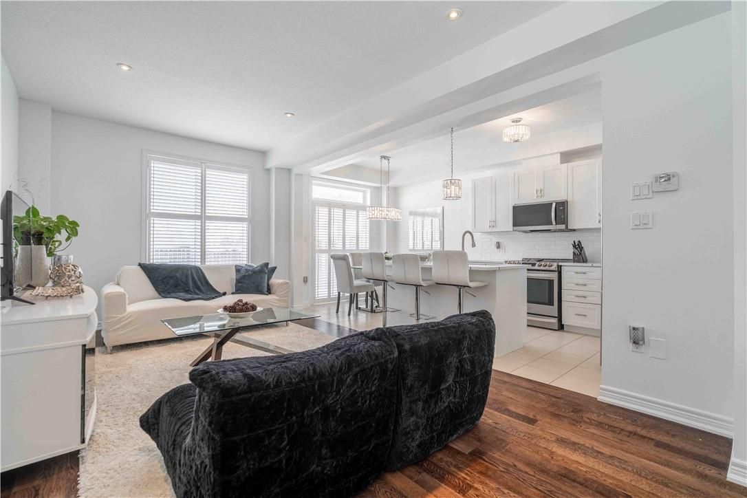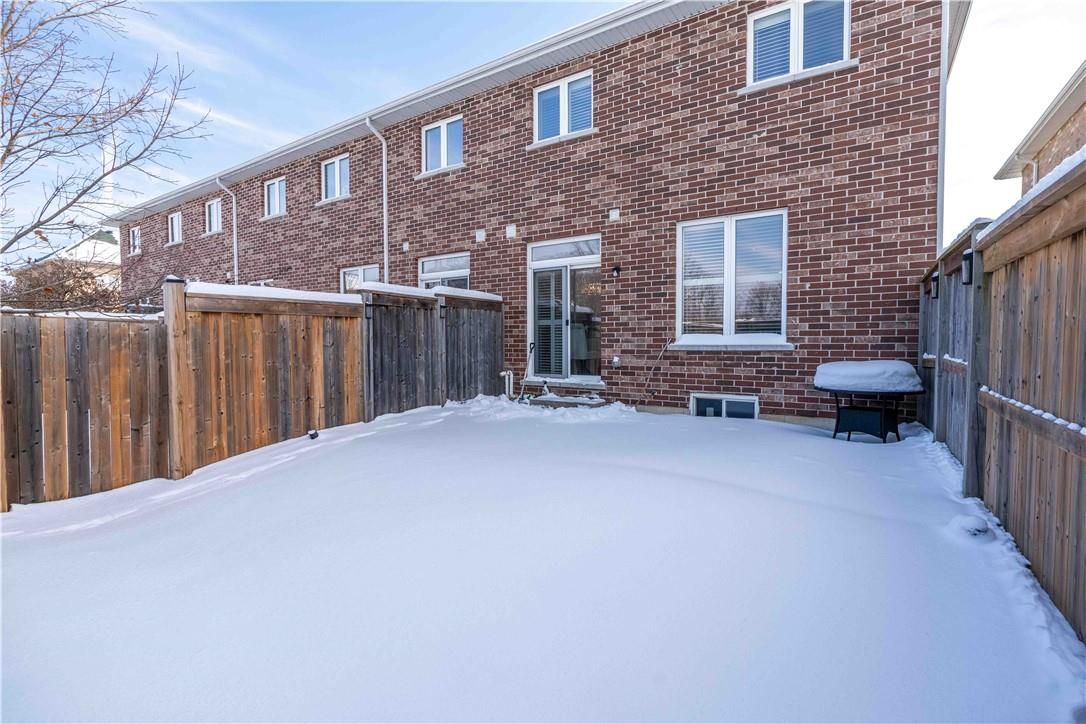 Welcome to this beautiful, clean, crisp two-storey end-unit freehold townhome, ideally located in the heart of sought-after ancaster meadowlands. Backing onto peaceful green space, this home offers added privacy and a rare side-back entrance-perfect for easy backyard access without passing through the house. Thoughtfully updated throughout, the home features brand-new california shutters on windows, open living space for perfect entertaining, oak staircase and a new washer and dryer purchased last year. The spacious primary bedroom is enhanced with custom california closets, while both bathrooms boast newly installed cabinetry for a fresh, contemporary feel. The functional layout includes three well-sized bedrooms, two and a half baths, and an open loft area-ideal for a home office, reading nook, or additional living space. Enjoy the benefits of freehold ownership with a modest condo road fee, all within a family-friendly neighbourhood close to parks, schools, and amenities. A rare end-unit backing onto green space-this one truly checks all the boxes.