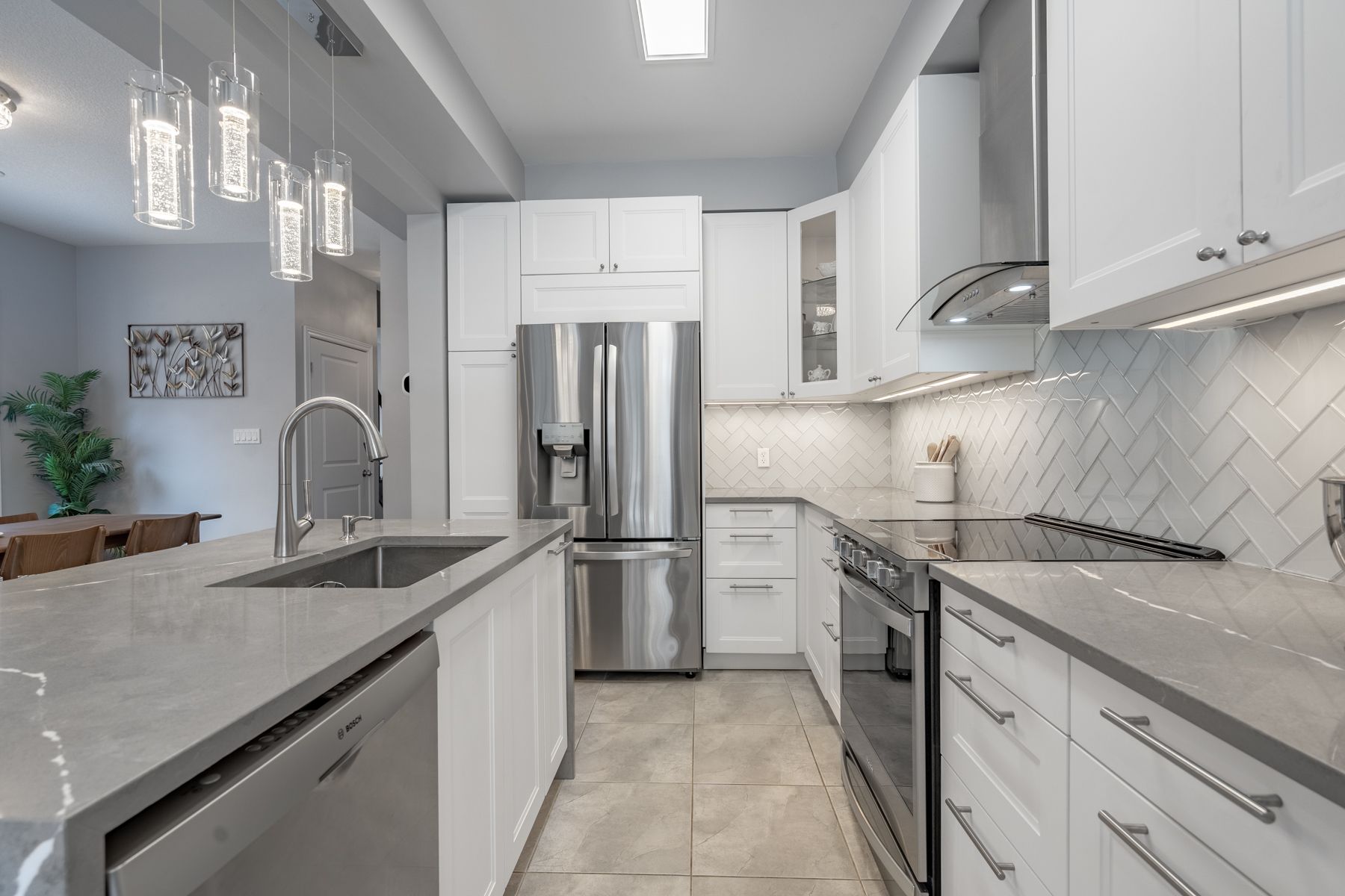 • Updated kitchen features new appliances and a stylish waterfall island.