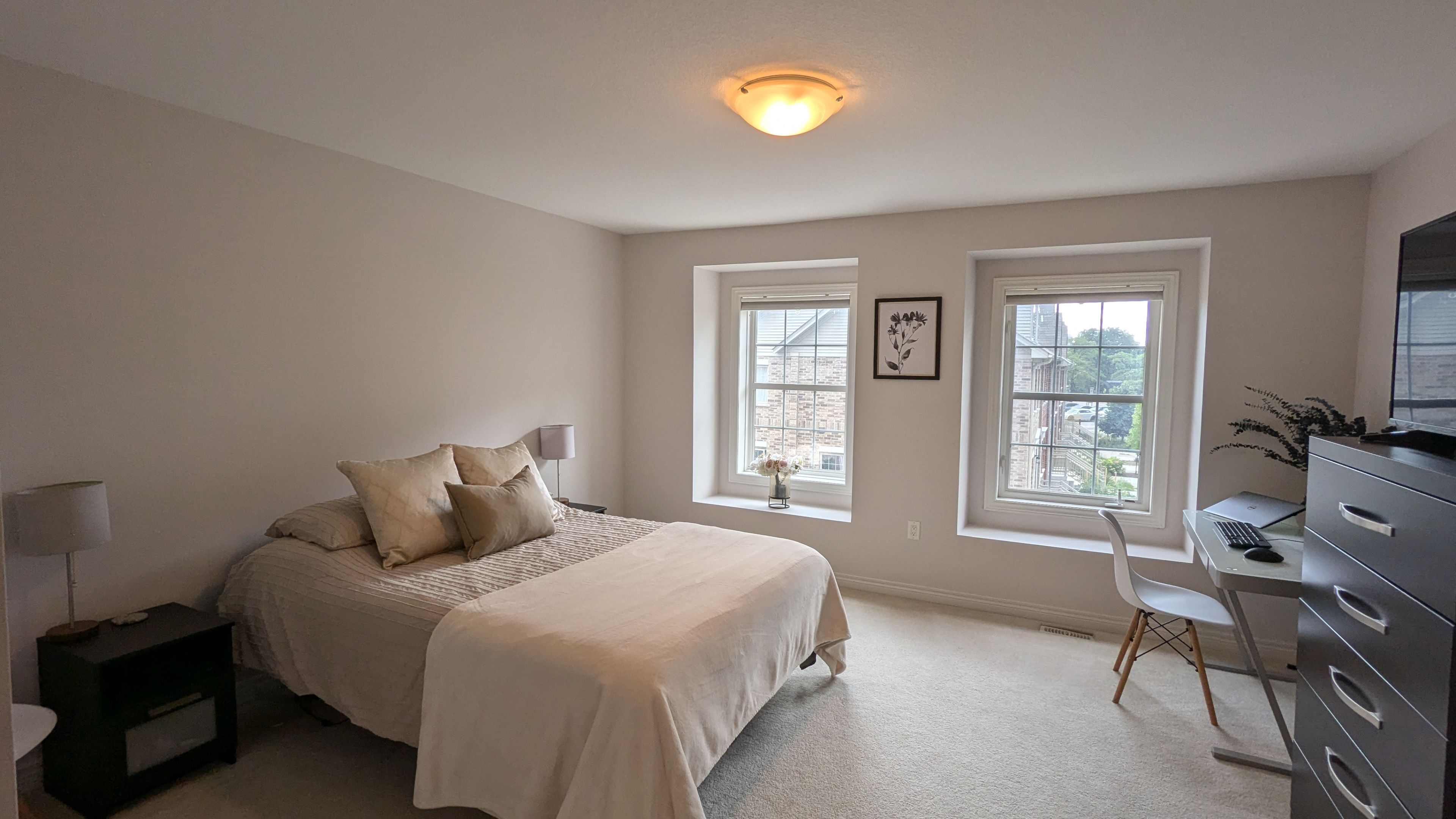 Welcome to this modern and spacious 2-bedroom, 2. 5-bathroom townhome. Located at the end of a quiet dead-end street in a friendly, well-maintained community, its just minutes from downtown kitchener and uptown waterloo. Ideal for young professionals, or a young family. Close to all amenities, including grocery stores, public transit (steps from the go transit station), restaurants, shopping, schools, parks, and walking and biking trails, with easy access to hwy 7 & 401. The home features 9-foot ceilings, lots of storage space and a rare two-car tandem garage. A spacious living room that flows into a modern kitchen with stainless steel appliances, granite countertops, kitchen island and plenty of cabinet space. Step out into your private backyard oasis, complete with an elevated oversized deck, a perennial flower garden, and grassy space perfect for summer bbqs or relaxing. The main floor also includes a powder room and a closet for added convenience. Upstairs, you will find two large bedrooms, each with its own ensuite bathroom. The primary bedroom boasts a spacious walk-in closet, while the second bedroom offers versatility for family, guests, or a home office. The top floor also features an ensuite laundry area for added convenience. Don't miss this one! Schedule your showing today.