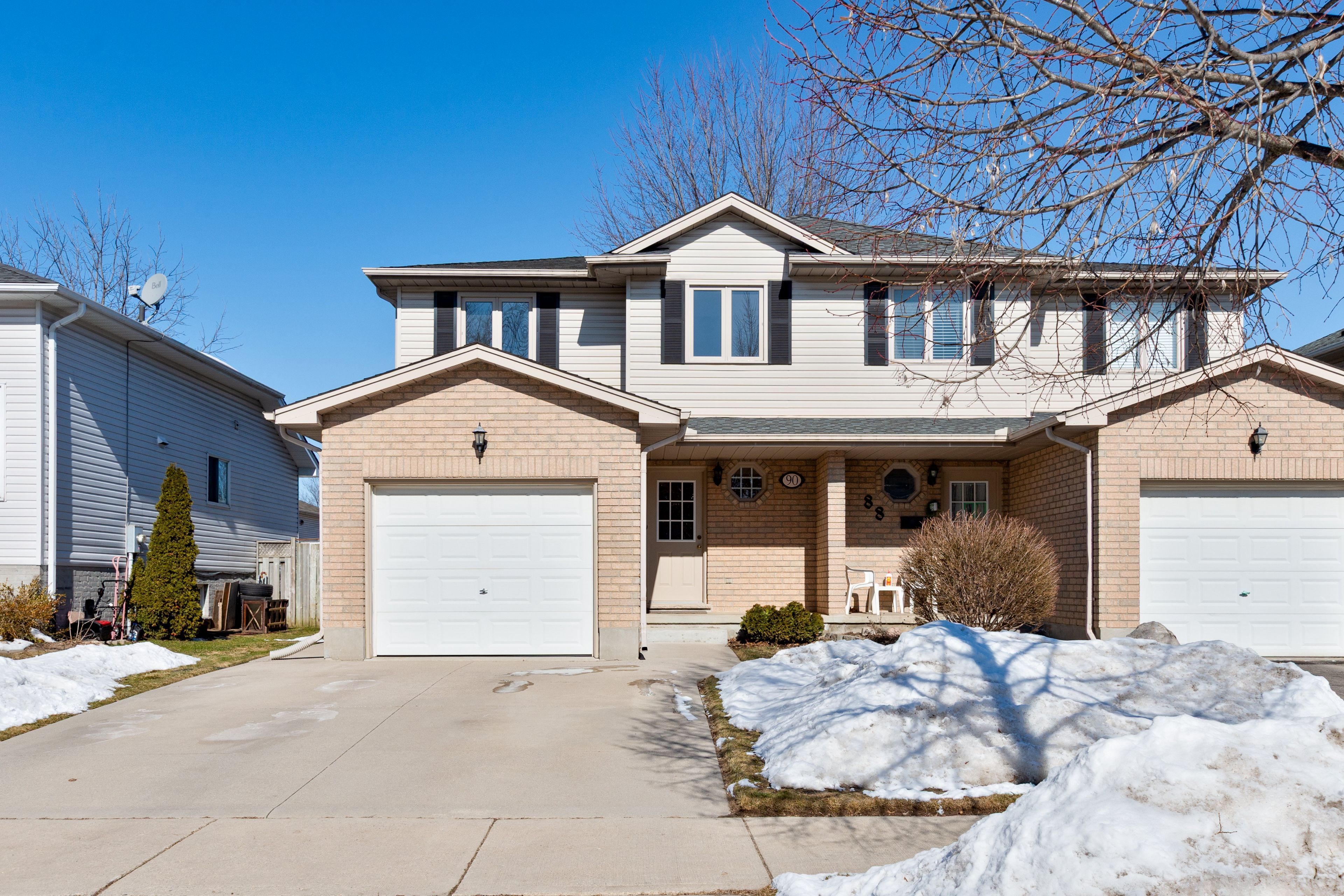 Great 3 bedroom family home situated on a quiet tree lined crescent. Spacious inviting foyer features a 2-piece bathroom and inside entry to the attached one car garage. Galley style eat-in kitchen with 4 appliances included. Lots of natural light streams into the dining area great for entertaining and open to the bright living room with large picture window. Patio door off dining area leads to private partly fenced back yard with a 12 foot x 18 foot stamped, coloured concrete patio and an 8 foot x 10 foot shed on a concrete pad. Second floor offers 3 bedrooms, principal bedroom with bonus 3 piece ensuite, walk in closet and an additional 4 piece main bathroom. Lower level offers additional living space with a finished family room with cozy gas fireplace great space for watching movies, or relaxing. Additional storage area, laundry room and rough in for future bathroom. Washer/dryer included plus an owned water heater purchased in 2023. Updates through the years include: 40 year shingles installed in 2010, 2 new vinyl bedroom windows in 2011, freshly painted main floor, bedrooms and basement. Parking for 3 cars featuring a double wide concrete driveway. Conveniently located close to schools, transit, just minutes away from argyle mall, grocery stores, big box stores, london airport and veterans memorial parkway with quick access to highway 401. Don't miss out on this opportunity to live in this family friendly home offering lots of space and versatility with a possible flexible possession date.