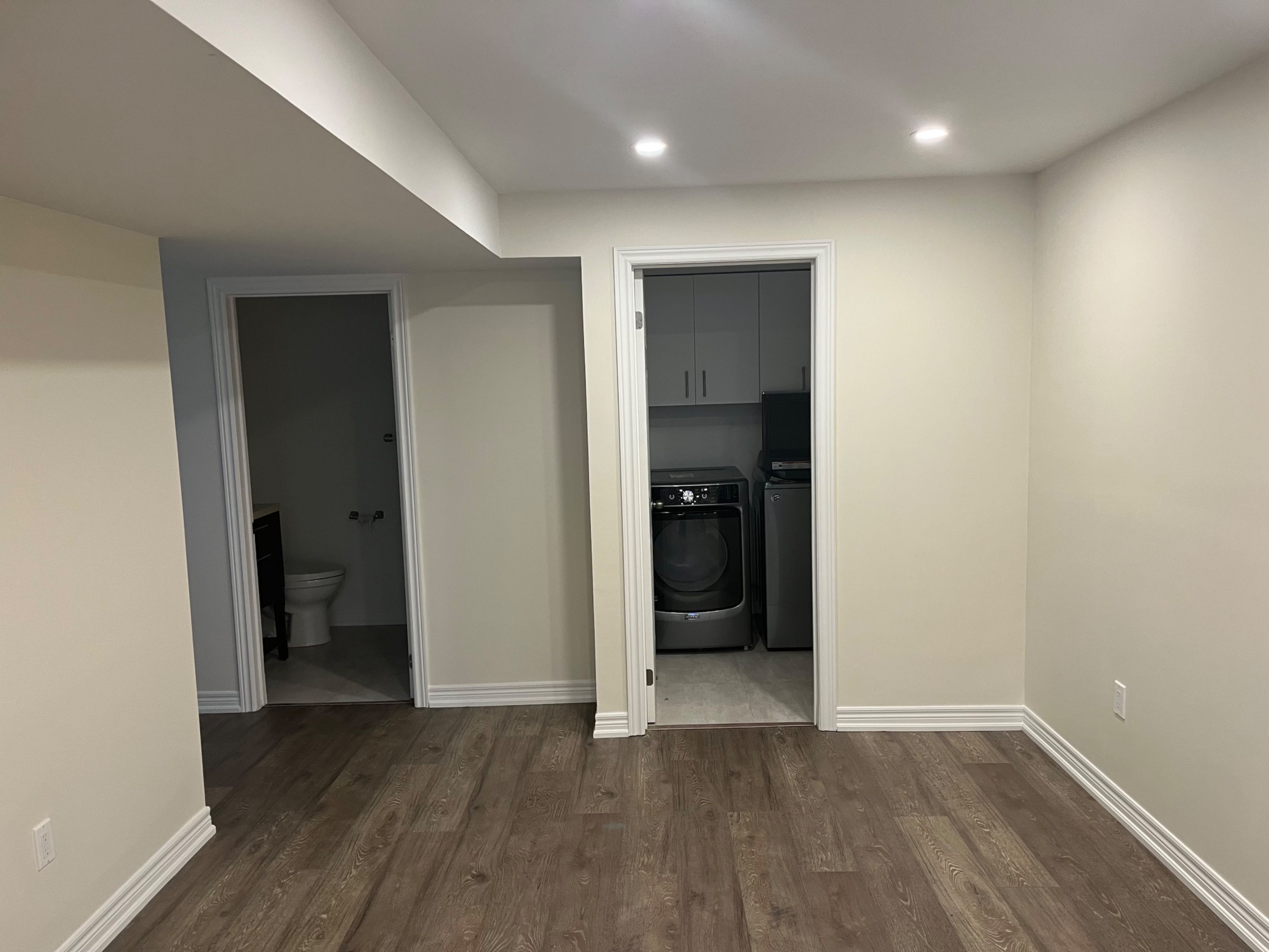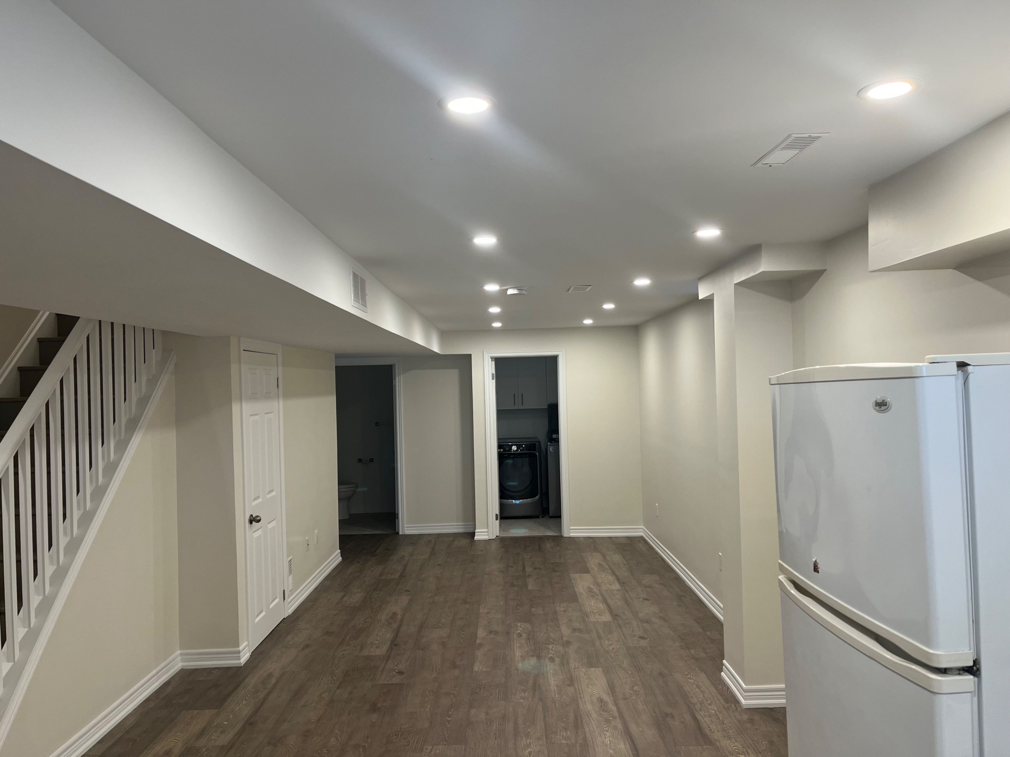 Experience comfortable living in this bright, quiet basement apartment, now move-in ready aftera renovation. Enjoy the convenience of direct access through the garage and your own dedicatedparking spot. Features:freshly painted throughout for a crisp, modern feelsmooth ceilings for a clean, contemporary lookpot lights that offer bright, elegant illuminationmodern kitchen with ample storage and workspacecozy living area perfect for relaxing or entertainingprivate laundry room for added conveniencespacious bedroom and bathroom with quality finishesstorage closet to keep you organizedlocated in a peaceful neighbourhood, this apartment is ideal for those seeking comfort,privacy, and a quiet retreat. Schedule your viewing today-don't miss your chance to call thisexceptional space home!