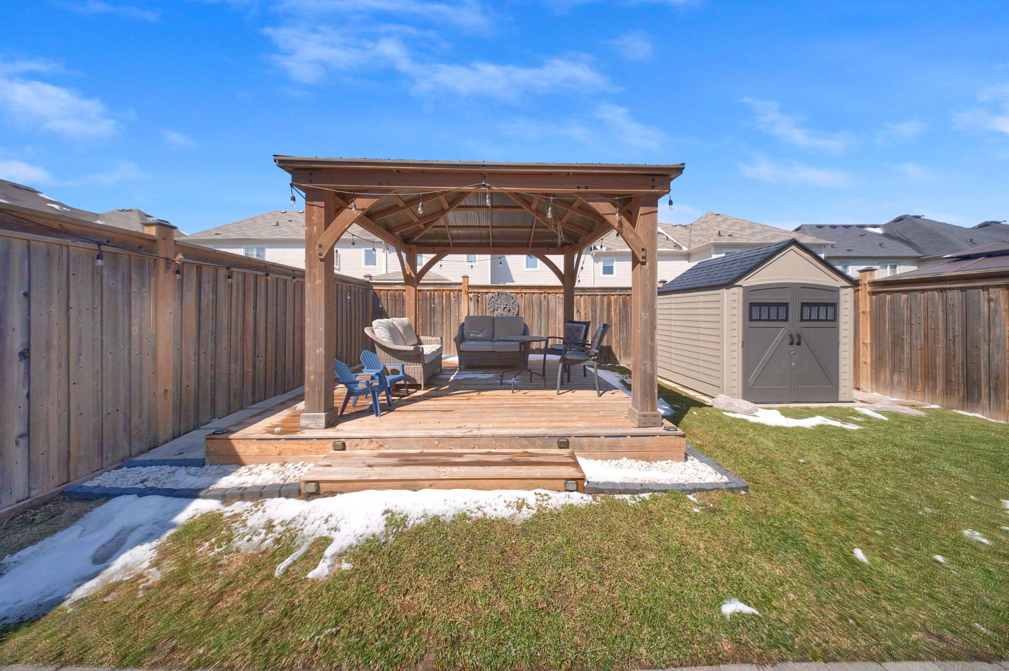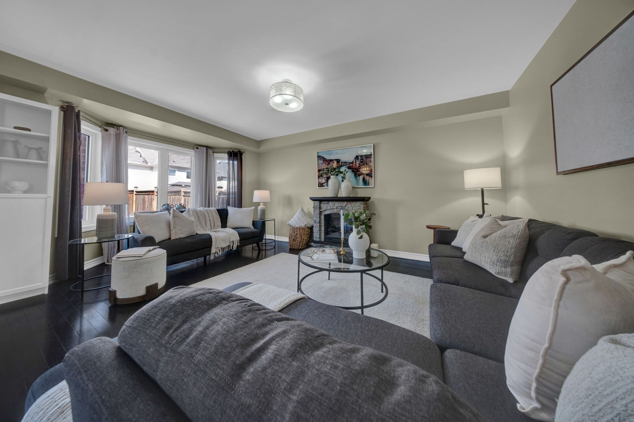 Welcome to the highly sought after northglen community in bowmanville! This move in ready home offers a bright, open concept layout designed for modern living, with thoughtful upgrades throughout including smart home features like a nest thermostat and doorbell. The main floor features a stylish kitchen complete with granite counters, tile backsplash, stainless steel appliances, a gas range and a convenient pantry, flowing seamlessly into the great room and dining areas with hardwood floors, smooth ceilings and upgraded lighting. Upstairs, enjoy the convenience of second floor laundry and well appointed bedrooms, all featuring walk-in closets for ample storage. The spacious primary bedroom includes a walk-in closet and a 4 piece ensuite, while the second bedroom offers a beautiful private balcony, perfect for morning coffee or evening relaxation. The finished basement adds valuable living space ideal for a rec room, home office or family hangout, owned hot water tank included. Step outside to your private backyard retreat featuring professional interlocking, a newer deck and gazebo (2024), hot tub, gas line for bbq, built in fire pit and garden shed, an ideal setup for entertaining or relaxing year round. Located in a family-friendly neighbourhood just a short walk to a new public school, parks and trails. This is a fantastic opportunity to get into one of bowmanville's most desirable communities.