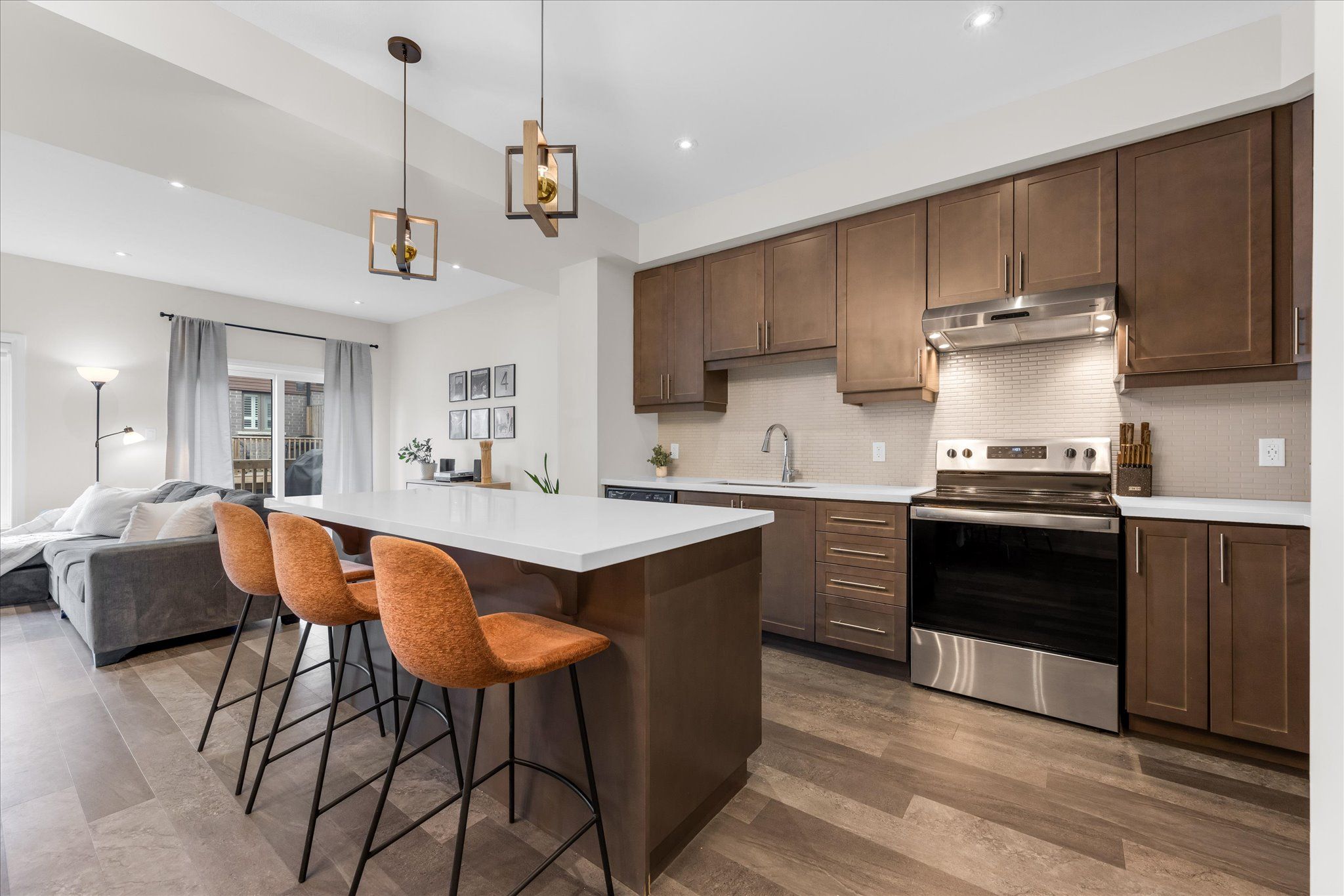 90 soho street - a beautifully maintained freehold townhome (no condo/road fees) in the highly desirable central park community of stoney creek. Access to the red hill valley parkway and the linc, commuting is a breeze. Master builder, losani homes shows craftsmanship throughout. Welcoming foyer leads to a bright open concept layout main floor, with powder room, and direct garage access and generous kitchen with stainless steel appliances and quartz counters. Upstairs, the spacious primary with walk-in closet, and a 5-piece ensuite. Two additional bedrooms along with a full 4-piece bathroom, ideal for the entire family. The unfinished basement has a walk-out allowing you extended functionality in addition to the living space - you can choose to create a family room, in-law suite, or home office. This is an opportunity you don't want to miss; fast or flex closing. The area central to everything including grocery, retailers, schools, highway and more. Incentives offered to buyers- ask listing agent.