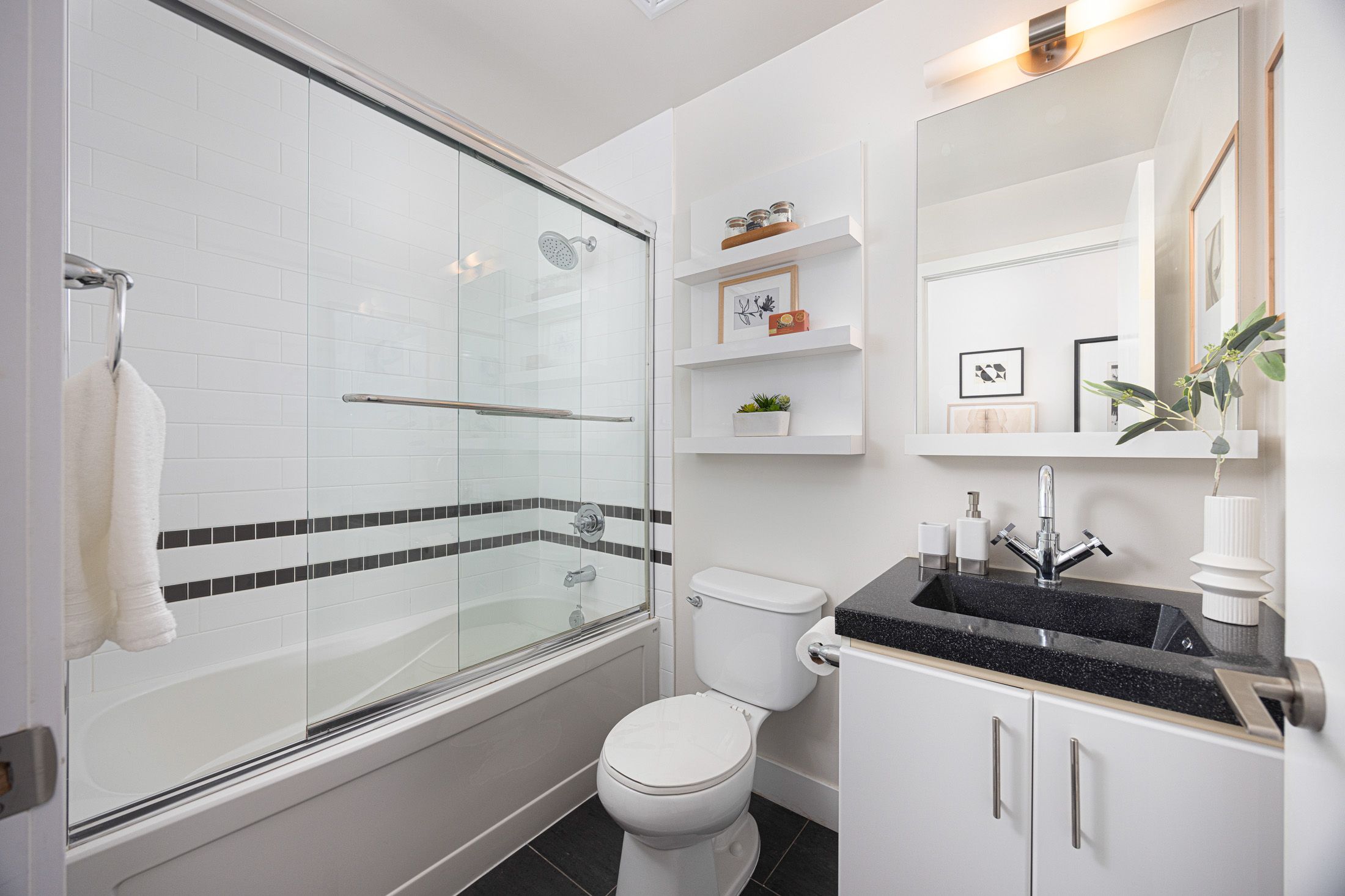 • Large balcony offers personal outdoor space, a rarity for 1-bedrooms.