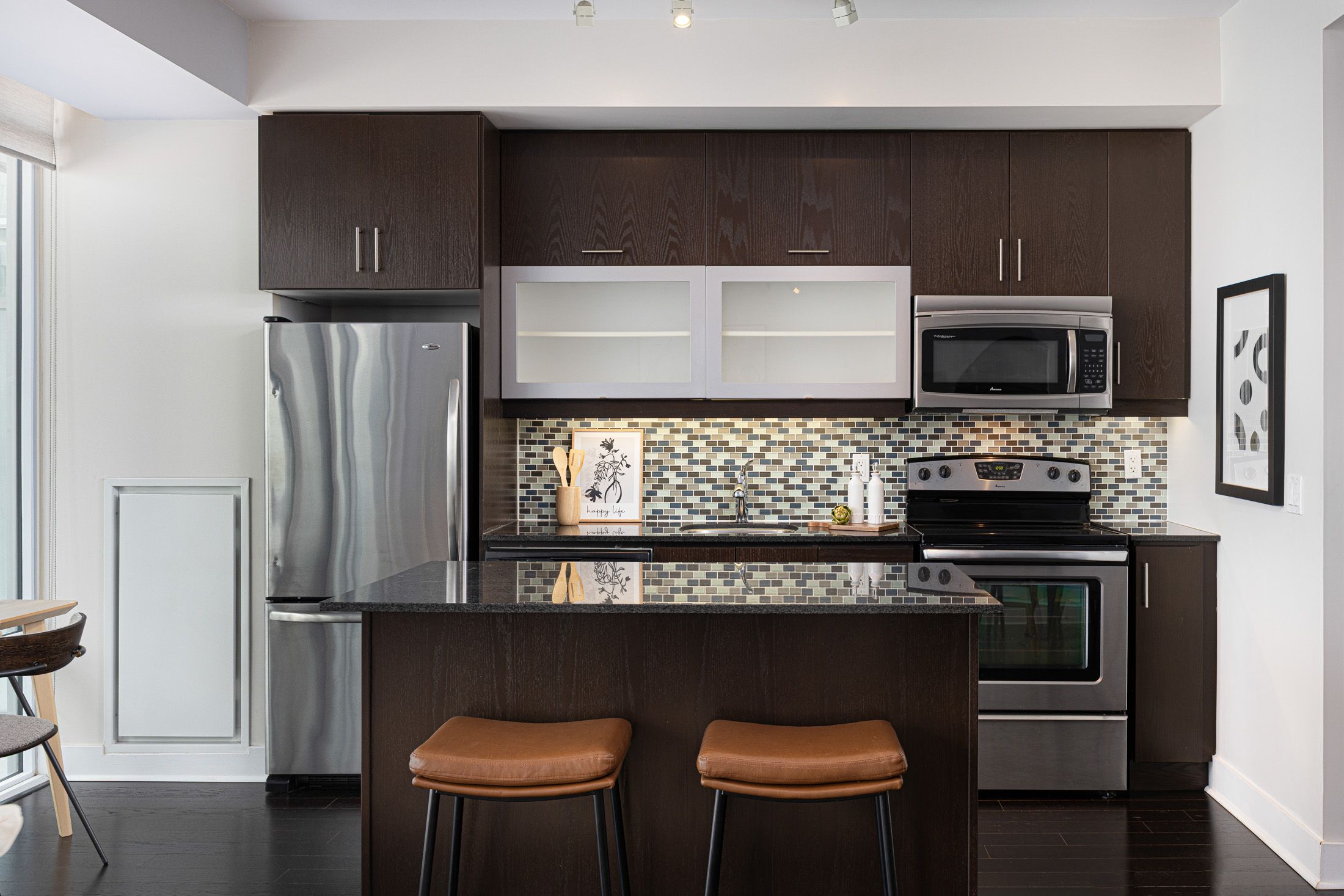 Summer is the best when you live at quay west!! Welcome to 90 stadium rd. Suite 330, where all your summer dreams come true. If you like to run, cycle, walk, own a dog, or even just like being outside... This is the unit for you! Located right on the martin goodman trail and the gorgeous toronto waterfront, there's no excuse to not get your steps in. You can even walk to your flight at billy bishop airport in just a few minutes. After a sunny afternoon being on your feet or bike, head back home through the inviting lobby with 24 hours concierge, up the elevator or stairs (home is on the 3rd floor, remember?), and step into the proper foyer. You'll notice right away a front-hall closet and a spacious bathroom. Down the short hall, the unit opens up into a desirable square layout with space for your kitchen, living room, and dining room vignettes - no narrow bowling alley layouts here. The kitchen features stainless steel appliances and an upgraded centre island, sure to be the focal point of your next gathering with family or friends. The bedroom features an oversized closet with convenient custom built-ins so you'll never run out of storage space. The large 102sqft balcony means you even have your own little slice of outside. Rare for a 1-bedroom unit these days, owned parking with bike storage and locker are the cherries on top. Outside your unit, quay west has incredible amenities including guest suites, a fully-stacked gym and yoga studio, hot tub, sauna, 24-hour concierge, and more. When it's time to leave, the new loblaws on lake shore is only a block away, and so are the 509 and 511 ttc streetcar stops. Heading out of the city? You'll be on lake shore blvd. W. In seconds as it's mere metres away, but with a building in between so you won't hear it at all. Summer is coming, and this could be your best summer yet!