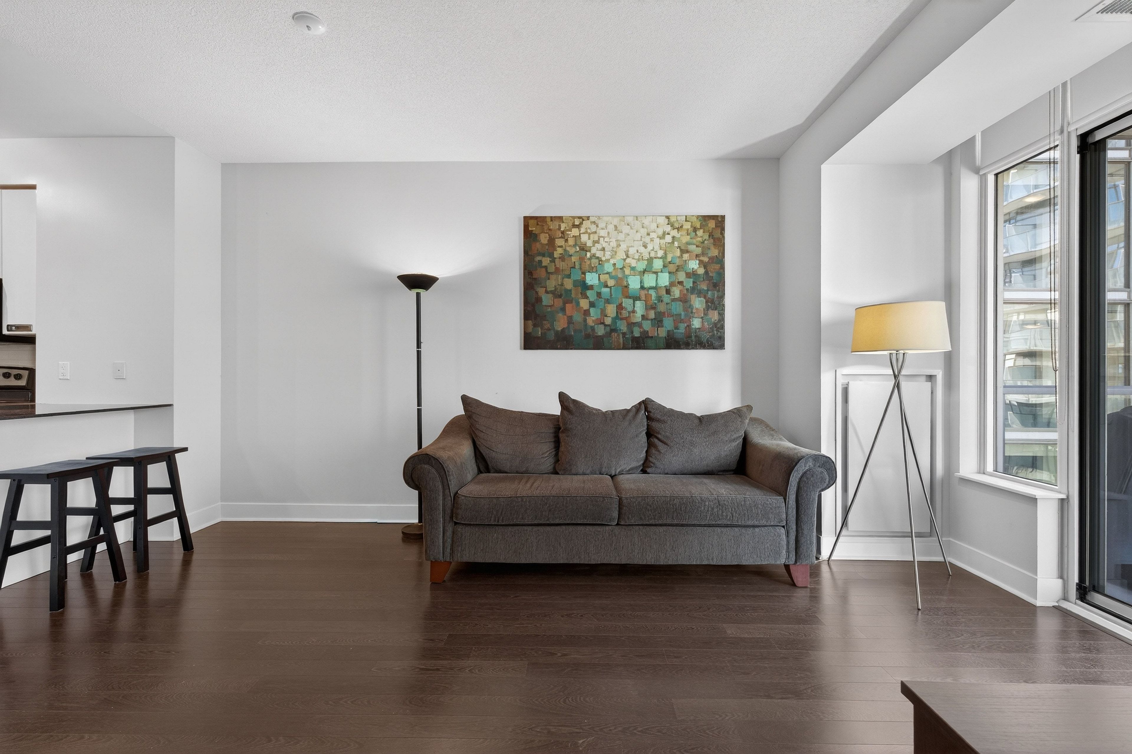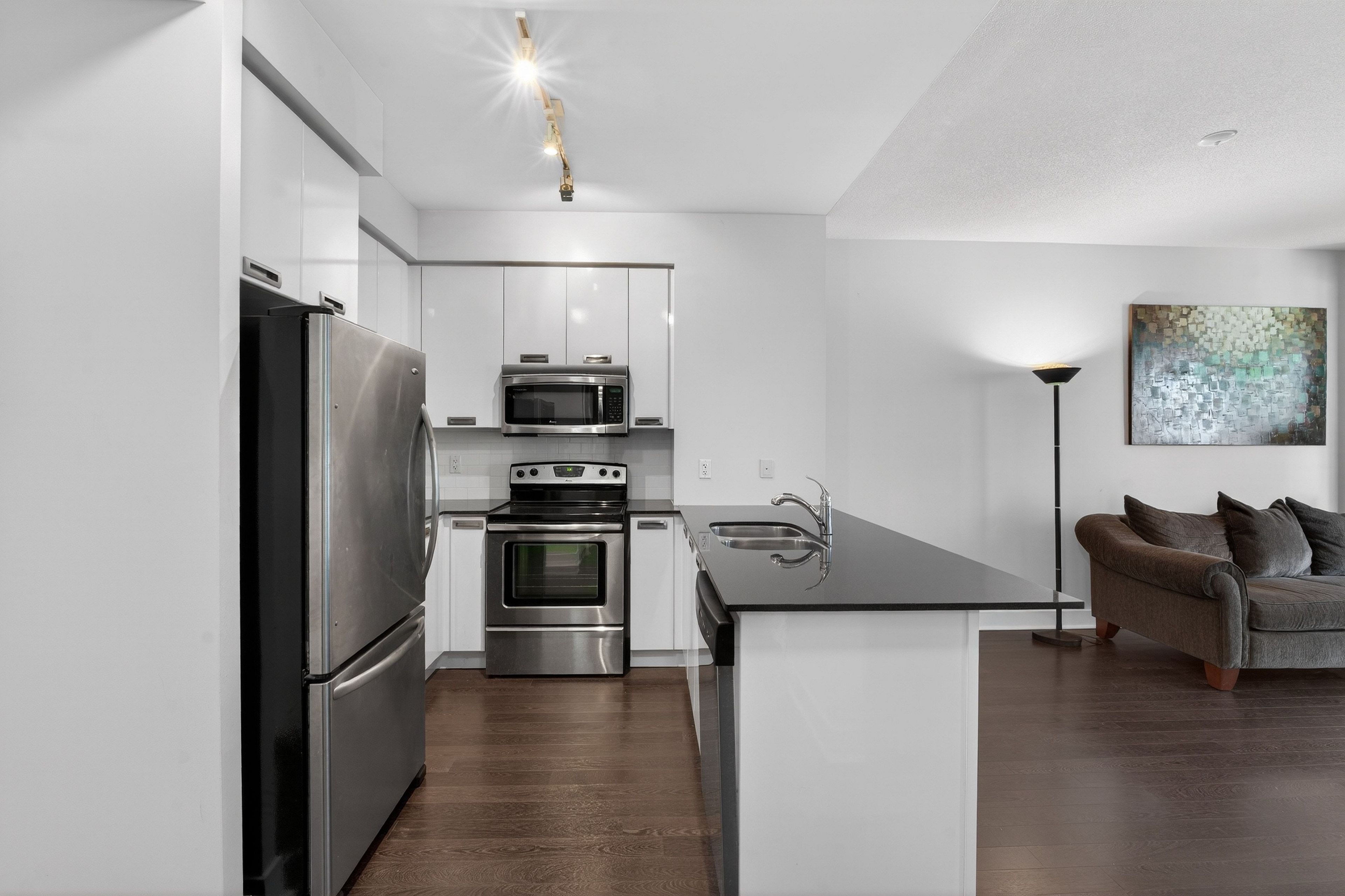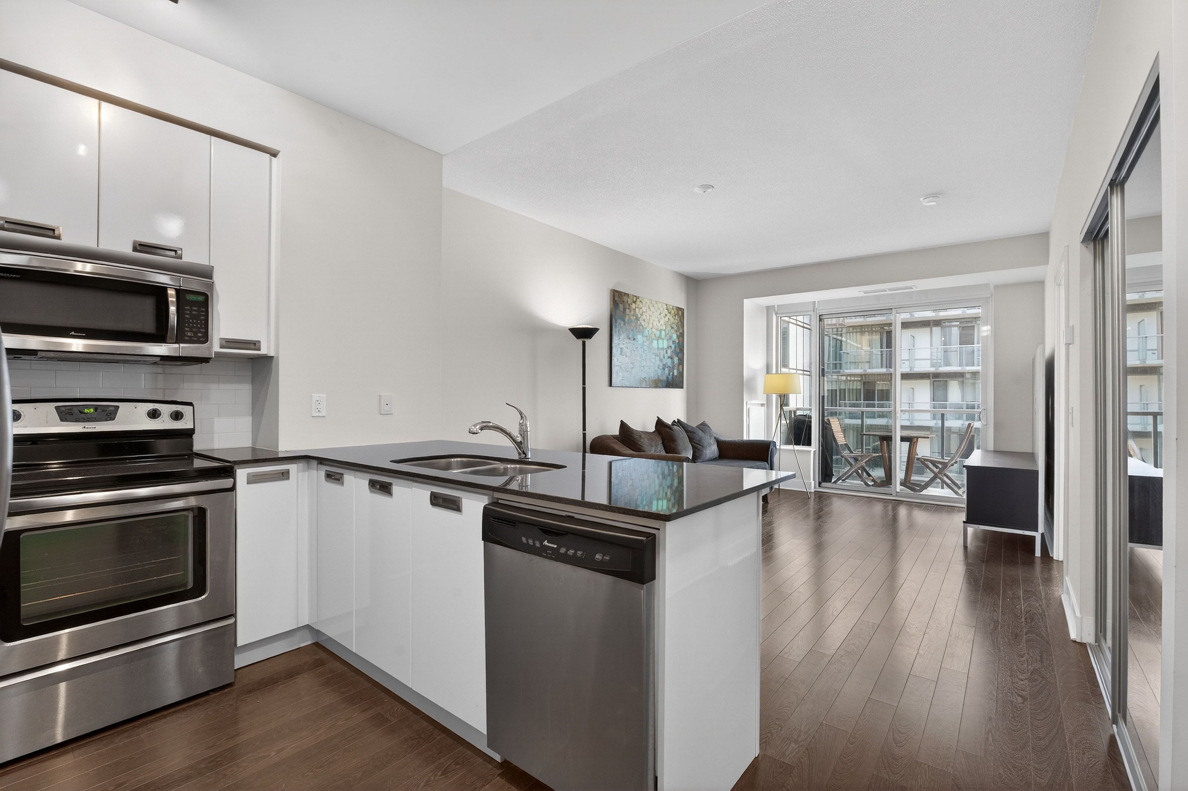 Live where toronto wakes up right at quay west condos, a boutique mid-rise perfectly positioned along the waterfront in marina quay west. This rarely available 1+den features a highly functional layout with a separate den ideal for a dedicated work-from-home setup, complemented by an open-concept living space and a full kitchen with ample counter space for everyday use and entertaining. Step outside to direct access to the lakefront trail and coronation park, offering an unmatched lifestyle of morning runs, waterfront walks, and everyday escape from the city noise. Enjoy the added convenience of generous closet storage throughout, a rare find in condo living. Experience a quieter, boutique environment without the congestion of high-rise buildings, while still having access to premium amenities including a fully equipped gym, spa, sauna, whirlpool, co-working lounge, theatre room, party room, and guest suites. Opportunities to lease in this waterfront building are limited, making this an ideal option for stable tenants seeking a refined waterfront lifestyle with space, function, and convenience. Landlord is open to a 2-year lease for strong tenants. The couch, lamps, bar stools, shelving, and tv stand can also be included partially furnished for your convenience.
