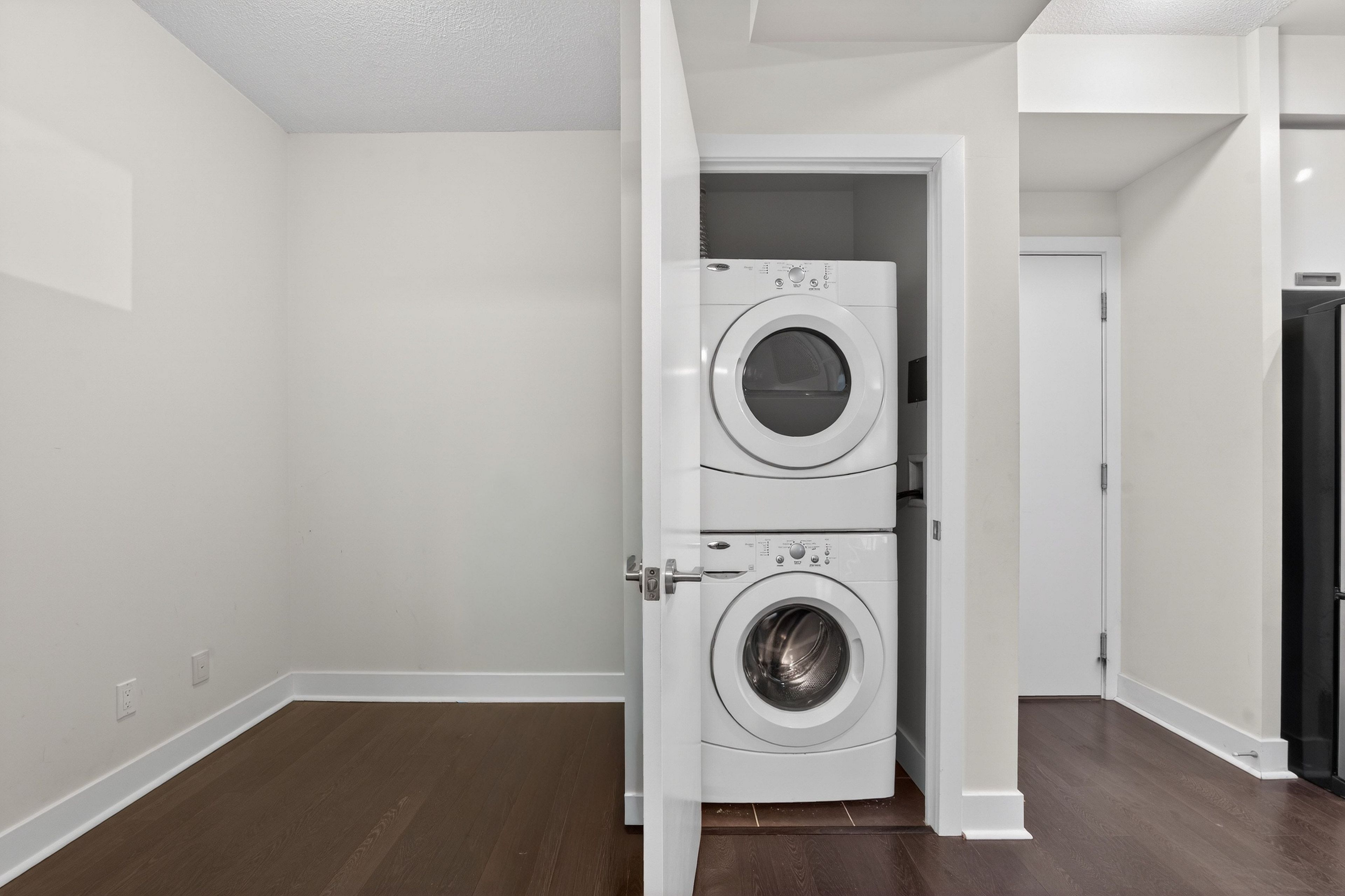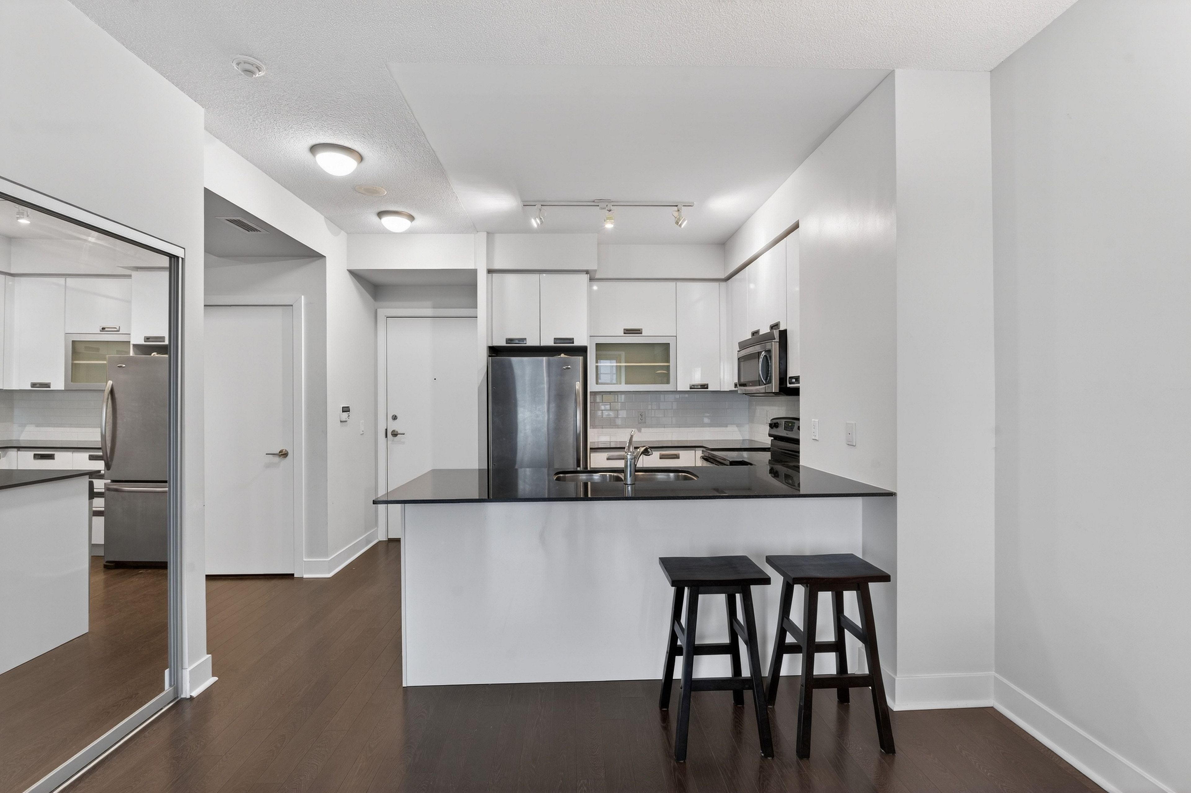 • Convenient storage options throughout, rare in condo living.