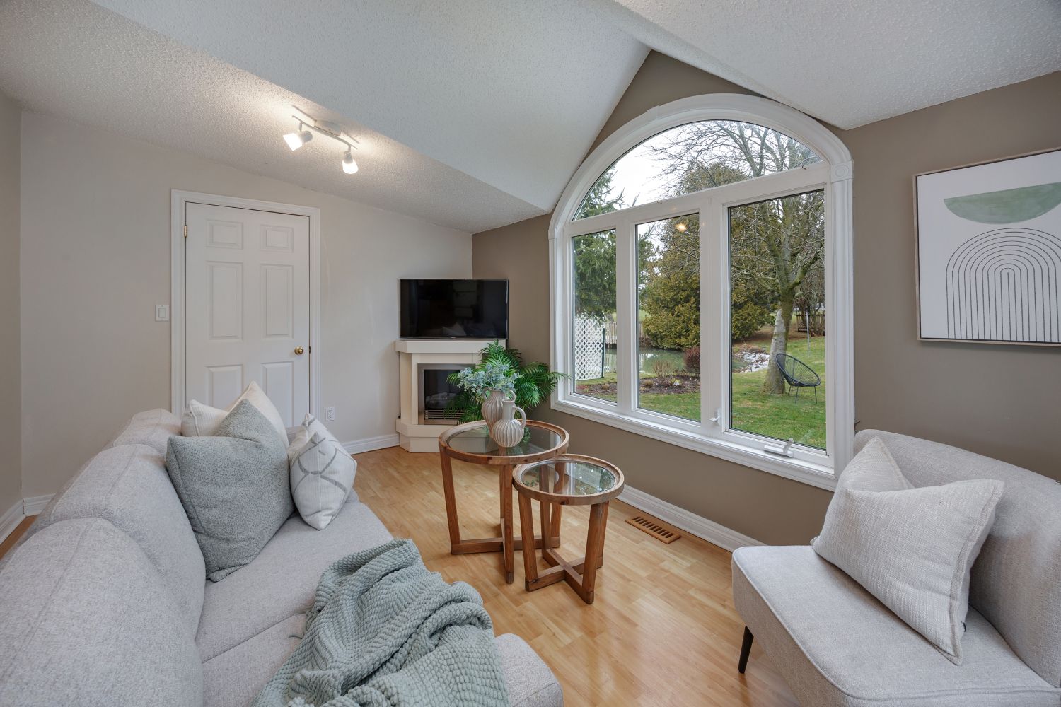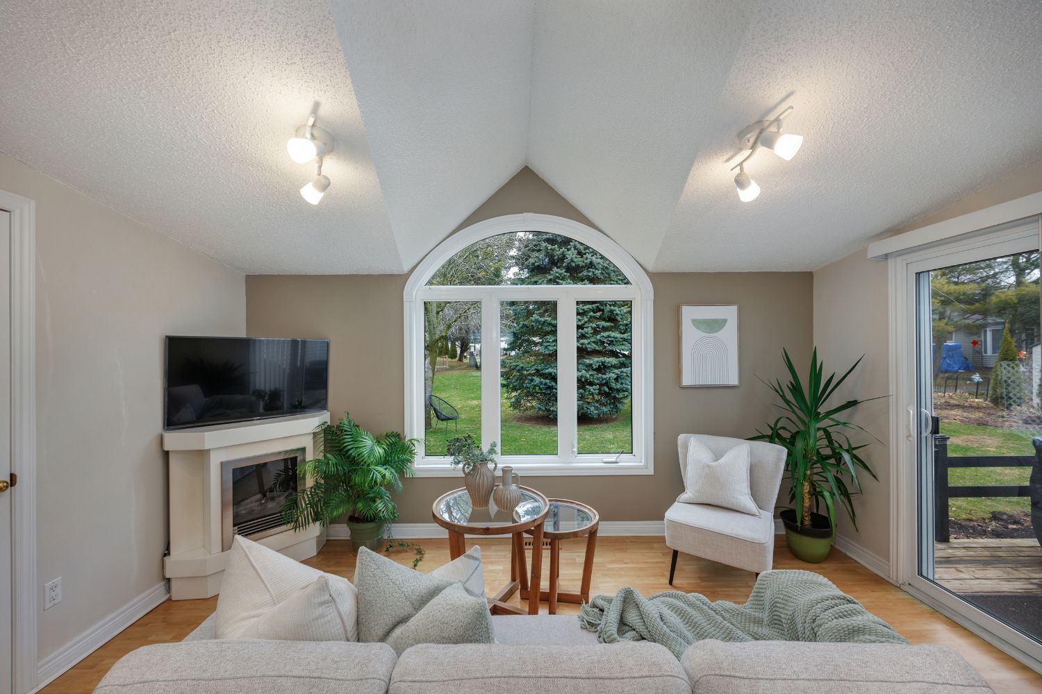 • Spacious interior with cozy gas fireplace and abundant natural light.