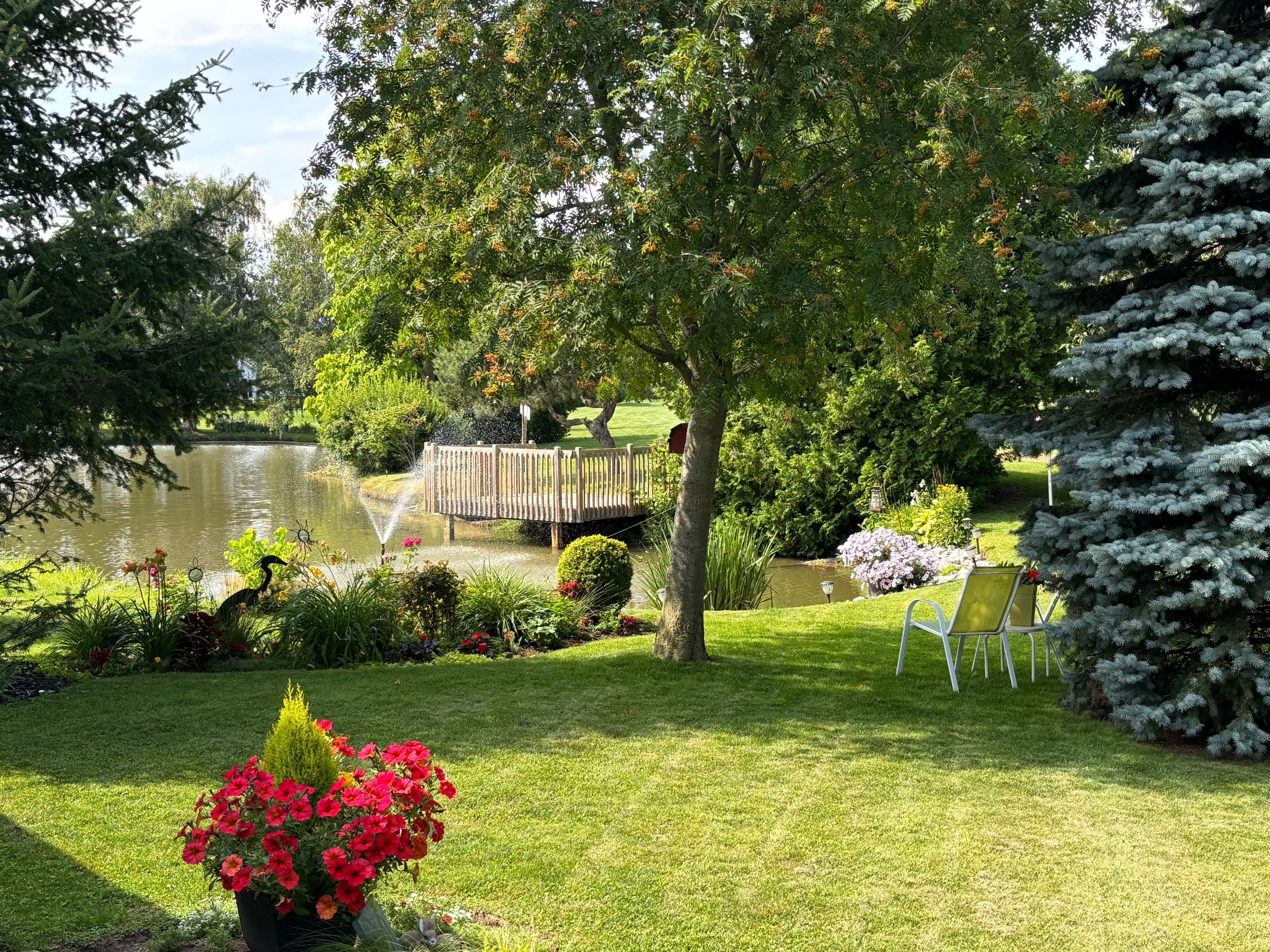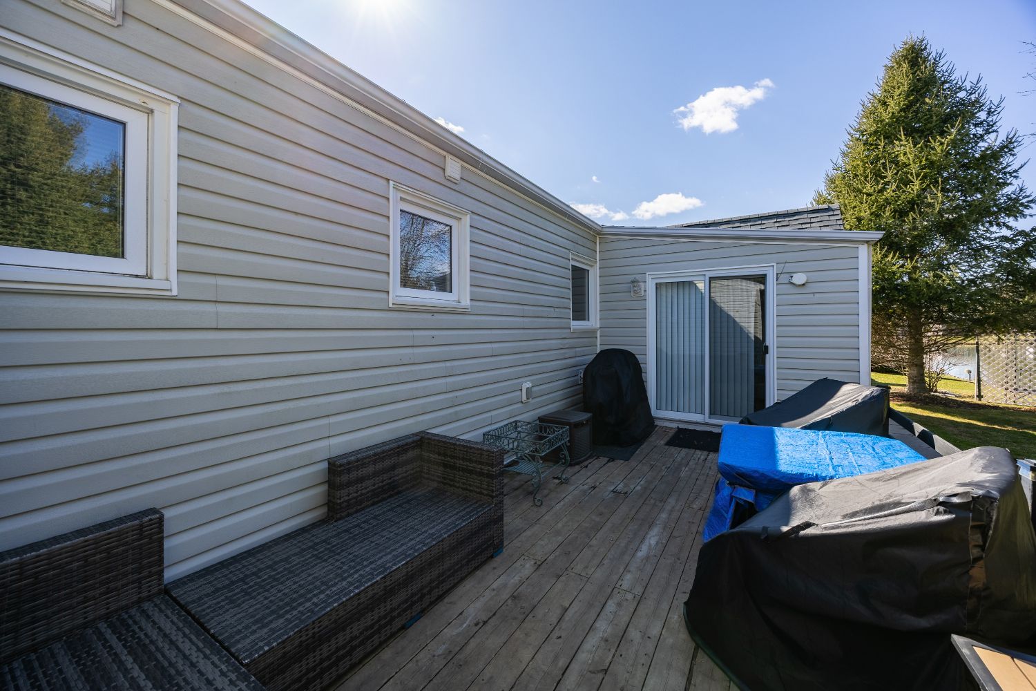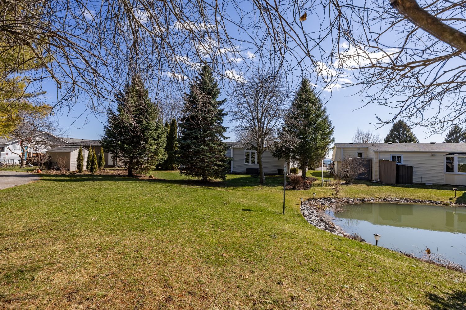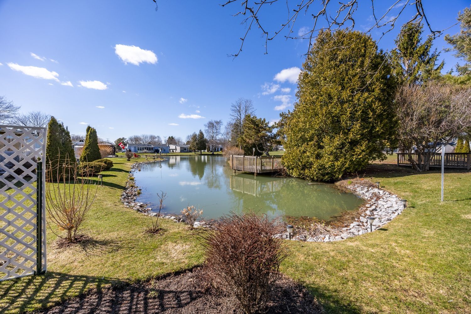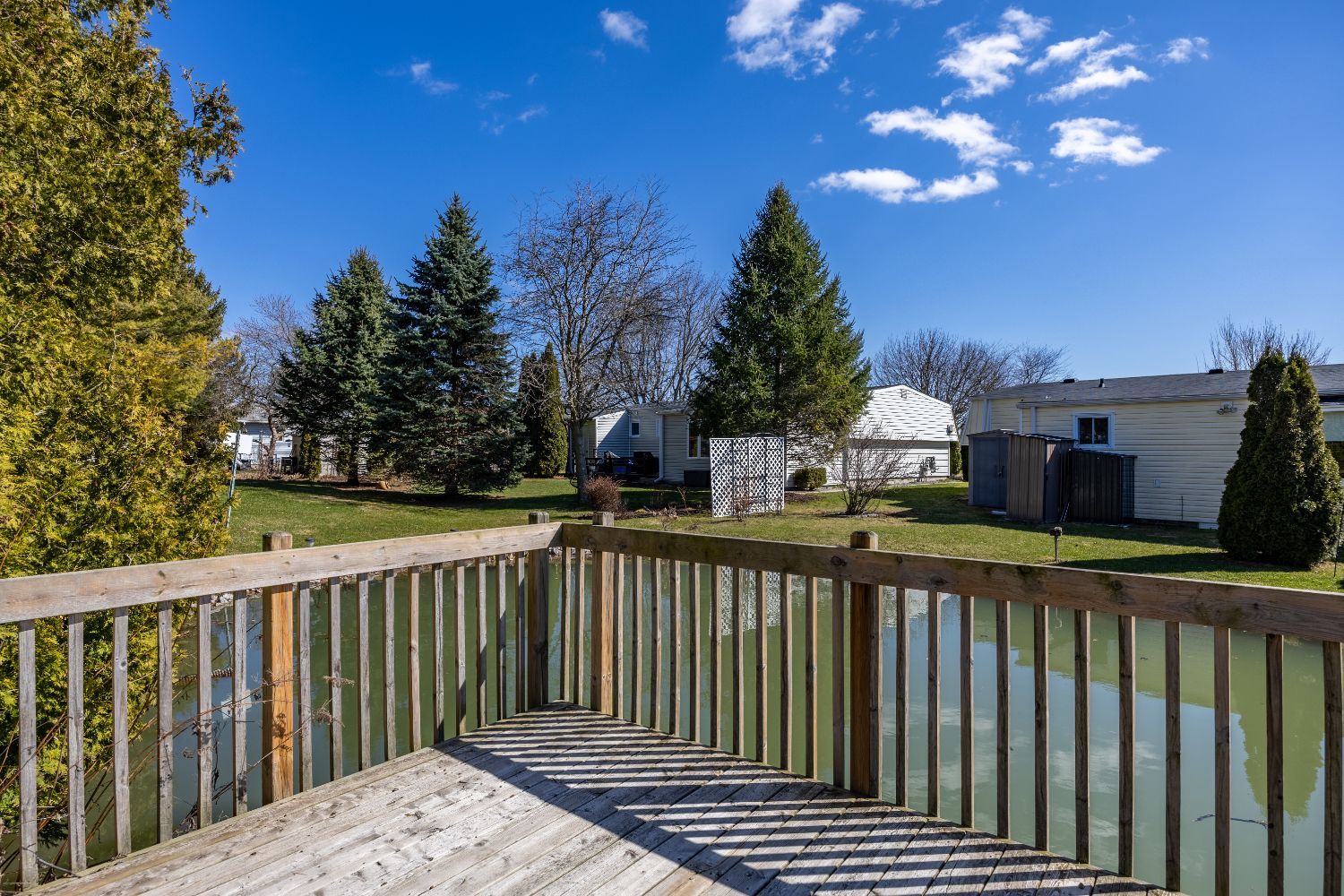 Wake up to peaceful pond views and the manicured 5th hole of the golf course in this charming, two-bedroom bungalow, perfectly positioned near the shores of lake ontario in the highly desirable adult lifestyle community of wilmot creek. Offering effortless main floor living and a vibrant resort style atmosphere, this is the lifestyle you've been waiting for. Step inside to a warm and inviting interior where the spacious living room features laminate flooring, a large picture window, and a cozy gas fireplace, perfect for relaxing evenings at home. A separate family room provides even more living space, filled with natural light from the large window and offering a walk-out to the deck for seamless indoor-outdoor enjoyment. The open concept kitchen is both stylish and functional, complete with a tile backsplash, breakfast bar, generous cabinetry, and a window above the sink overlooking the outdoors. The adjoining dining area is ideal for entertaining family and friends. Two comfortable bedrooms provide the perfect retreat, including a spacious primary suite with a walk-in closet, electric fireplace, and private 3-piece ensuite. Outside, enjoy your morning coffee on the deck while taking in the tranquil pond and golf course views, a peaceful setting you'll never tire of. Wilmot creek offers an exceptional lifestyle with amenities including golf, pool, pickleball, tennis courts, recreation center, walking trails, garden club, lawn bowling, dog run, and so much more. Monthly fees of $1,427. 81 ($1,300. 00 site fee + approx. $127. 81 taxes as per compass communities) include snow removal, and full access to community amenities. Move in, relax, and start enjoying the best of wilmot creek adult living.