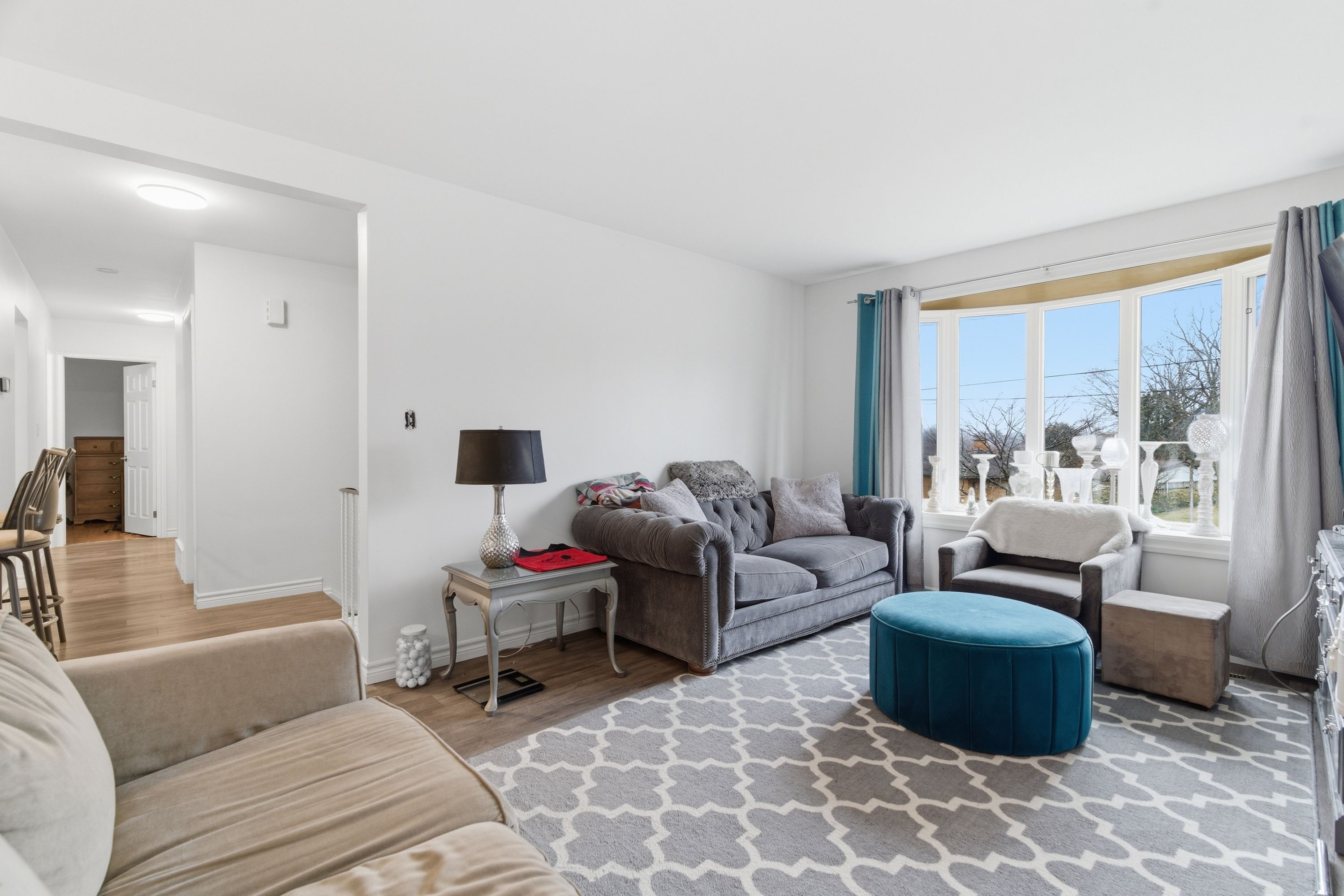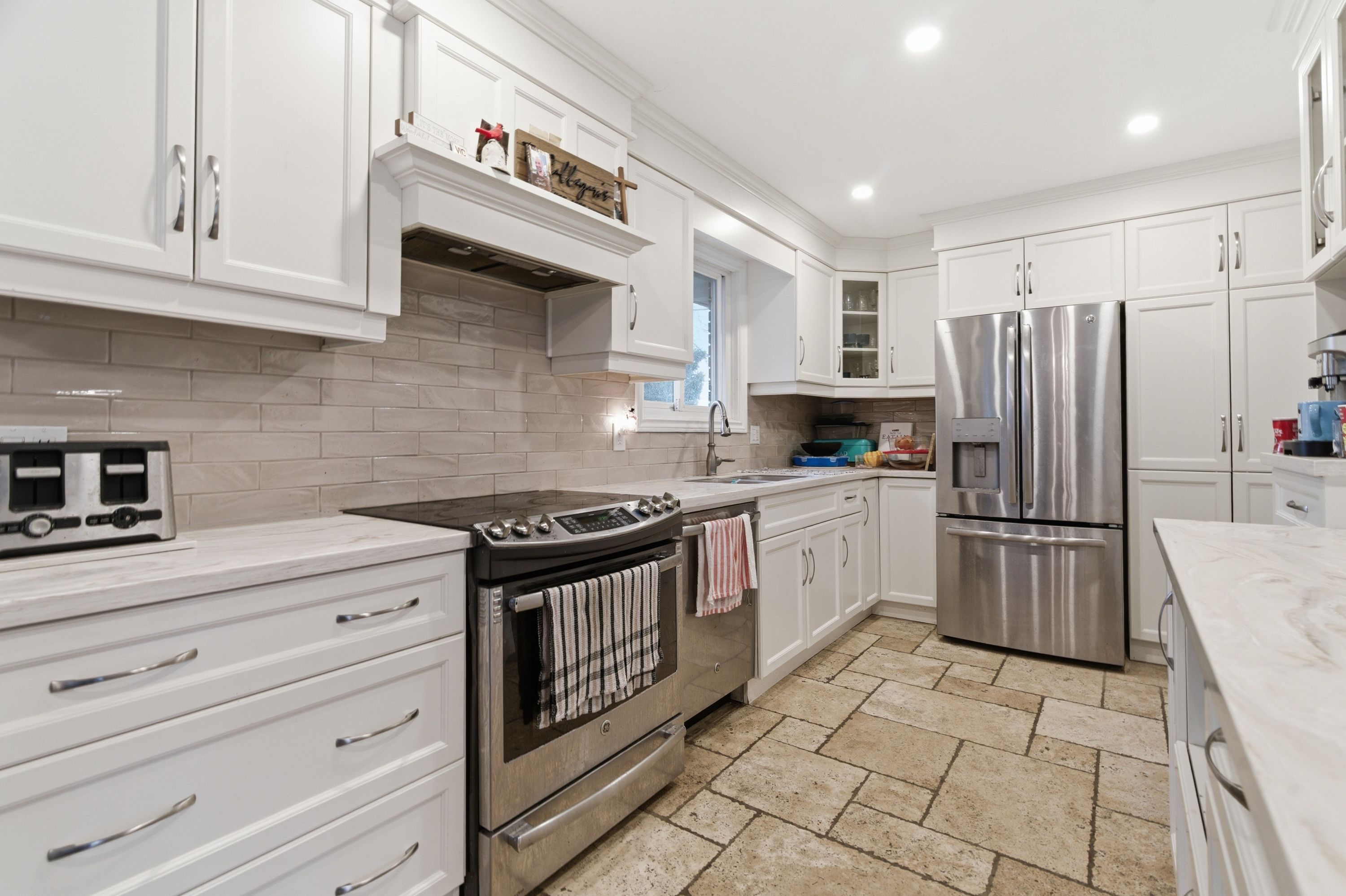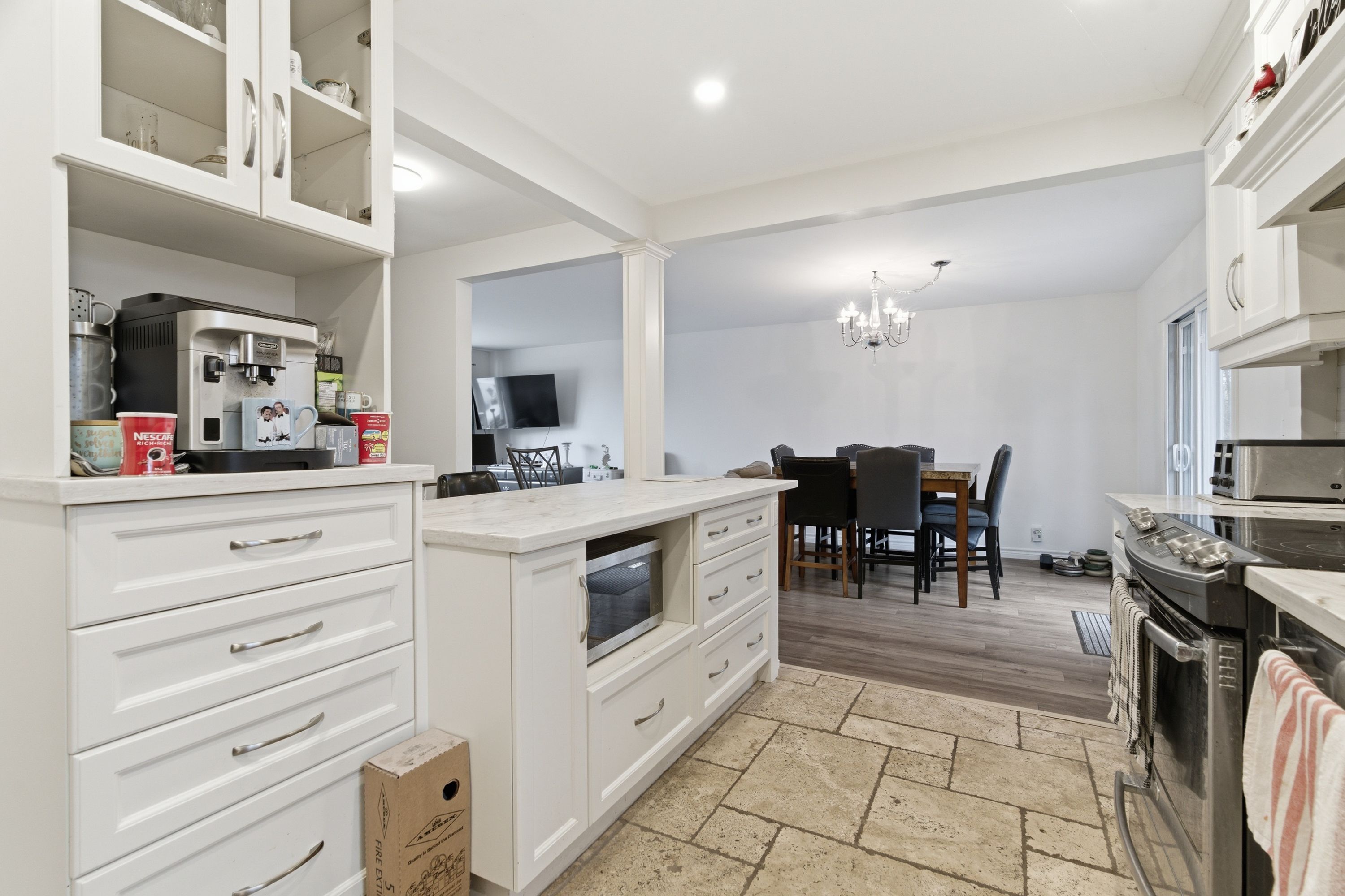 • Updated modern kitchen with an open concept living area.