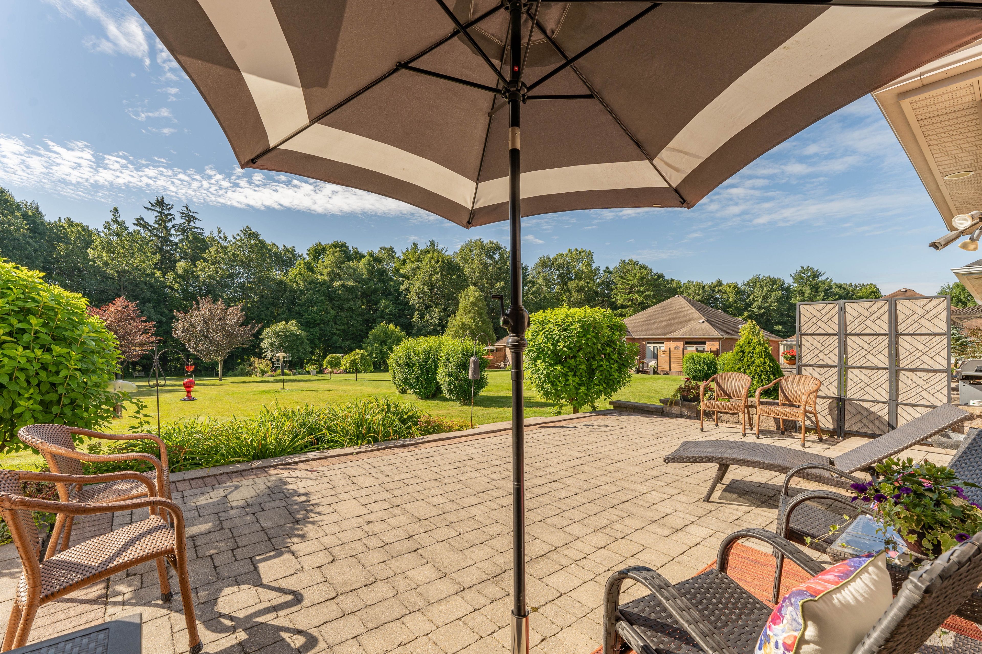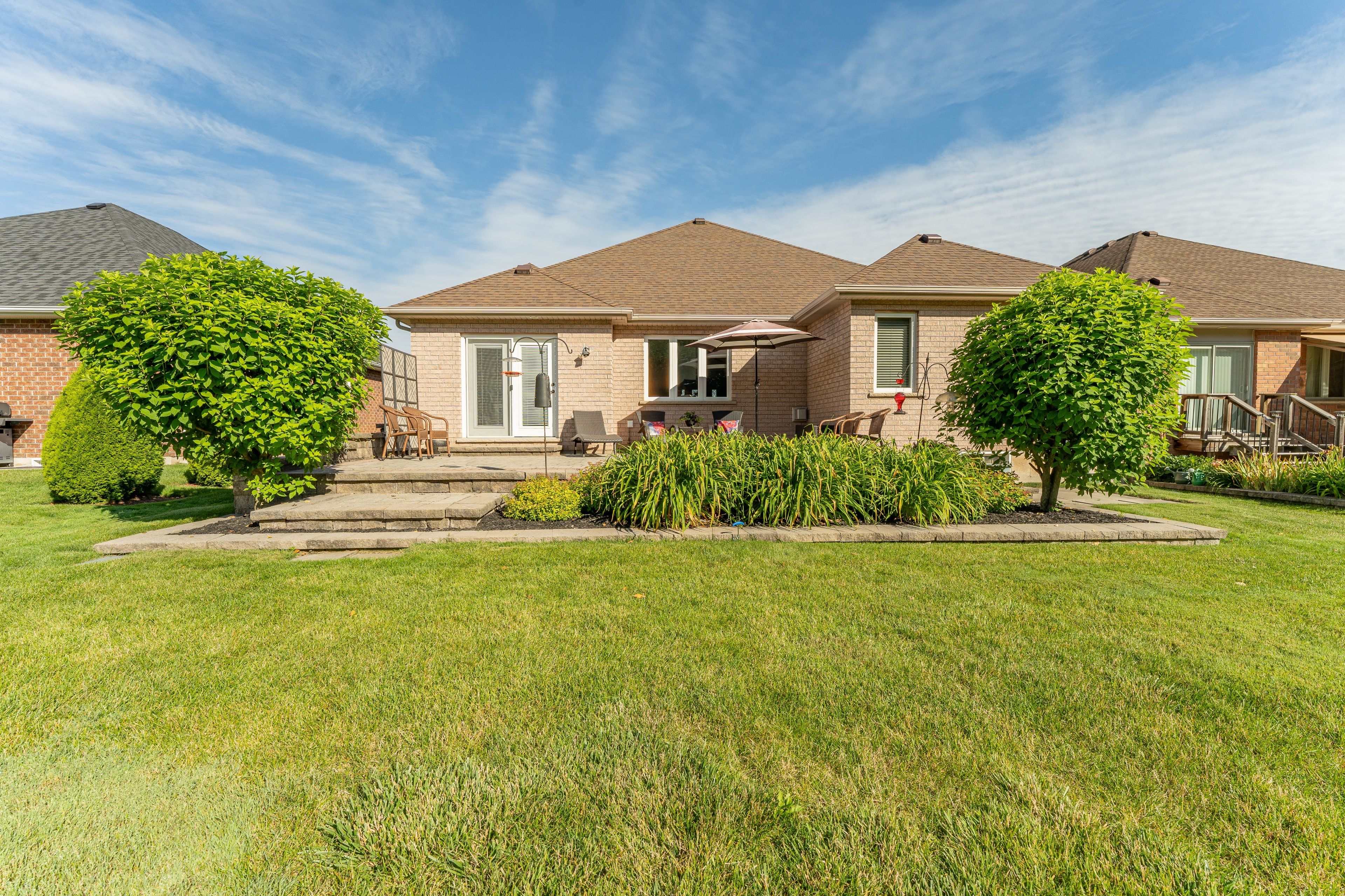 A rare opportunity awaits! Welcome to 90 weston drive in tillsonburg - an exceptional 1,707 sq. Ft. Brick bungalow set on a picturesque ravine lot. Known as the gainsborough, this highly sought-after model offers an elegant yet functional layout, featuring 2 spacious bedrooms and a versatile den on the main level. Step inside and feel instantly at home in a space that feels straight out of a magazine. Gleaming hardwood floors, fresh designer paint tones, and a charming gas fireplace create a warm and sophisticated atmosphere. The bright front den offers wonderful flexibility - ideal as a tv room, home office, or cozy reading nook. The beautifully updated kitchen showcases sleek new countertops, a stylish backsplash, and an inviting eating area that flows seamlessly to the stunning backyard. Step outside to the expansive interlocking patio - perfect for entertaining - complete with optional privacy screens for your own peaceful retreat. The primary bedroom offers comfort and convenience with a 3-piece ensuite and generous walk-in closet. A second bedroom, additional 3-piece bathroom, and main-floor laundry complete this thoughtfully designed level. (new roof in 2023!) the finished lower level expands your living space with a large recreation room, cozy family room, extra bedroom, and convenient 2-piece bath - perfect for guests or flexible living arrangements. Outside, your private ravine setting creates a true backyard oasis. Enjoy serene morning coffees surrounded by nature, with frequent visits from local birds and deer - a tranquil escape right at home.