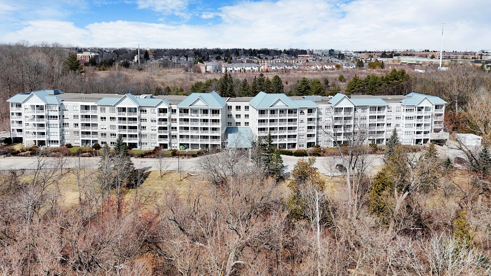 Downsizers alert! Check out this beauty in the sought after adult - oriented condominium development known as "reflections on bogart pond" tucked away on an amazingly peaceful and serene woodlands property bordering the eastern entry into newmarket. A setting such as this which is showcased by bogart pond, groomed trails and mature woodlands is usually found in the haliburton highlands, not in an urban setting. It's truly special! Residents enjoy quick access to the 404, shopping, restaurants and all of newmarket's excellent amenities. Newcomers can easily connect to fellow residents in this socially active building and home to many outstanding amenities including large outdoor patio with new communal barbeques, exercise room, party / meeting room with fireplace and new kitchen plus billiard room. A lovely suite for your overnight guests is also available to rent. The property management company has a rep onsite and available to residents on tuesday and thursdays. Suite 327 is 890 sq ft as per mpac, and is open, bright and fresh with crisp neutral decor. A contemporary wide plank laminate over cork floor flows throughout the unit except tiled areas. The main living area combing kitchen, dining and living rooms areas is fully open and features a large window overlooking the woodlands backdrop and allows bountiful light. The spacious primary bedroom is serviced by a 5-pc ensuite and walk-in closet. The second bedroom / den provides access to the generous size balcony offering a spectacular view over the property. The utility room / 2 pc bath hosts the stacked washer & dryer, laundry sink and storage shelving. Recent upgrades to the unit include all ceiling light replacement, ensuite toilet, kitchen sink tap, laundry sink and new baxi gas boiler furnace / water heater (2022). The well-maintained underground parking garage is clean and well lit. Parking spot #47 and locker #243 is owned by the unit. Downsizing / retirement living at its finest!