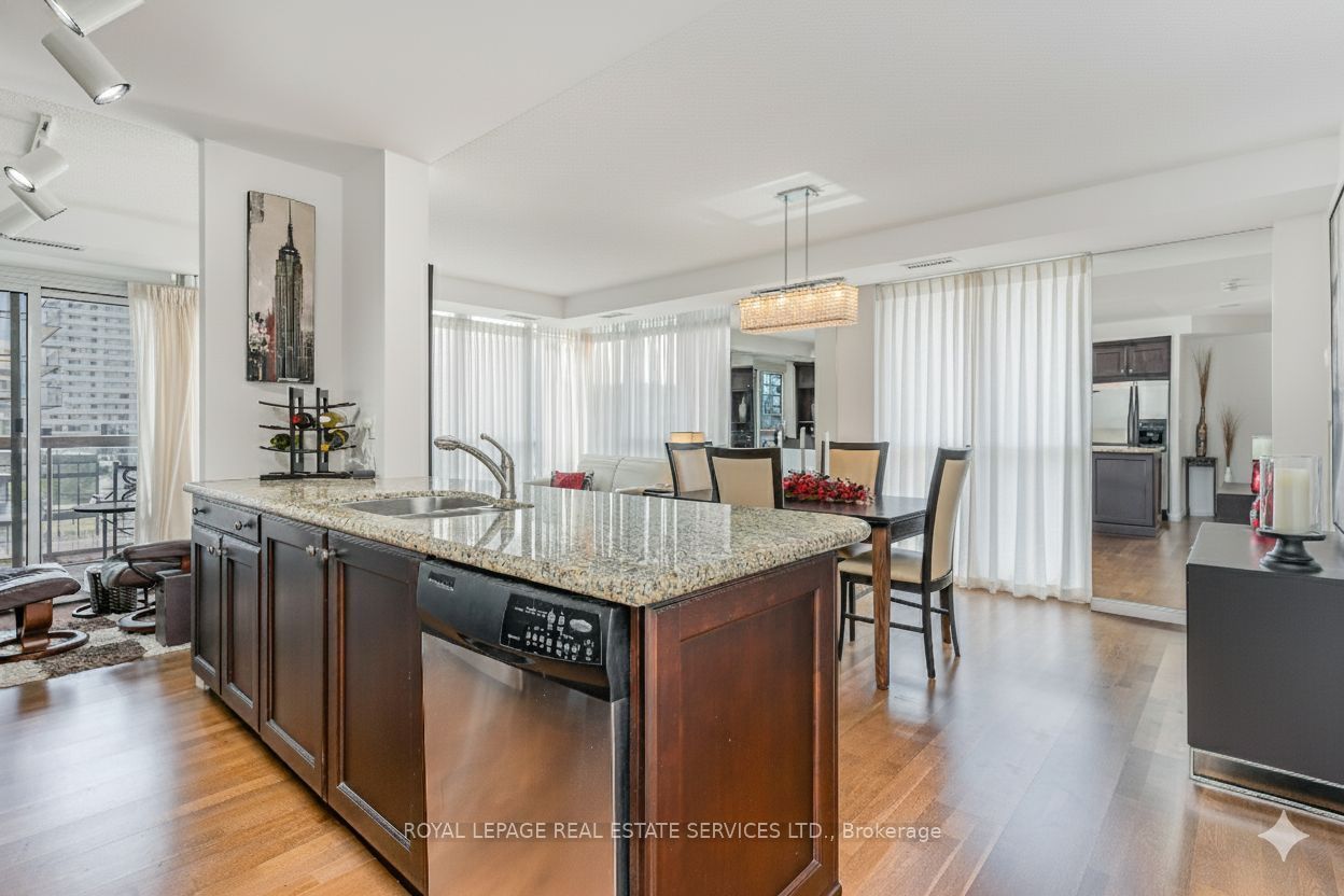 A truly rare & exceptional opportunity to own one of the most desirable, corner suite layouts in this coveted mid-rise boutique residence in the heart of midtown. This thoughtfully designed split 2 bedroom plus den, two-bathroom floor plan delivers the perfect balance of functionality and refined comfort. This builder-upgraded, redesigned layout enhances spatial flow by extending cabinetry into the den creating seamless, open space - evident from the moment you enter. A well-proportioned kitchen enhanced with granite counter-tops, stainless steel appliances & large island counter with breakfast bar are ideal for daily living & entertaining. Floor-to-ceiling windows fill the home with natural light and showcase panoramic north views. Enjoy seamless indoor-outdoor living with two walk-outs to a spacious balcony, complete with patio furniture (included) & a rare gas bbq hookup (weber bbq included). The primary suite offers a walk-in closet, private ensuite, and direct balcony access. A rare feature: 3 parking spaces, including a tandem spot for two vehicles plus an additional separately owned space. Buyer bonus: seller will pay the remaining 2026 property taxes. Premium inclusions: murphy bed (2nd bedroom), automatic blinds (west windows), drapery, dining chandelier, new track lighting (kitchen & den), living room rug, dining table + four chairs, tv in den, mounted tvs in both bedrooms, weber gas bbq & patio furniture. Maintenance fee includes; bell fibe cable tv & internet (valued at $278. 40/month), water & gas. Minutes to ttc, eglinton lrt, sherwood park, sunnybrook hospital and the shops & restaurants of yonge street. An outstanding opportunity for buyers seeking refined space, value, and turnkey convenience in one of midtown toronto's most desirable addresses. This suite truly checks every box.