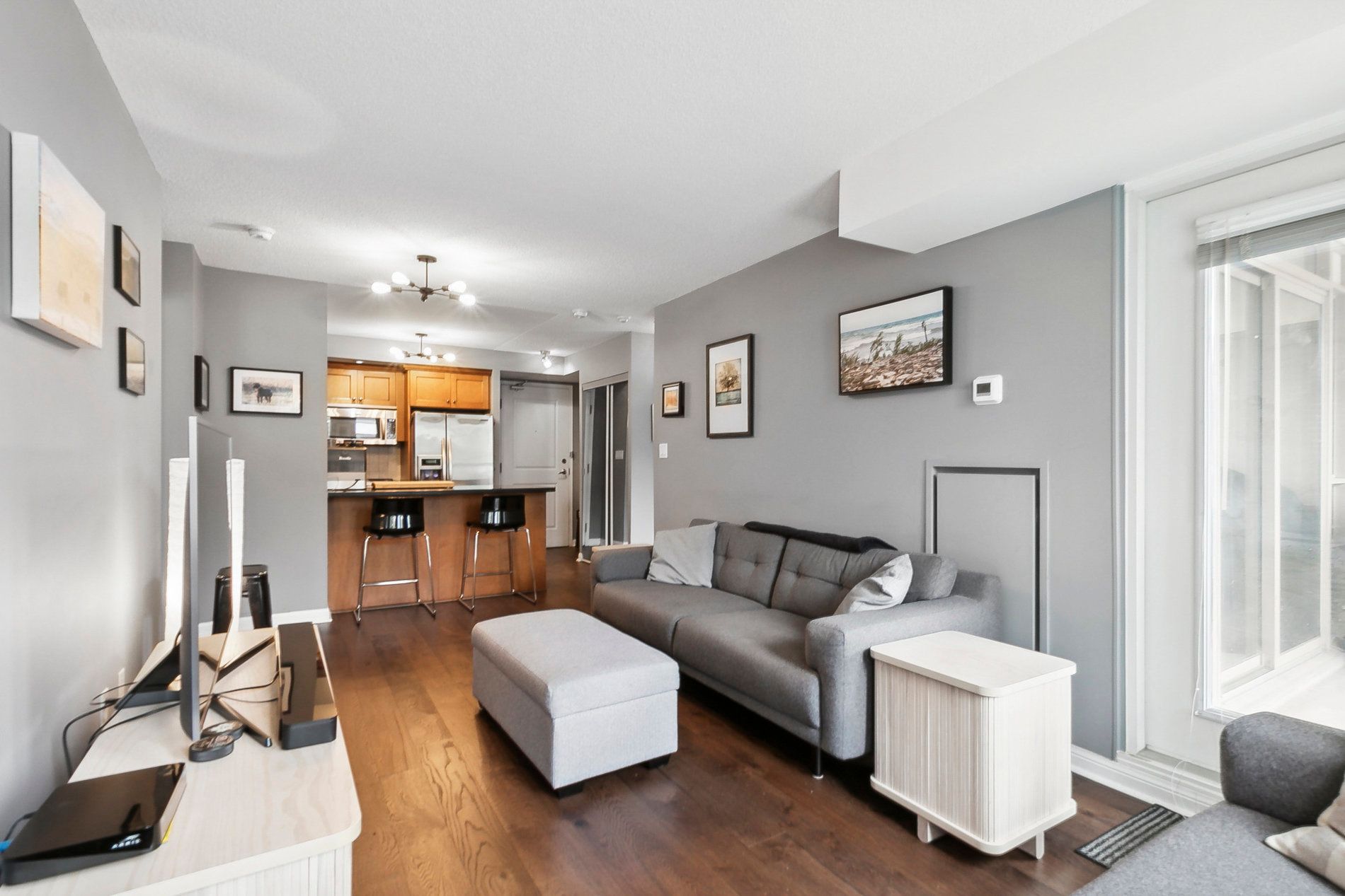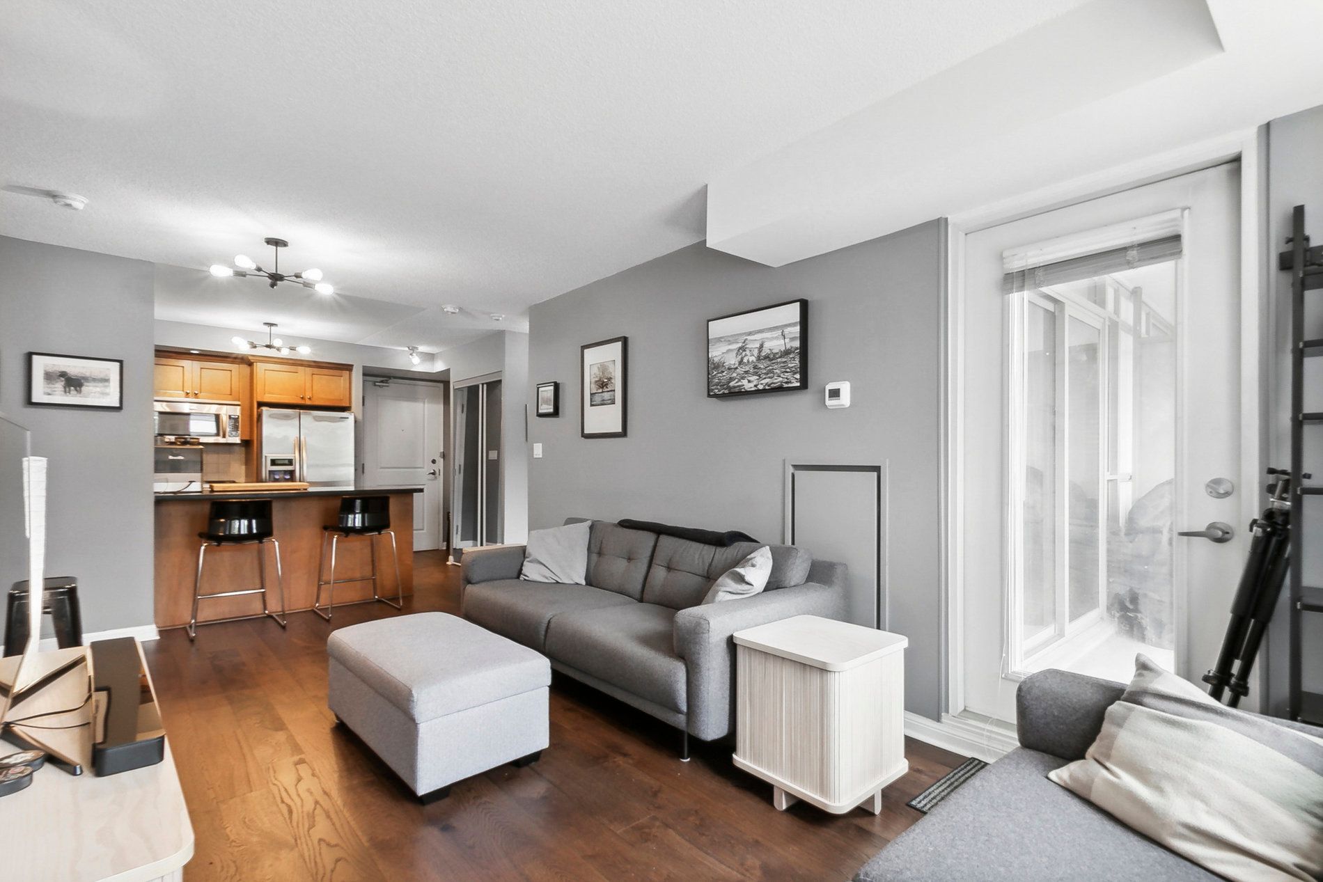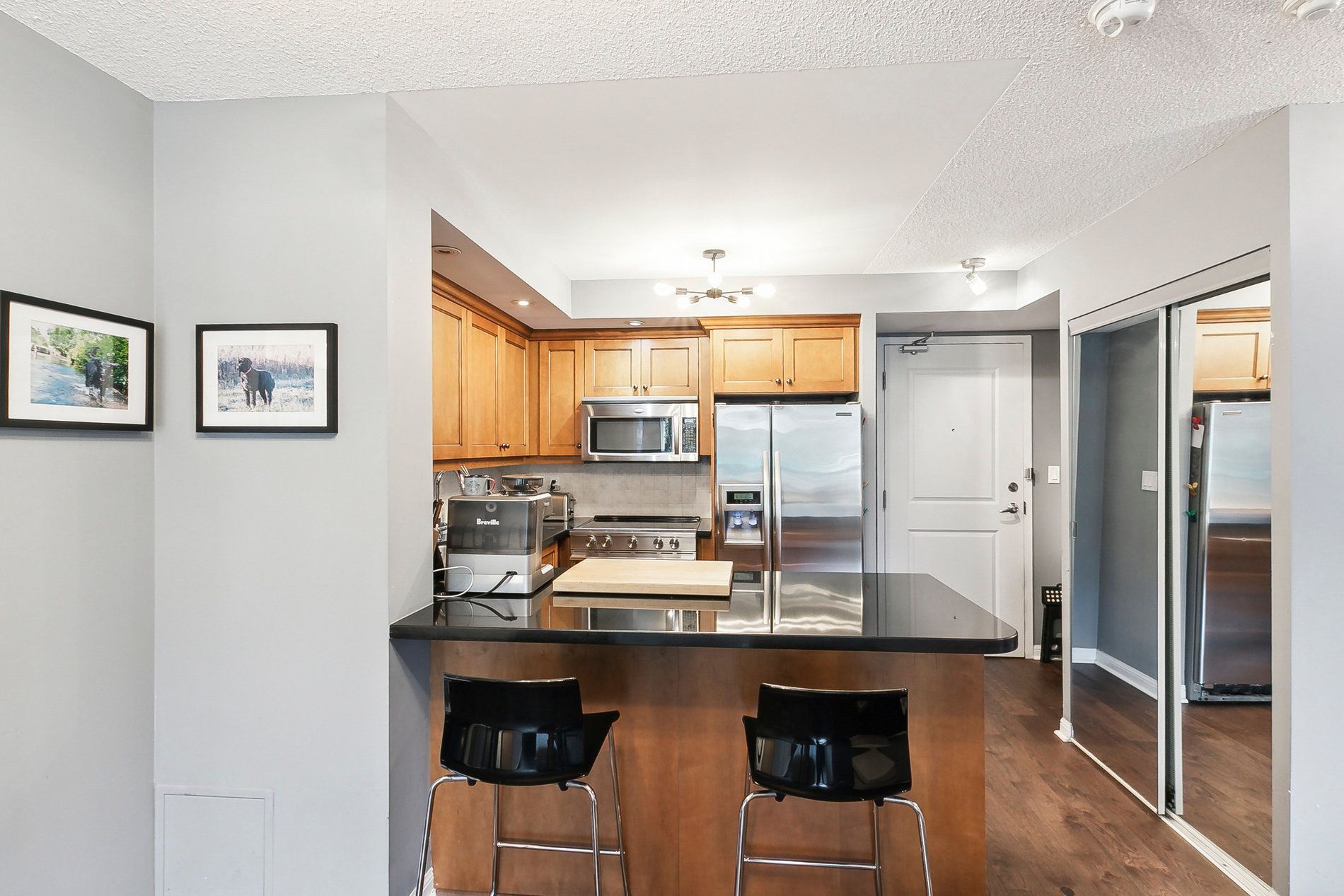 Rarely available and impeccably curated, this 834 square foot residence offers a unique "private townhome" feel in the heart of prestigious mount pleasant village. Perfectly suited for young professionals, downsizers, or those seeking an elite midtown pied-à-terre, this home distinguishes itself with a sense of privacy and intimacy rarely found in high-rise living. The thoughtful split-bedroom layout is anchored by refined interior finishes, including stone countertops, custom paris kitchen cabinetry, and gleaming engineered hardwood floors installed in 2020. The open-concept living and dining area seamlessly extends to a private east-facing balcony equipped with a rare bbq gas hookup (bbq included). The primary bedroom serves as a sanctuary with a spacious walk-in closet and an inviting ensuite bath, while the versatile second bedroom is ideal for a guest suite or a quiet executive home office. Residents benefit from an upscale boutique living experience featuring a 24/7 concierge, a fully equipped gym, guest suites, and visitor parking, while the suite itself is completed by stainless steel appliances, a convenient breakfast bar, and ensuite laundry. Experience the pinnacle of midtown living with the vibrant yonge and eglinton corridor just moments away. This prime location offers world-class dining, bustling cafes, and luxury retail destinations like stock t. C and the eglinton centre. Commuting is effortless with the yonge-university subway line providing seamless access to the entire city, complemented by the upcoming eglinton crosstown lrt and proximity to the scenic trails of sherwood park. This is a turnkey opportunity to own a sophisticated residence that balances the quiet comfort of a condo with the luxury and unbeatable connectivity of a well-regarded full-service building.