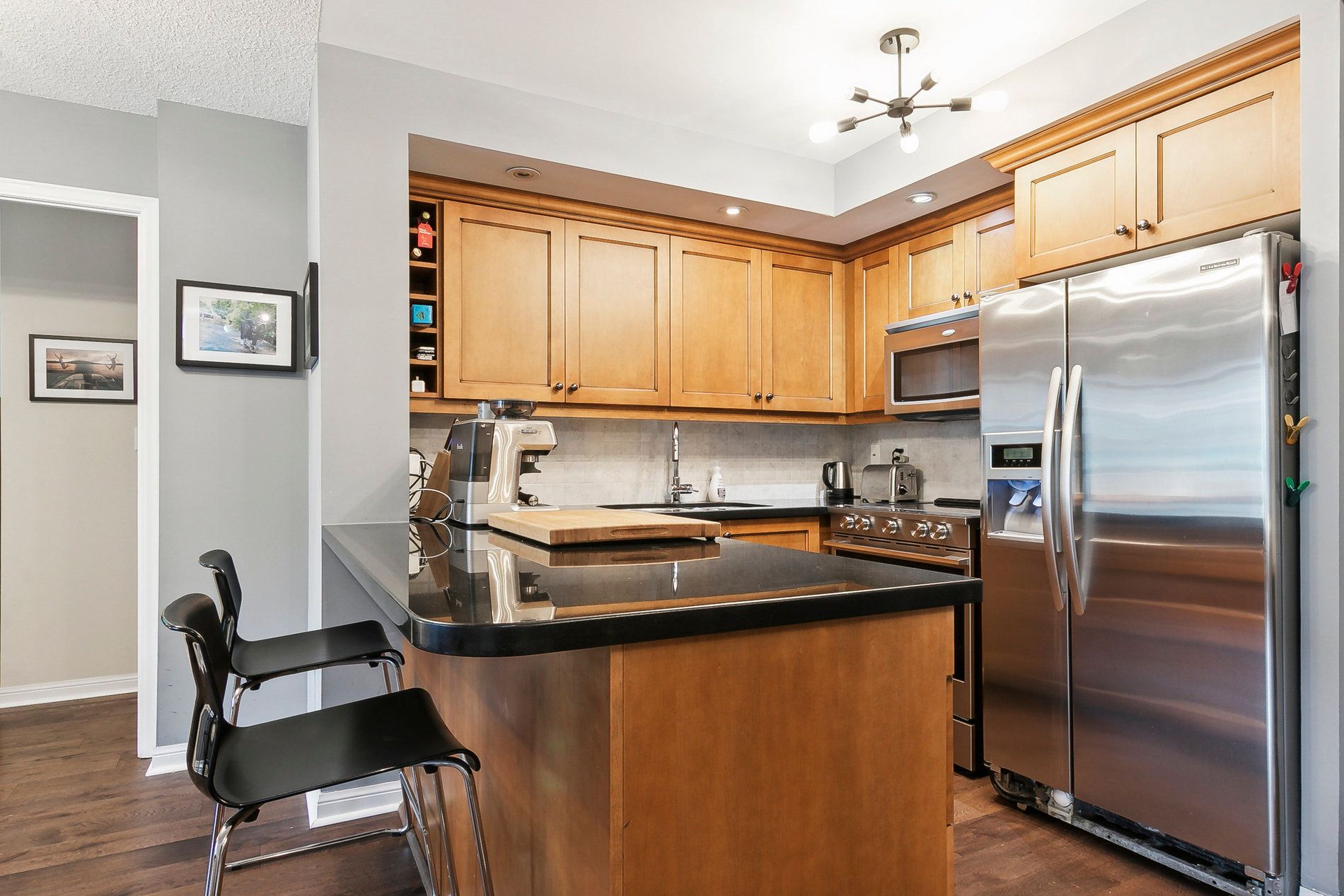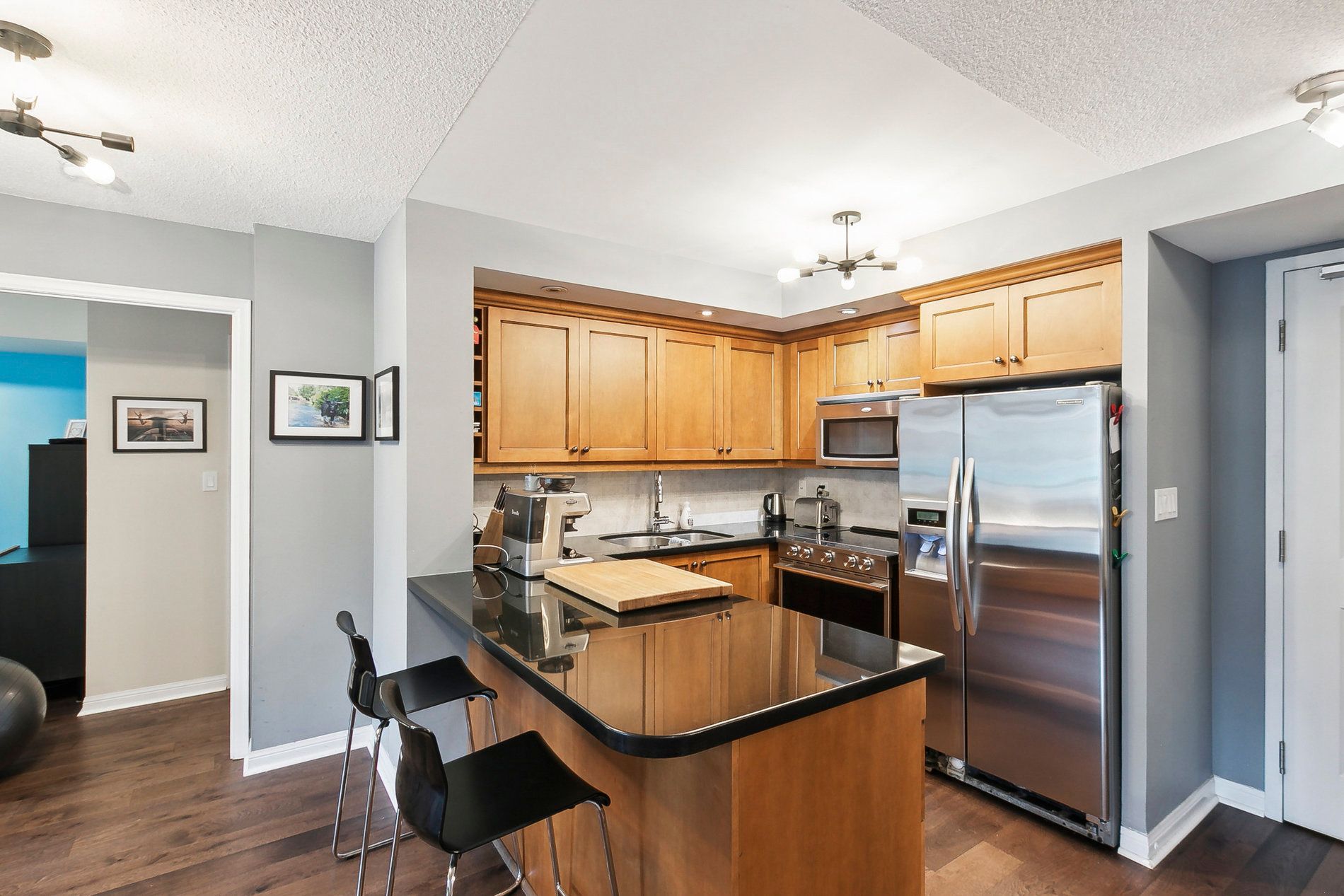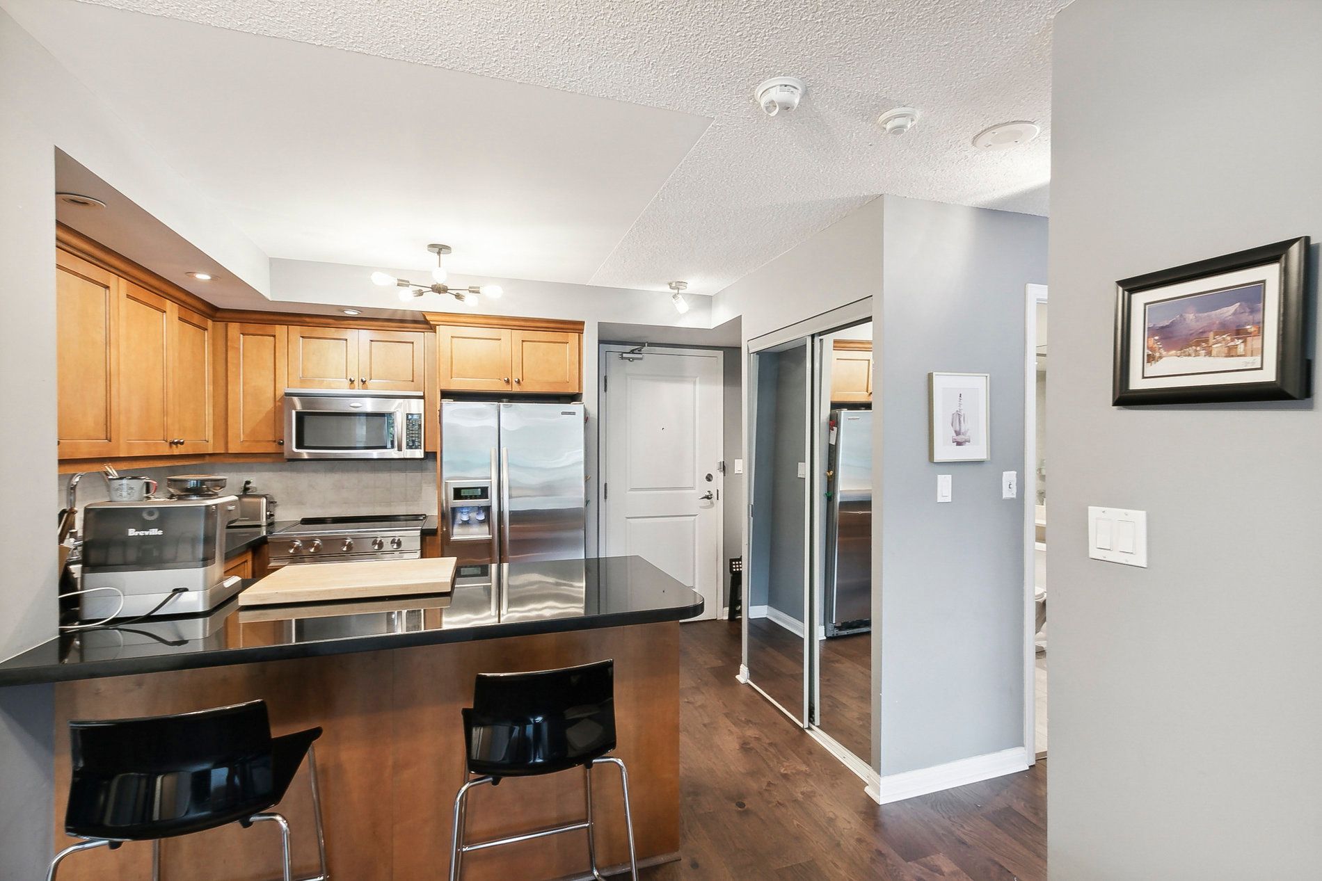 Rarely available and impeccably curated, this 834 square foot residence offers a unique "private townhome" feel in the heart of prestigious mount pleasant village. Perfectly suited for young professionals, downsizers, or those seeking an elite midtown pied-à-terre, this home distinguishes itself with a sense of privacy and intimacy rarely found in high-rise living. The thoughtful split-bedroom layout is anchored by refined interior finishes, including stone countertops, custom paris kitchen cabinetry, and gleaming engineered hardwood floors installed in 2020. The open-concept living and dining area seamlessly extends to a private east-facing balcony equipped with a rare bbq gas hookup (bbq included). The primary bedroom serves as a sanctuary with a spacious walk-in closet and an inviting ensuite bath, while the versatile second bedroom is ideal for a guest suite or a quiet executive home office. Residents benefit from an upscale boutique living experience featuring a 24/7 concierge, a fully equipped gym, guest suites, and visitor parking, while the suite itself is completed by stainless steel appliances, a convenient breakfast bar, and ensuite laundry. Experience the pinnacle of midtown living with the vibrant yonge and eglinton corridor just moments away. This prime location offers world-class dining, bustling cafes, and luxury retail destinations like stock t. C and the eglinton centre. Commuting is effortless with the yonge-university subway line providing seamless access to the entire city, complemented by the upcoming eglinton crosstown lrt and proximity to the scenic trails of sherwood park. This is a turnkey opportunity to own a sophisticated residence that balances the quiet comfort of a condo with the luxury and unbeatable connectivity of a well-regarded full-service building.