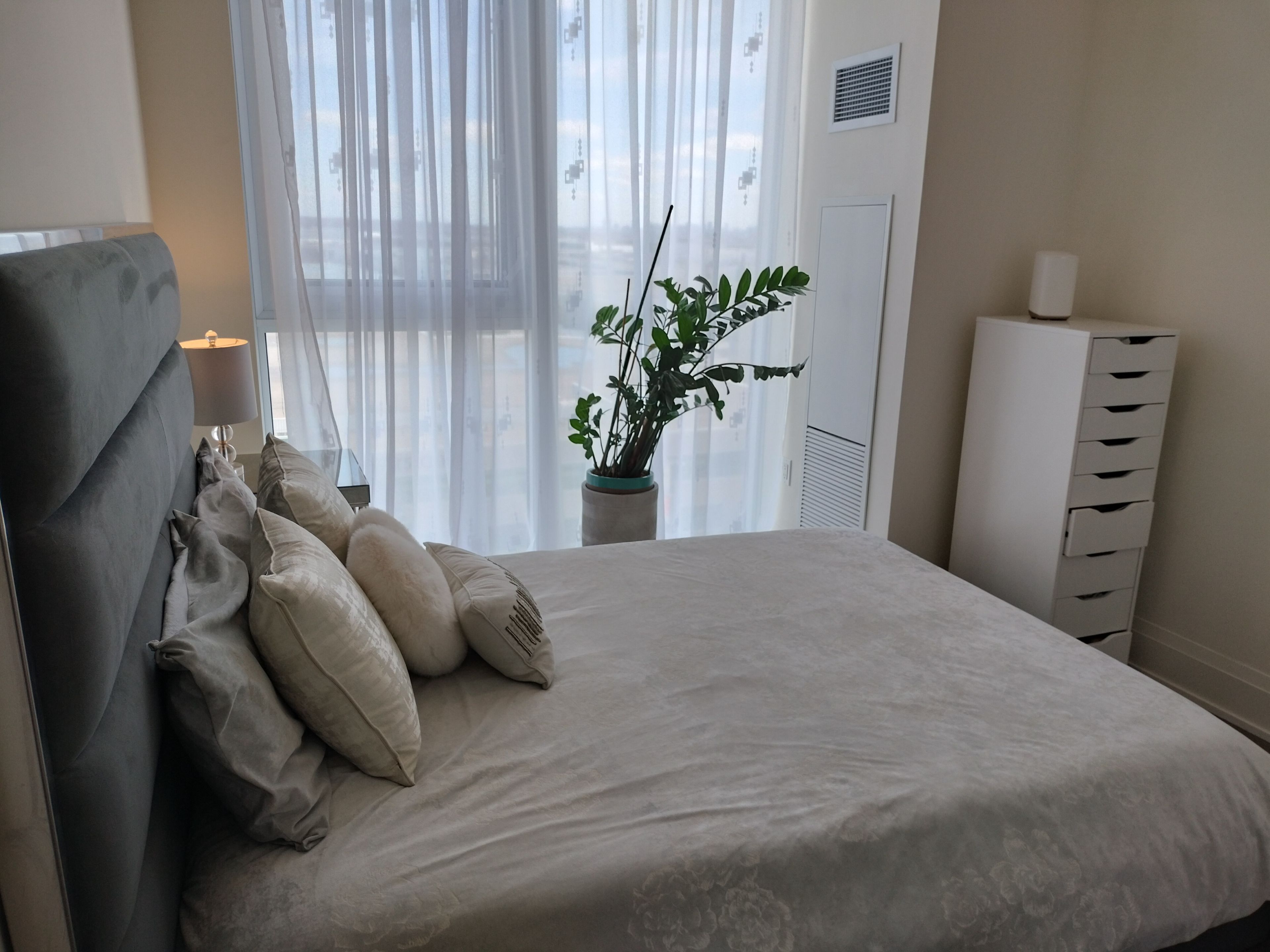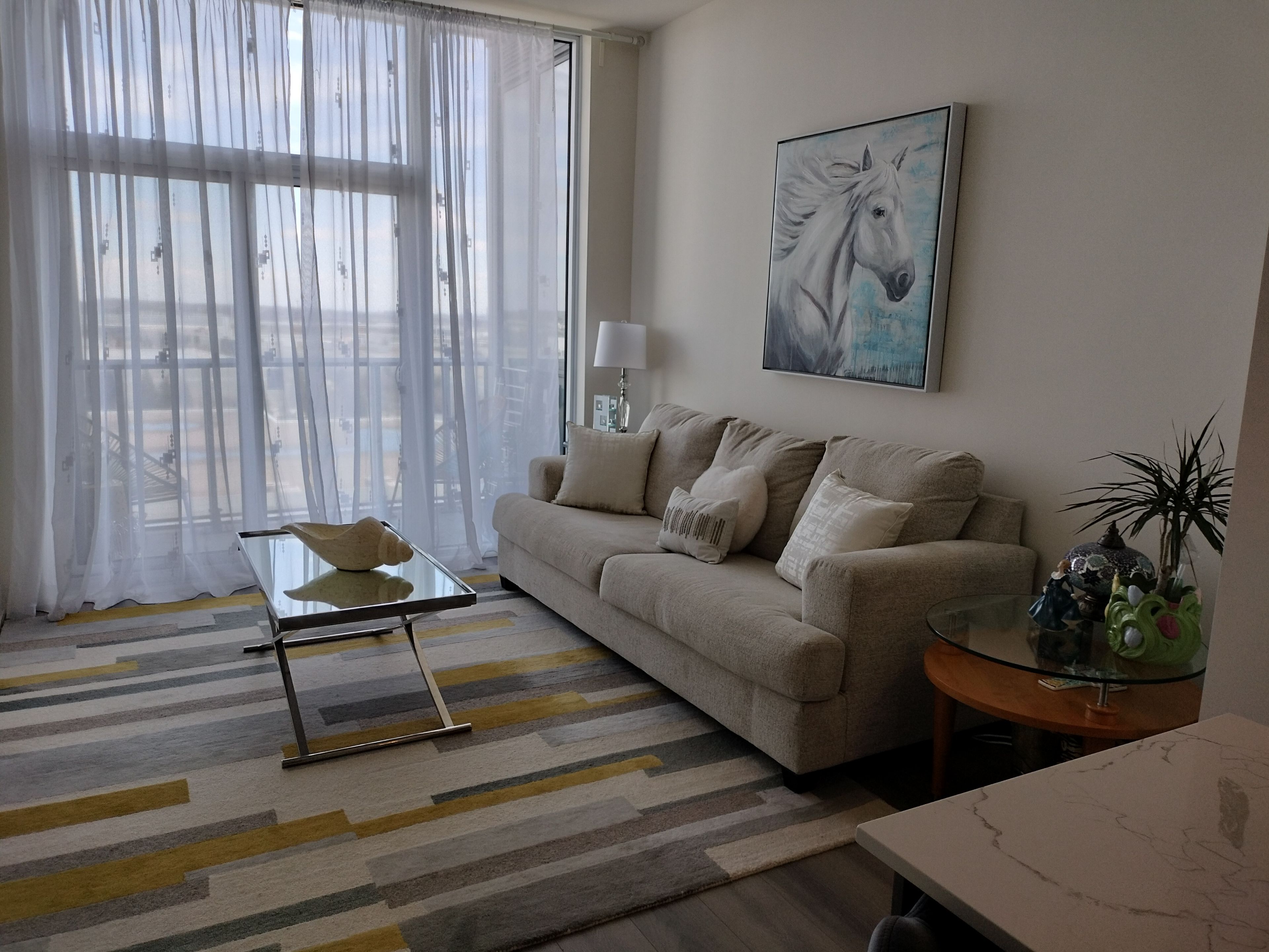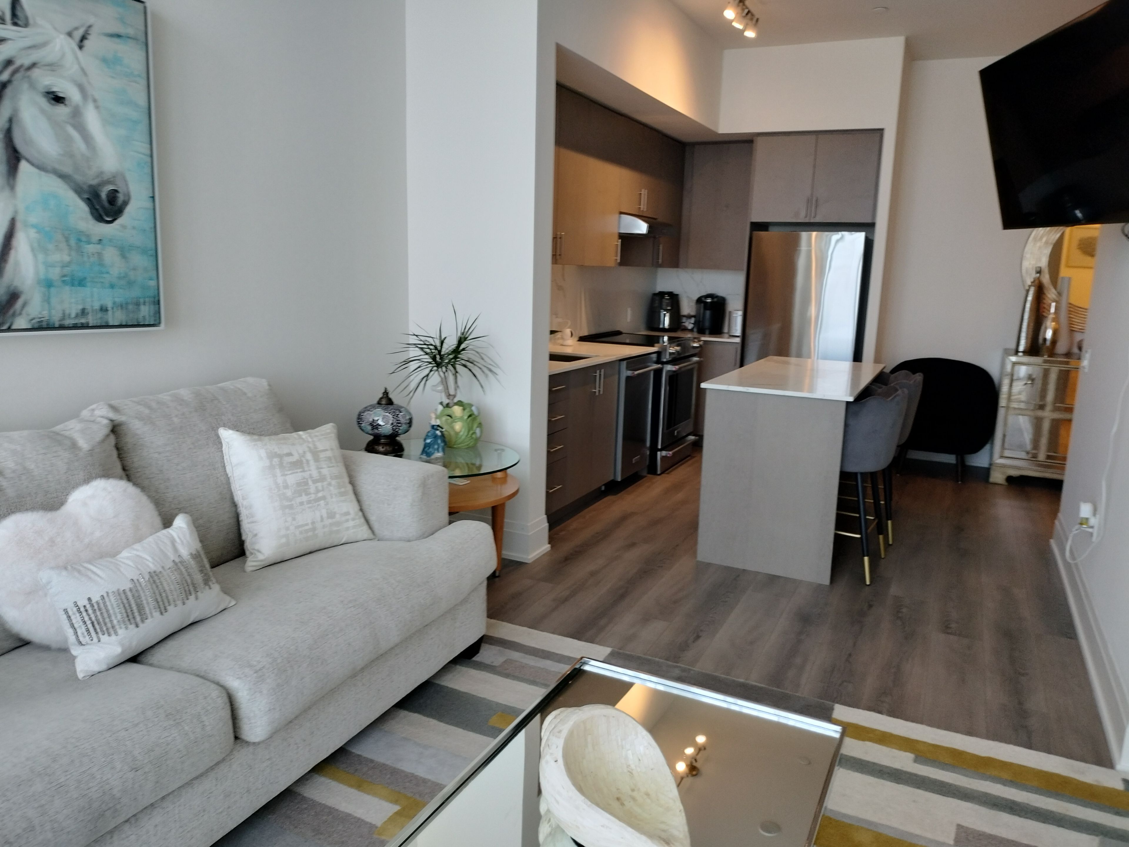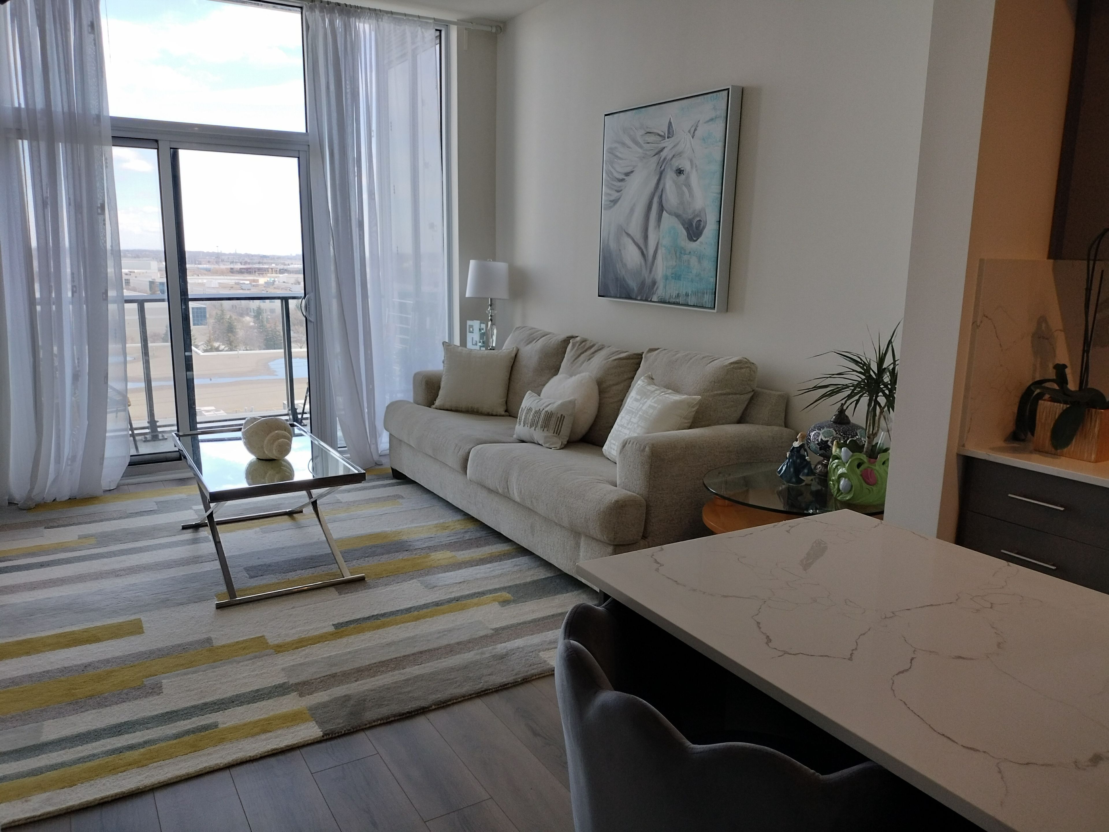 Gorgeous unit with east exposure, in charisma complex, vaughan. 1 bedroom+ plus 2 bathrooms. Features more then 600 sq. Ft. + 50 sq. Ft. Balcony, 10-ft ceilings, open-concept, highly functional layout, and floor-to-ceiling windows throughout, providing lots of natural light. Living/dining area with walk-out to balcony. Modern kitchen with quartz countertops and stainless steel appliances. Excellent amenities: rooftop terrace, outdoor pool, gym, theatre, party room, billiards and games room. Prime location at jane & rutherford, steps to vaughan mills mall, close to major highways 400 and 407, vaughan metropolitan centre, canada's wonderland and cortellucci hospital. Non smokers only and no pets. Tenanat will be responsable for hydro. 50$ per month extra if the tenant willing to get furnished unit.