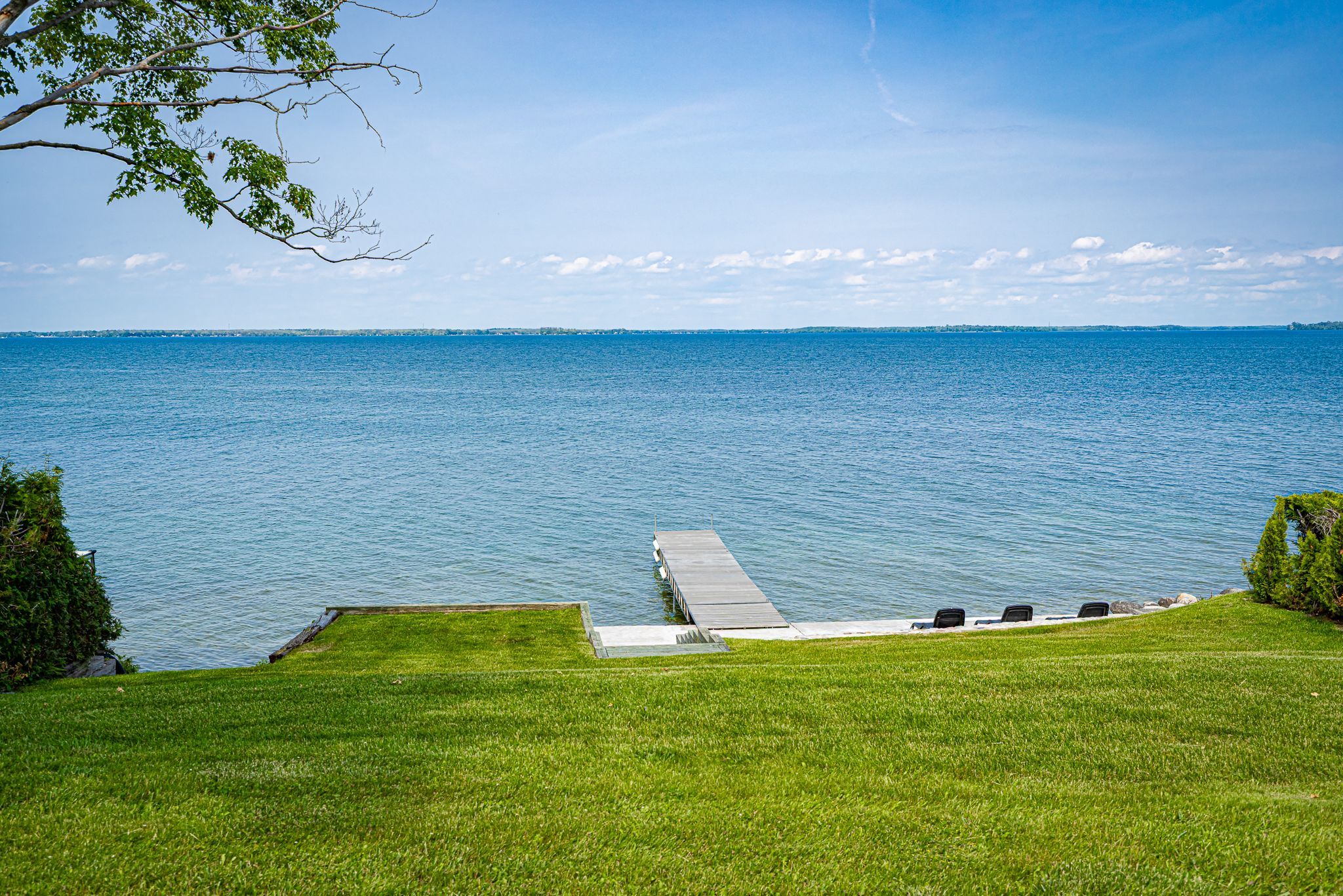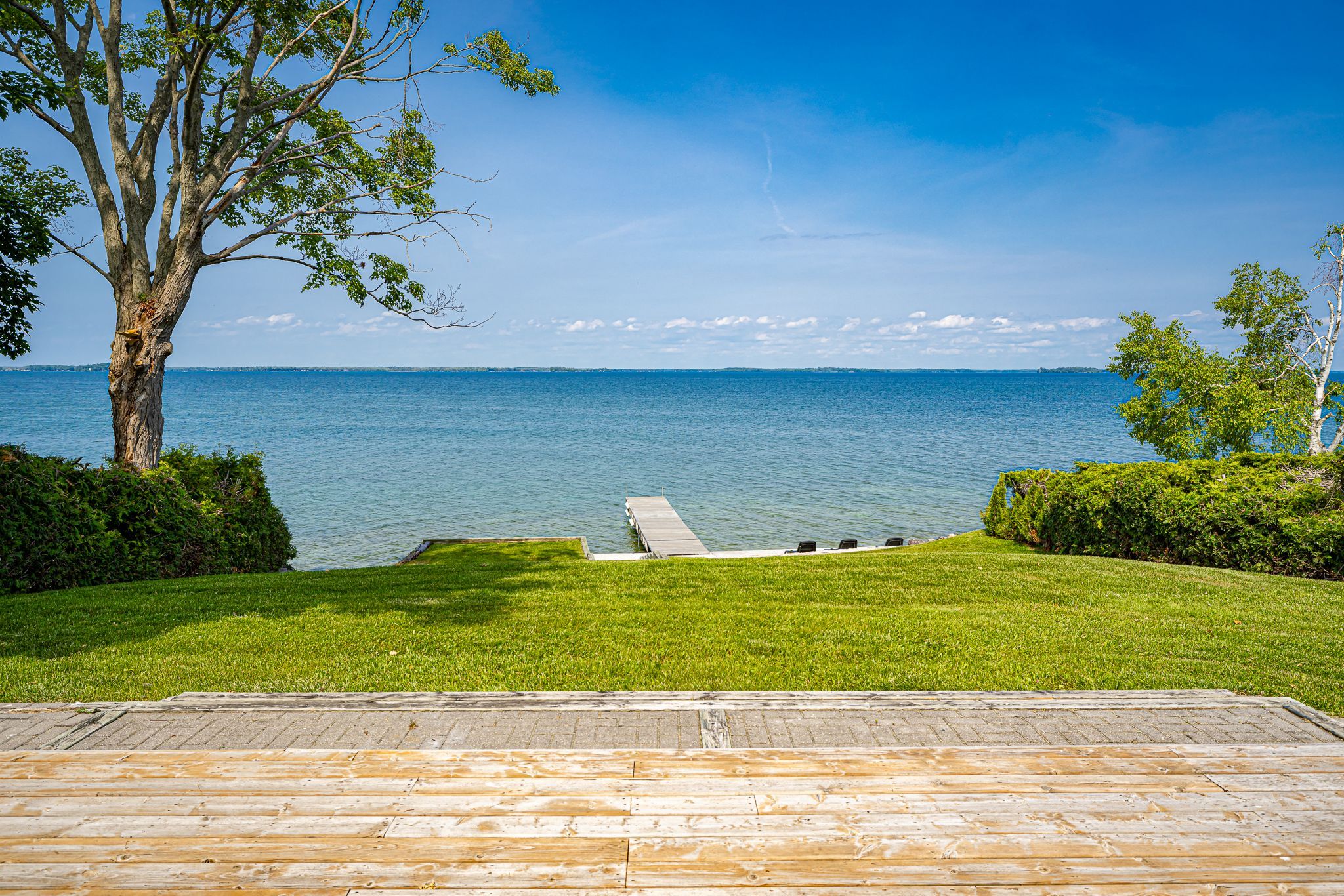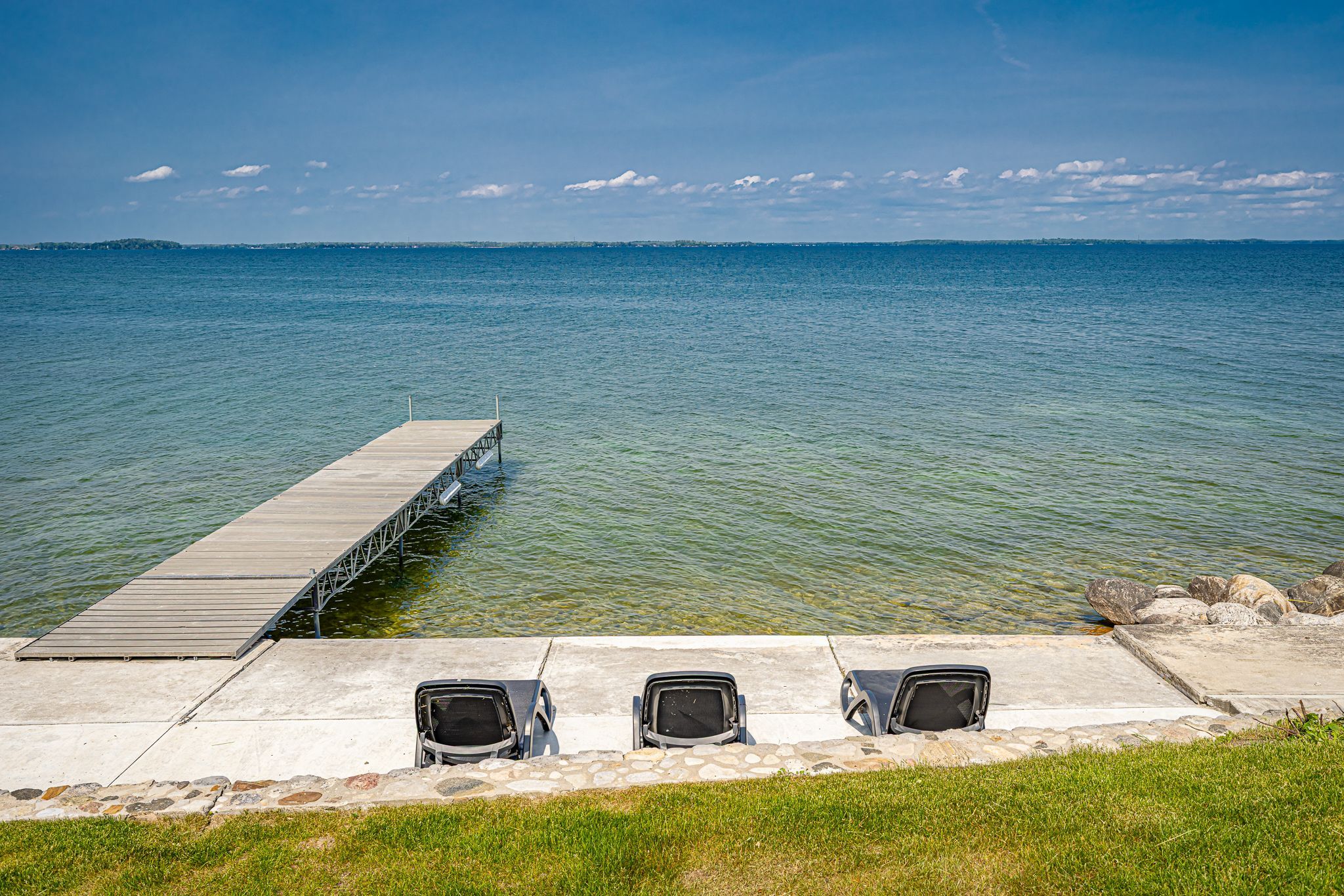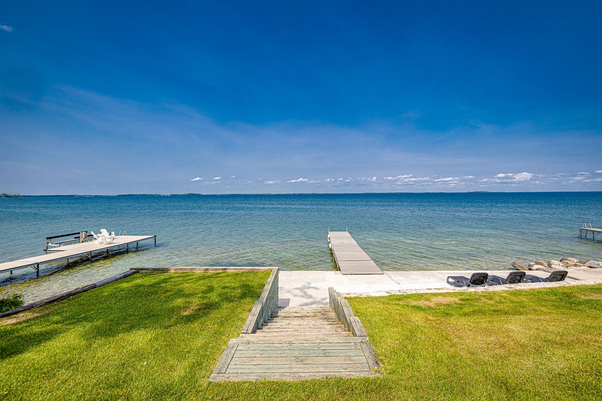 • Spacious lot with outdoor hot tub and waterfront sitting area.