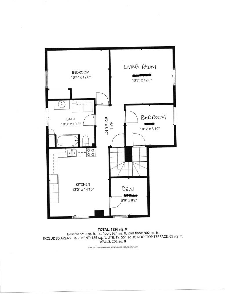 • Second-floor unit with two bedrooms, den, and in-suite laundry for convenience.