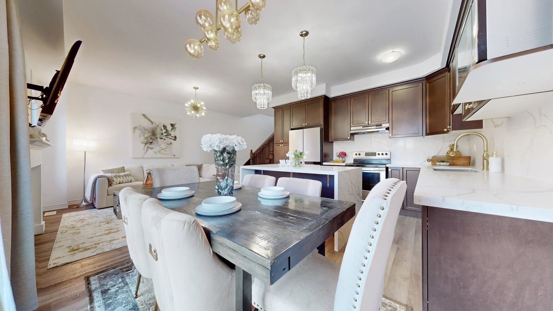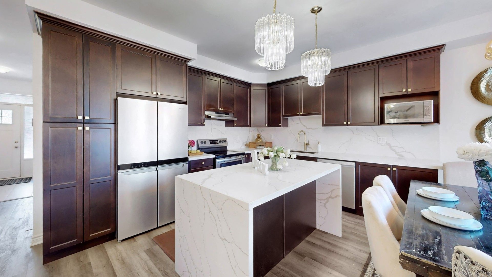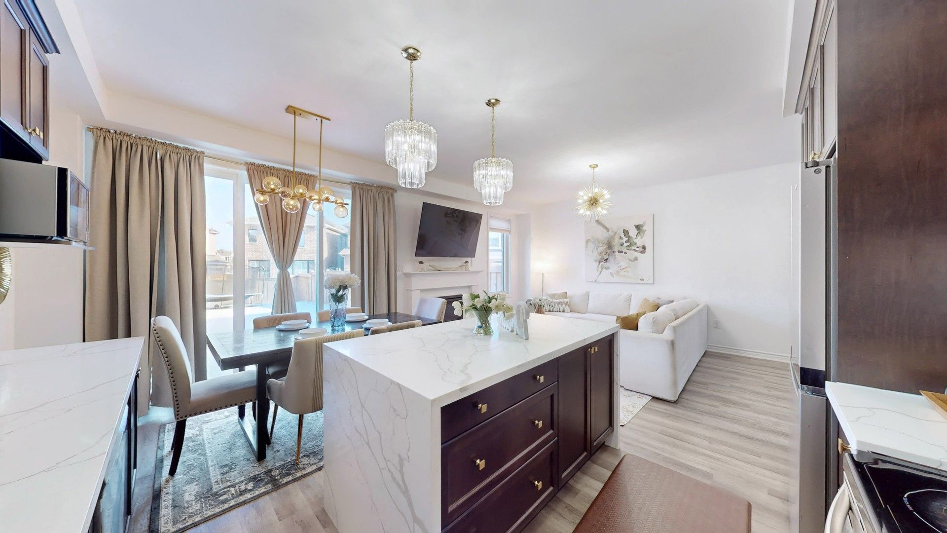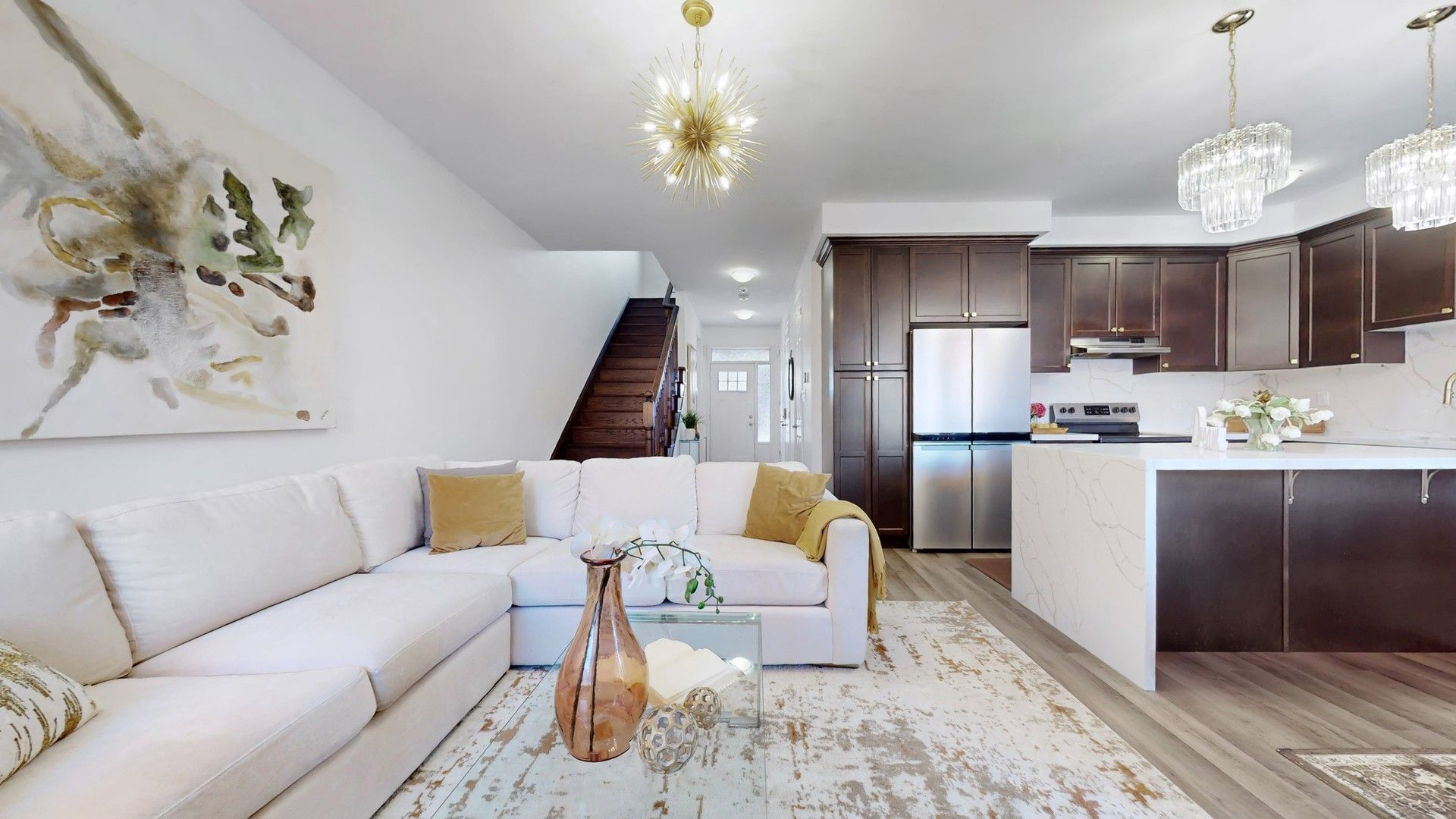 • Bright open-concept main floor with 9-ft ceilings and hardwood flooring.