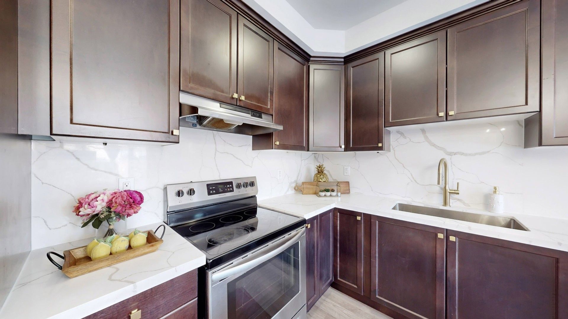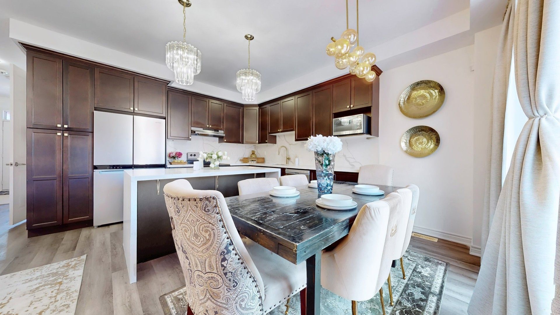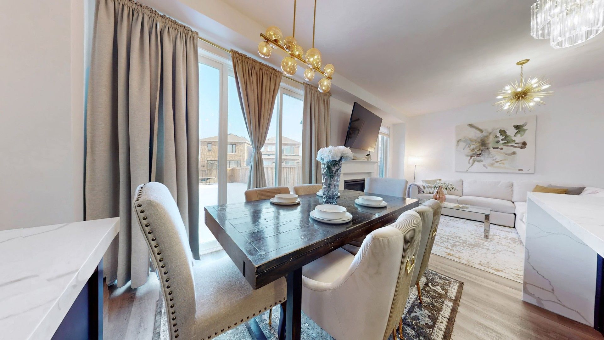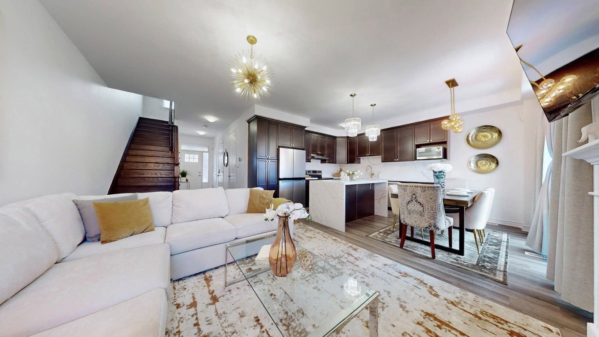 • Bright open-concept main floor with 9-ft ceilings and hardwood flooring.