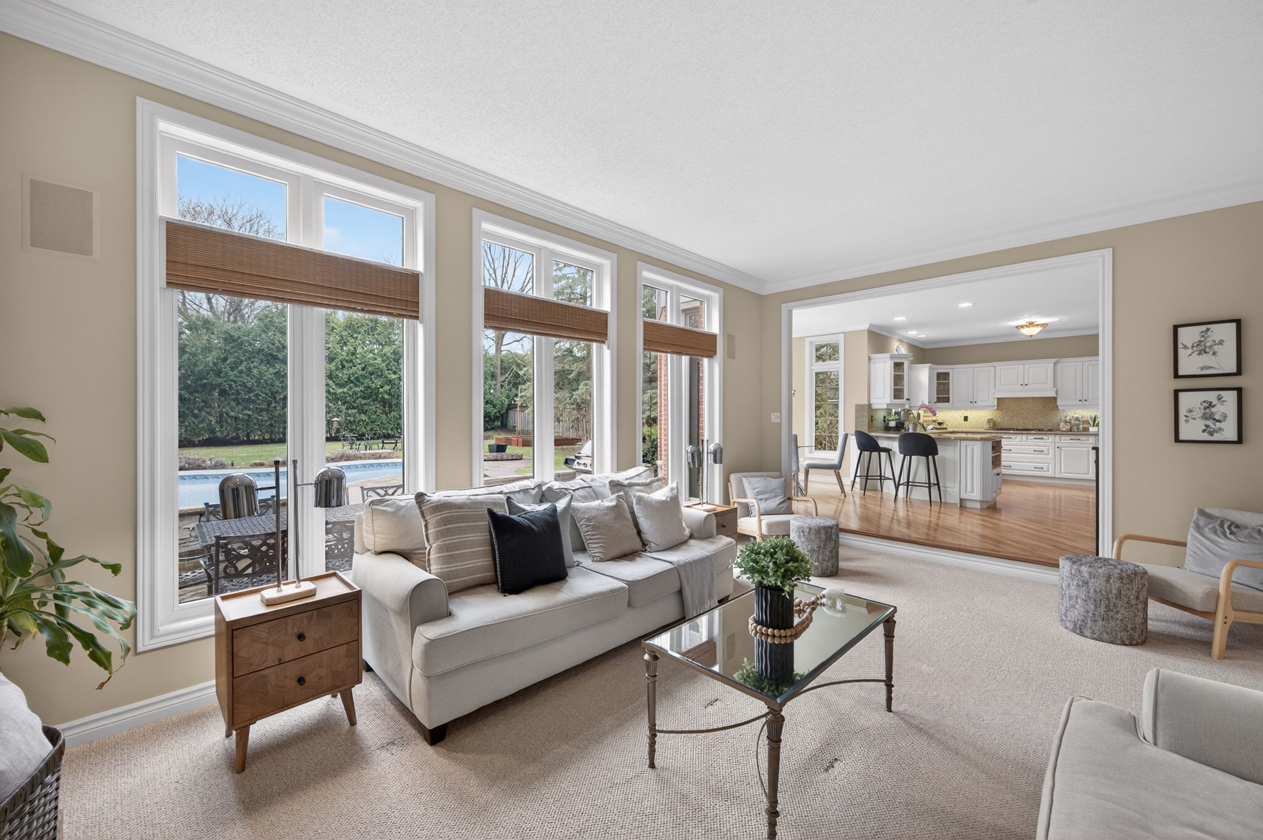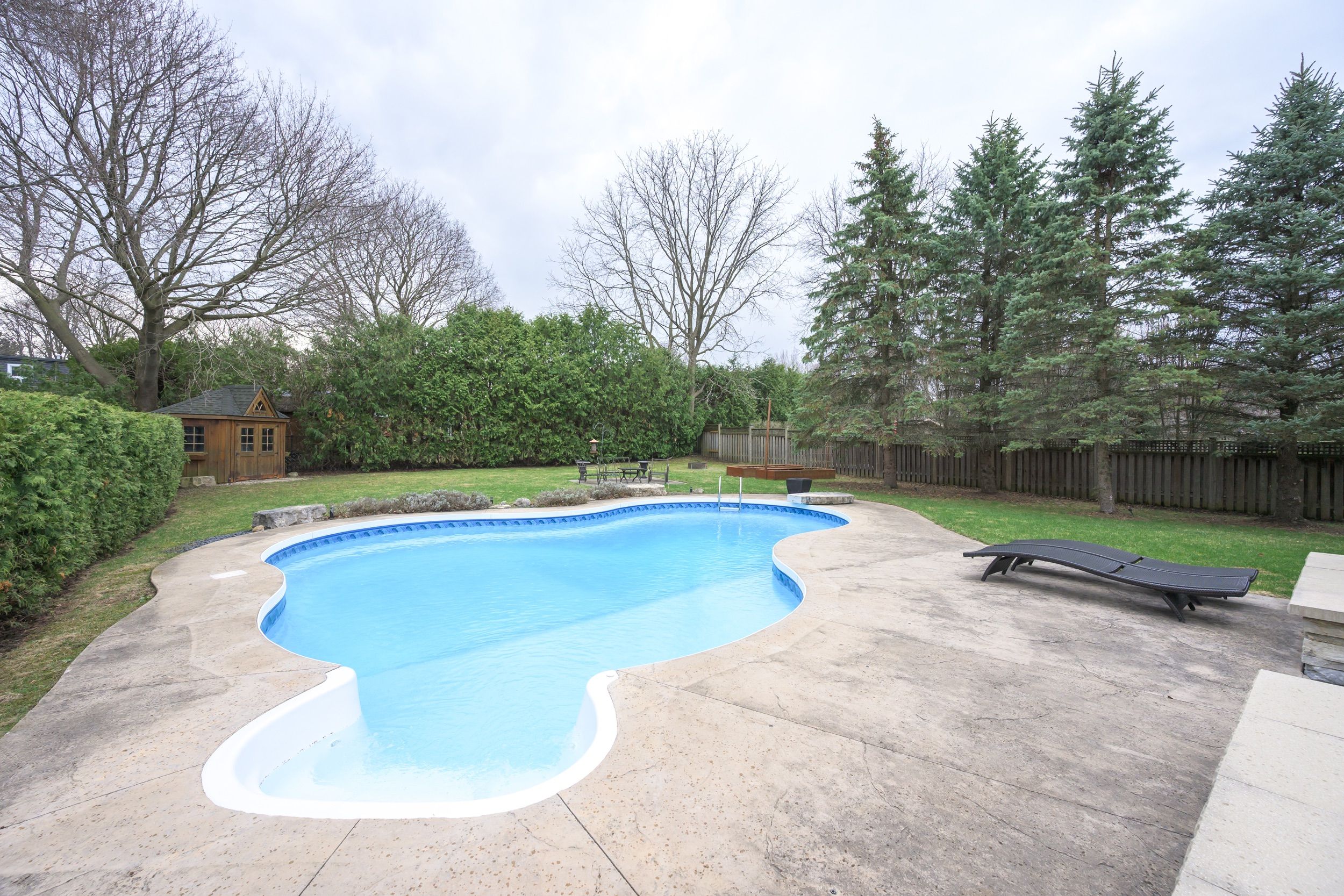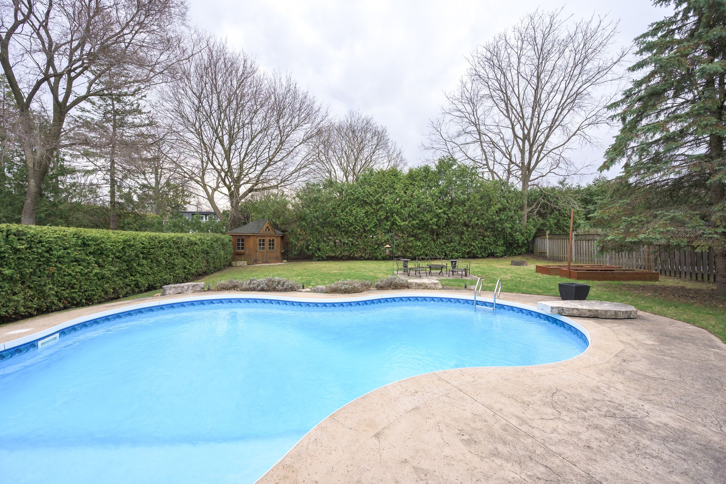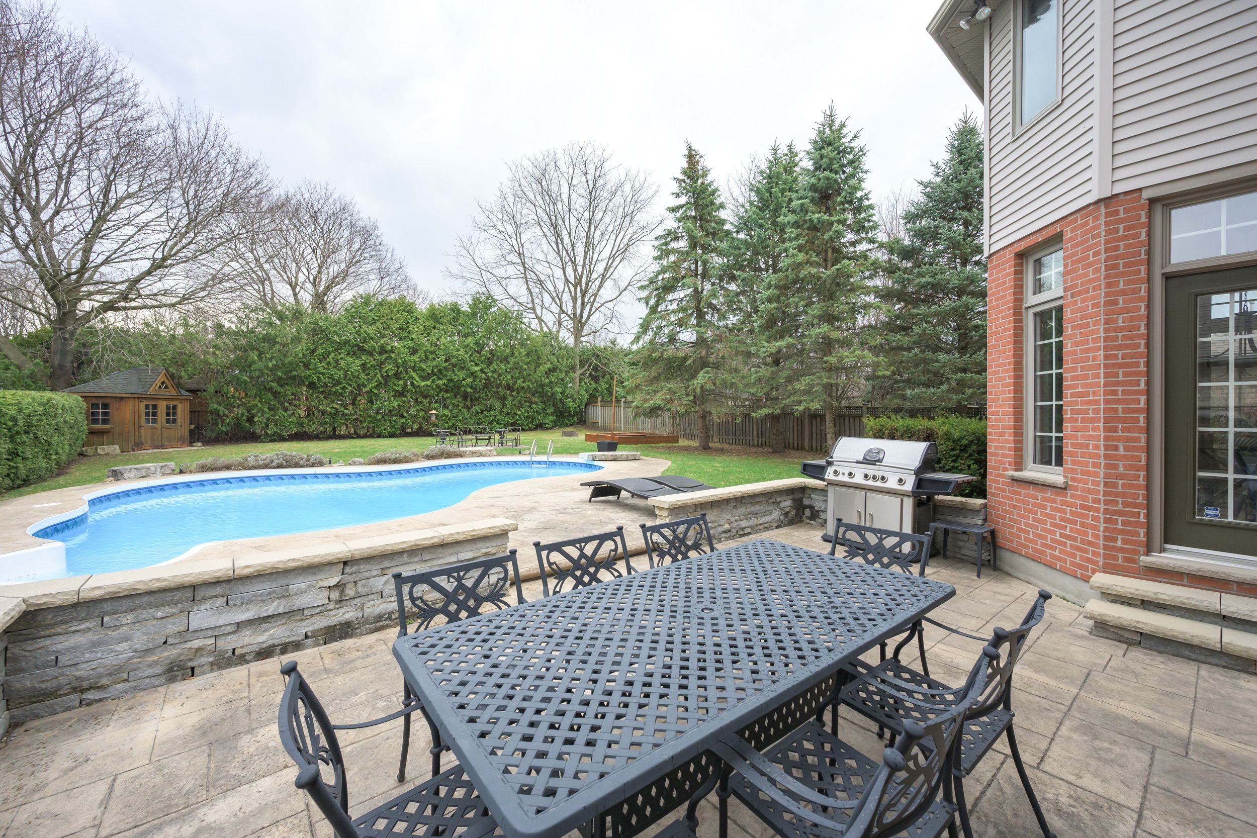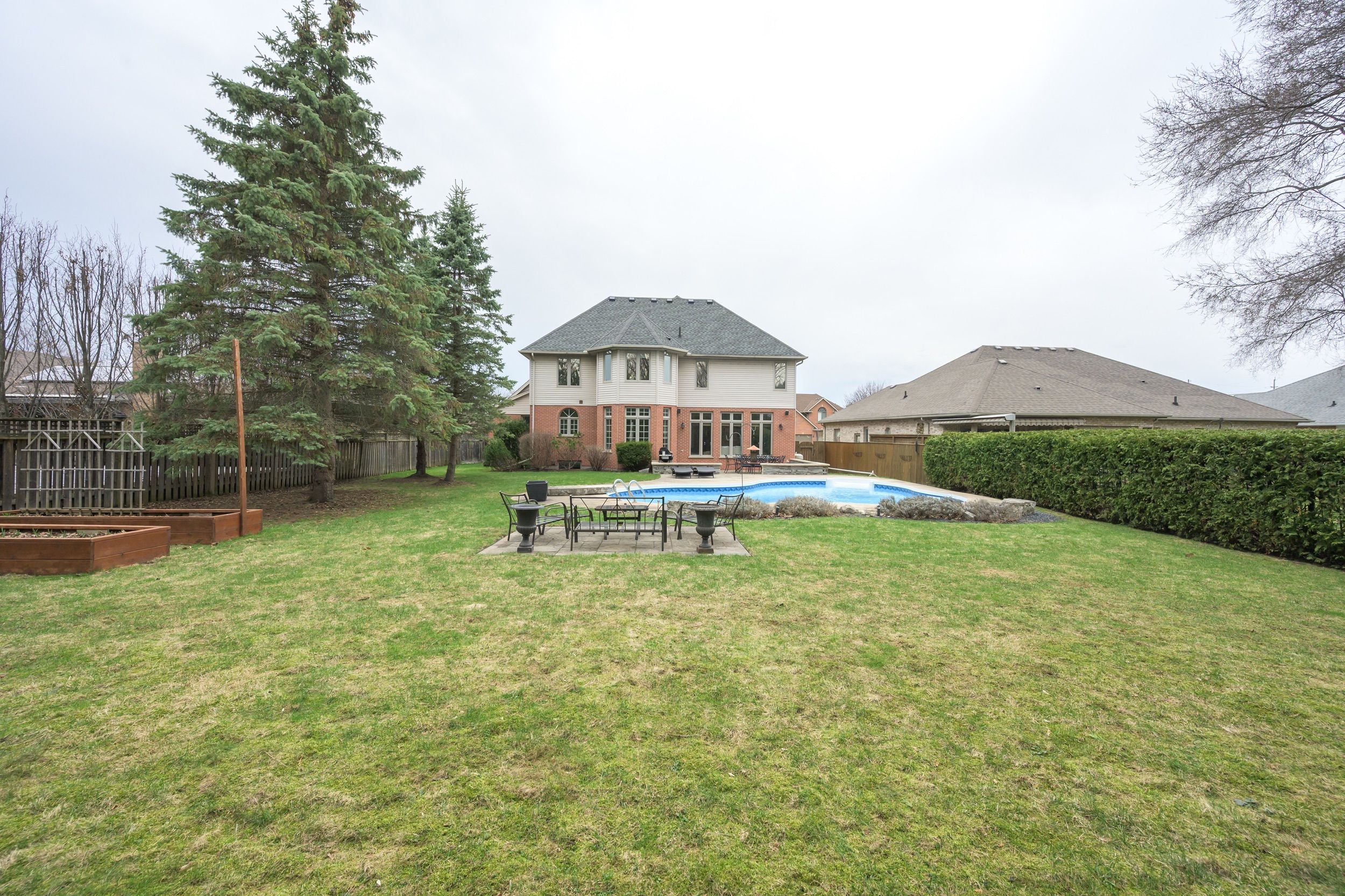 • Backyard features an in-ground pool and ample space for outdoor living.