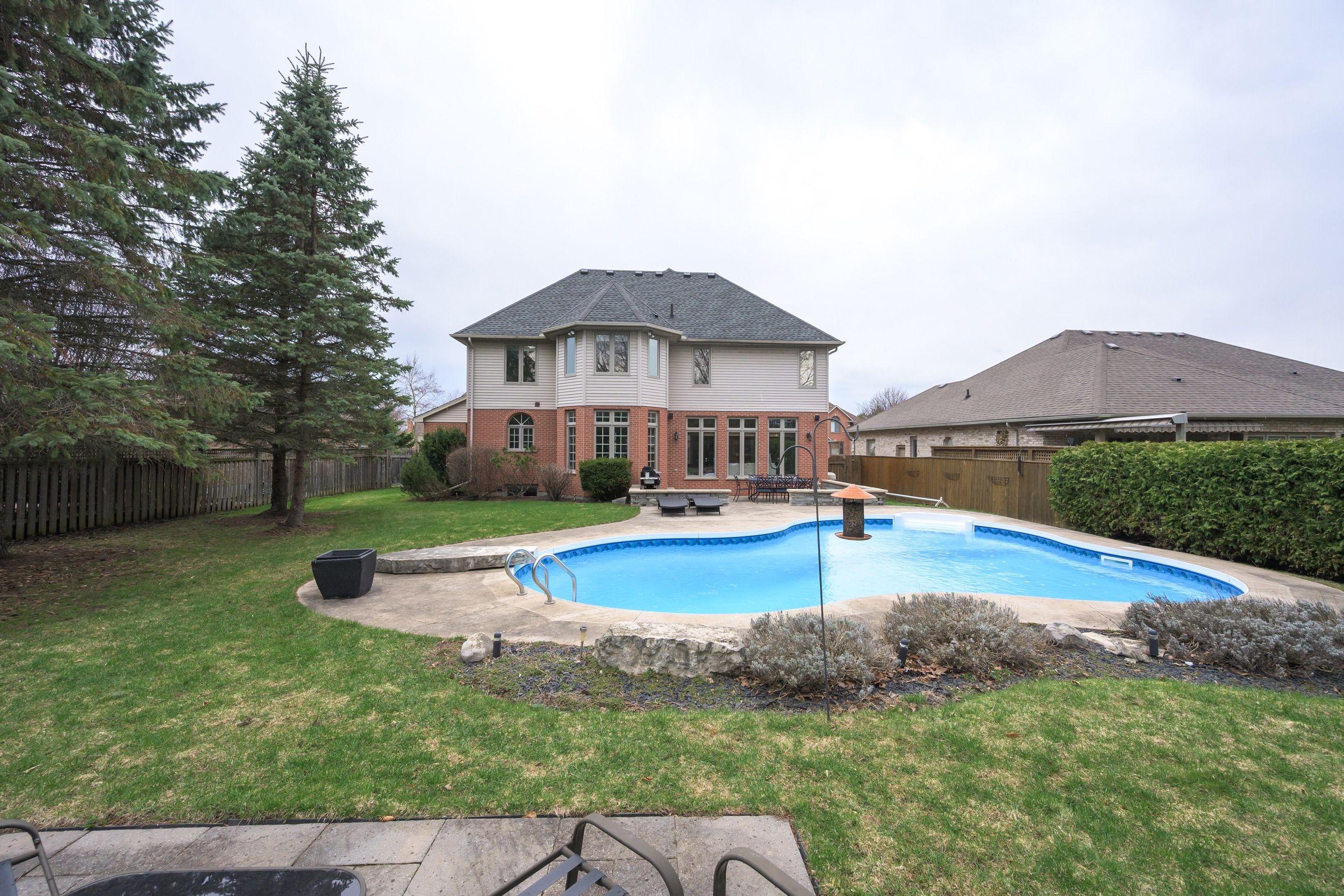 Welcome to a rare opportunity within hunt club, ideally located on one of the few streets offering this sought-after balance of size, lot, and value in this prestigious neighbourhood. Set on a beautifully secluded 75 x 160 ft lot surrounded by mature trees, this home is over 3000 sqft and delivers privacy, space and executive finishes that is increasingly hard to find at this price point. The backyard is a true highlight, featuring an in-ground pool, patio, lush landscaping and ample room for additional outdoor living, whether that be a cabana, play space, or entertaining areas. Inside, the home offers a fantastic two-storey layout designed for both everyday living and hosting. A welcoming foyer leads to a bright living room with vaulted ceilings and a formal dining room, ideal for gatherings. At the back of the home, where families naturally spend their time, the spacious kitchen offers abundant cabinetry, generous counter space, a large eating area with direct access to the backyard and seamless flow into the expansive family room with fireplace, all overlooking the private outdoor setting. A main floor office with built-ins offers the perfect work-from-home setup. The main floor is complete with laundry and a well-appointed powder room. Upstairs, four generous bedrooms provide space for the entire family, including a primary suite with a walk-in closet and large ensuite. The layout is both functional and timeless, offering flexibility for growing families. The finished lower level adds valuable additional living space, ideal as a family room, recreation area, or a place for a family to stretch out and relax plus a versatile office. Located within one of london's most coveted neighbourhoods, hunt club is known for its top-rated schools, proximity to western university and university hospital, beautiful parks, golf, shopping and restaurants. A rare chance to secure a home in this particular pocket of hunt club, where opportunities like this don't come up often.