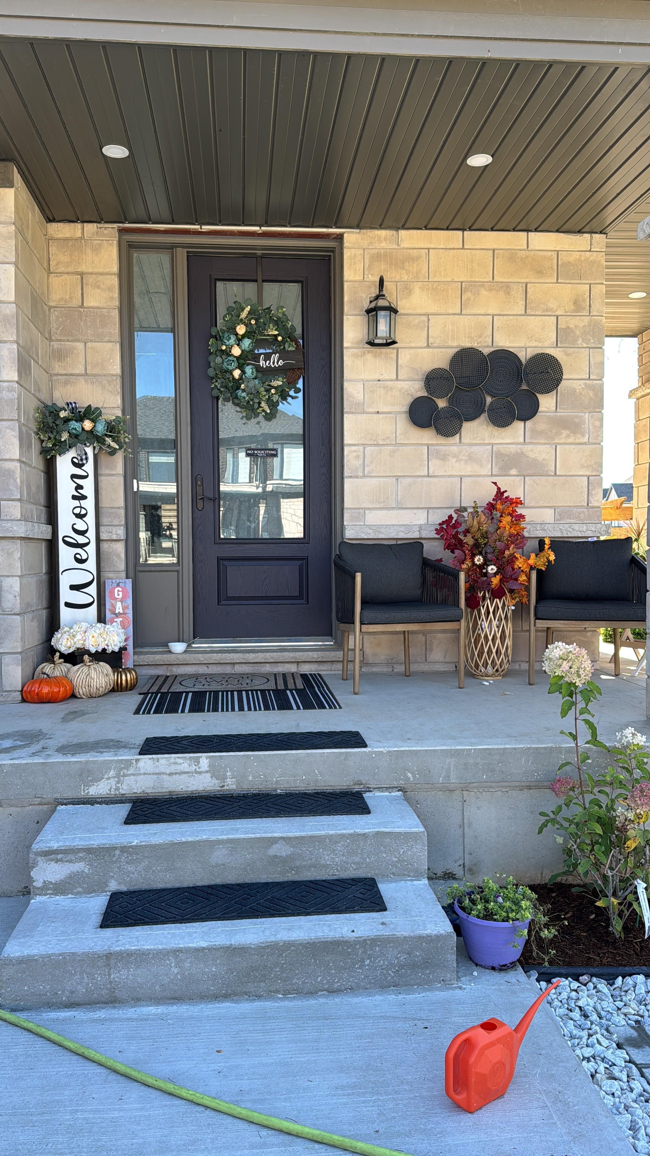 An exceptional 4-bedroom, 3-bathroom linked townhome with garage, offering the look and feel of a detached home. Step into a bright, open-concept interior featuring 9-foot ceilings, hardwood flooring, custom tile work, oversized windows, and pot lights throughout the home and porch. The main level offers a spacious living room with a cozy fireplace and walk-out to the backyard, seamlessly connected to the dining area and breakfast space. The modern kitchen is equipped with a center island, stainless steel appliances, a gas stove, quartz countertops, ample cabinetry, and a convenient 2-piece powder room. Direct access from the garage to the house adds everyday comfort & functionality. The upper level boasts a generous primary bedroom with a walk-in closet & a luxurious 5-piece ensuite. Three additional well-sized bedrooms share a 4-piece bathroom, private balcony provides a peaceful outdoor retreat. The bright, unfinished basement features a 3-piece bathroom rough-in, cold cellar, and excellent potential for customization or additional income. Additional interior upgrades include a 200-amp electrical panel, closet organizers in all bedrooms, a centralized humidifier, a garage door opener, and an owned water softener. Situated on a premium corner lot, the exterior offers a fully fenced backyard ideal for entertaining or family enjoyment, complete with a gas line for bbqs, concrete walkways from front to backyard with sealer coating, and a shed (11 ft x 7 ft) with concrete base. Parking for three vehicles is available with an extended driveway (city permit) plus a single-car garage. Located in the family-friendly havelock corners community near pittock conservation area, with close proximity to parks, trails, thames river, and everyday amenities. Minutes to highways 401 and 403, offering an easy commute to london, kitchener, and the gta. Turtle island public school is anticipated to open in june 2026. Don't miss this wonderful home.
