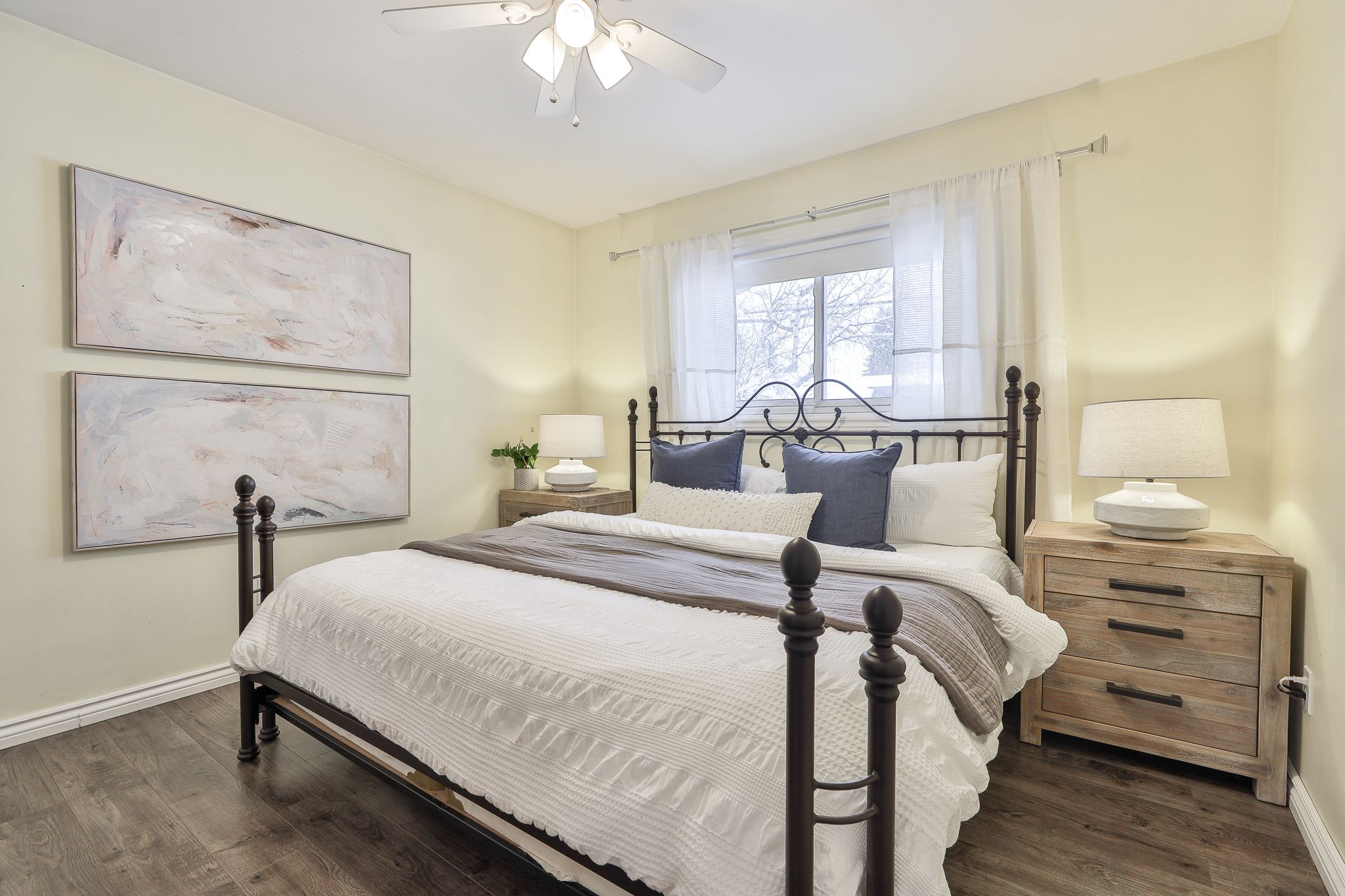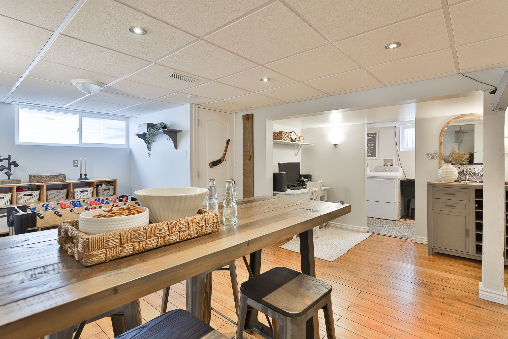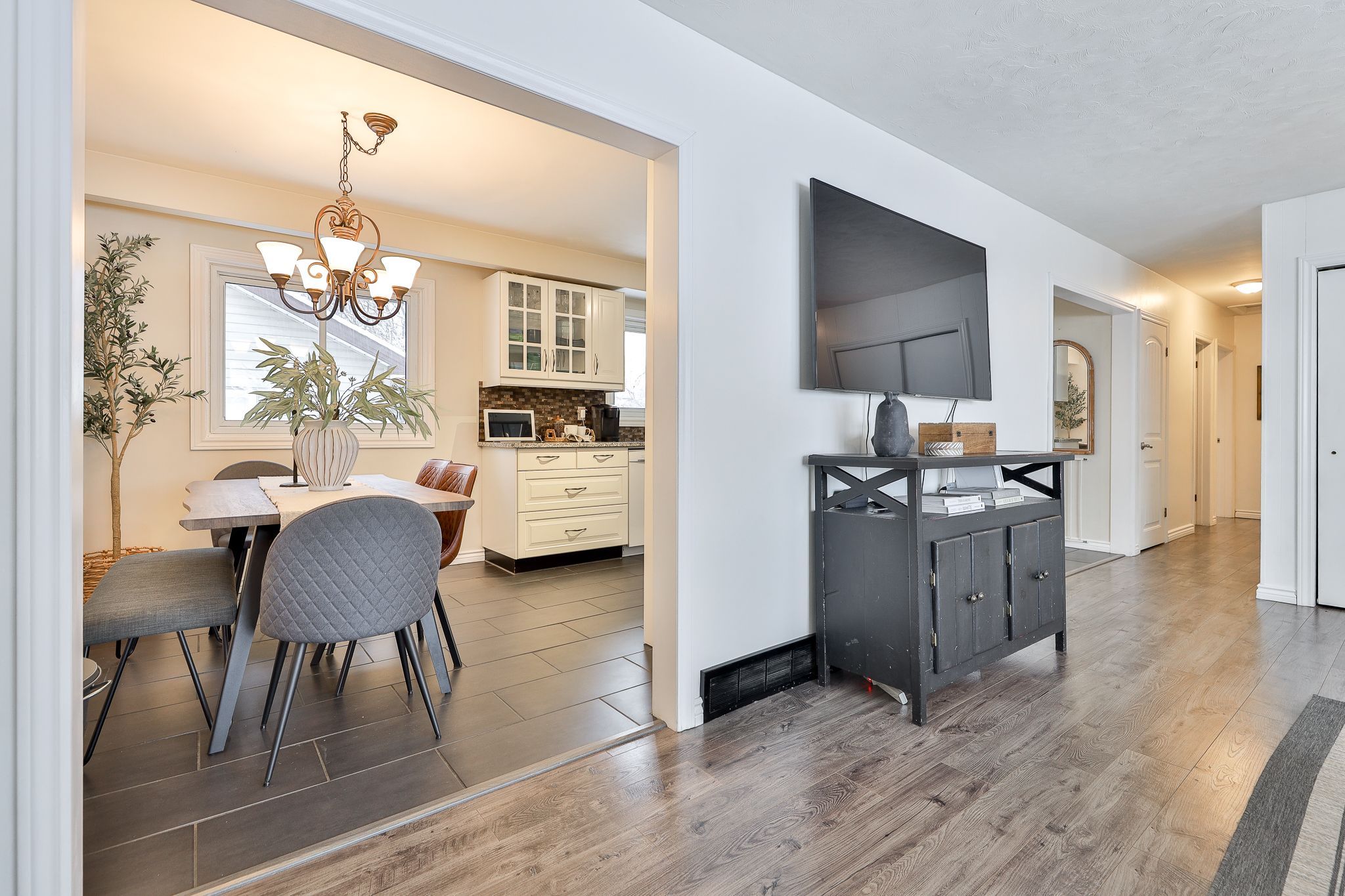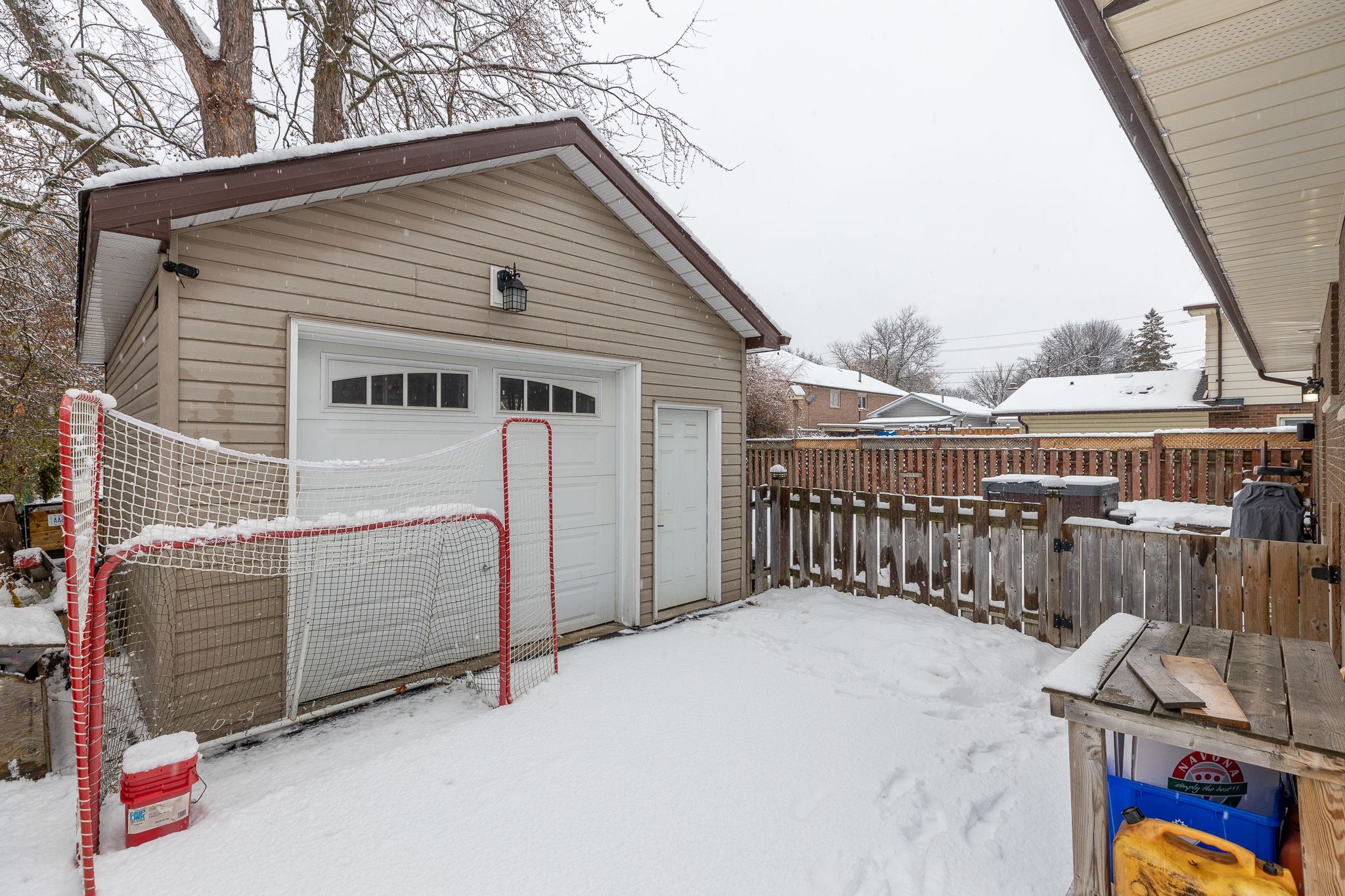 Wow, welcome to this thoughtfully updated bungalow on a quiet, family-friendly street where pride of ownership is evident throughout! With approx $100,000 in improvements, this property offers comfrt, flexibility, and peace of mind for years to come. * the main level is anchored by a bright, welcoming family room featuring a large picture windw that fills the space with natural light & offers a clear view of the front yard. The layout allows for full-sized furniture and easy flow, making it a comfortable space to relax or gather. * new laminate flring throughout adds a clean, cohesive feel. The renovted kitchn (2012) features granite counters, modern appliances, pot lighting over the sink and inside the cabinetry, and excellent storage. The adjoining dining area comfortably fits a full-size table, making everyday living and entertaining effortless. * upstairs, you'll find three well-proportioned bedrms, including a primary bedrm that comfortably fits a king-size bed, along with a full bathrm renovated in 2011. * the layout is practical and easy to maintain, finished in neutral tones throughout. New doors and trim, along with new front and back doors, bring a clean and updated feel. * the finished basemnt (2017) offers exceptional additional living space and truly extends the home. Designed for comfort and entertaining, it features potlights, multiple versatile zones for lounging, hosting, or working from home, a dedicated bedrm ideal for a home gym or guest bedroom, and a custom renovated bathroom (2018) with heated floors & oversized shower. * new basement windows bring in added natural light. * outside, enjoy a large, mature yard, ideal for summer entertaining, gardening, or simply unwinding. A fully detached oversized garage added in 2014 and extended driveway (2015) provide ample parking and storage. * set in a quiet neighbourhd with great neighbours, this central location offers easy access to parks, schls, restaurants, amenities, go train, and major highways!