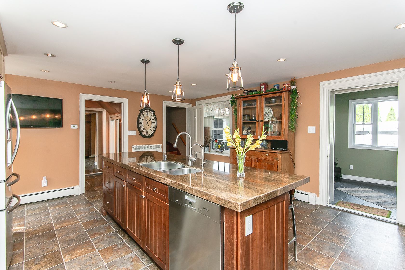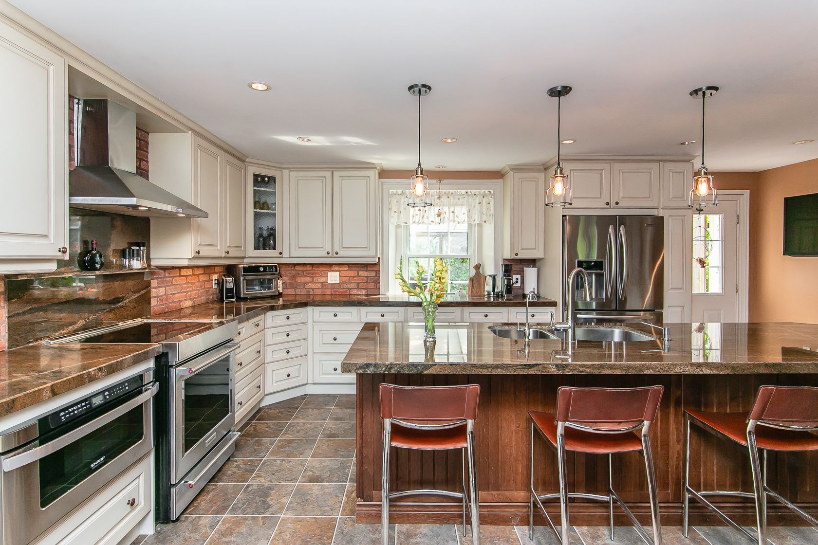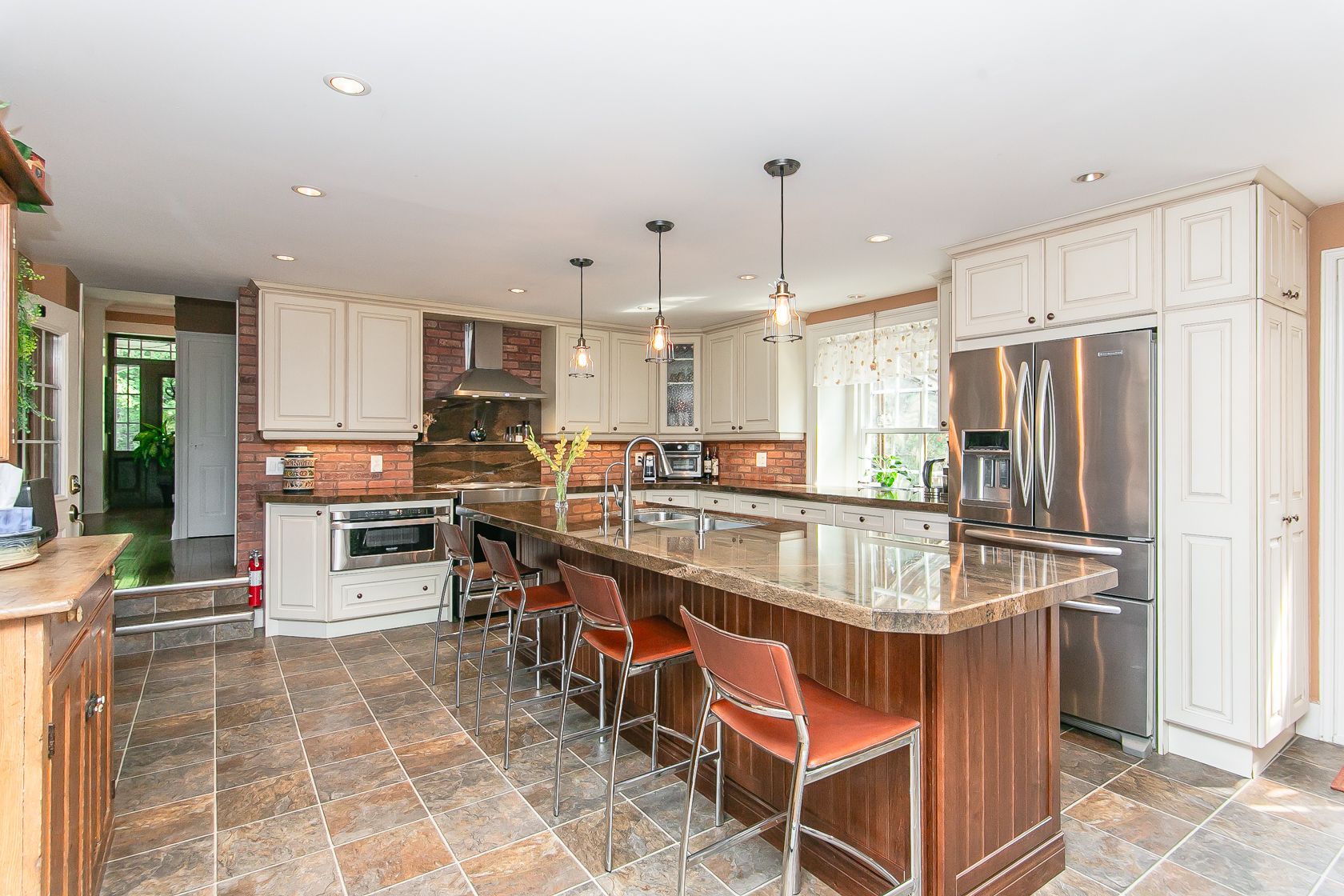 • Spacious gourmet kitchen with granite countertops and high-end appliances.