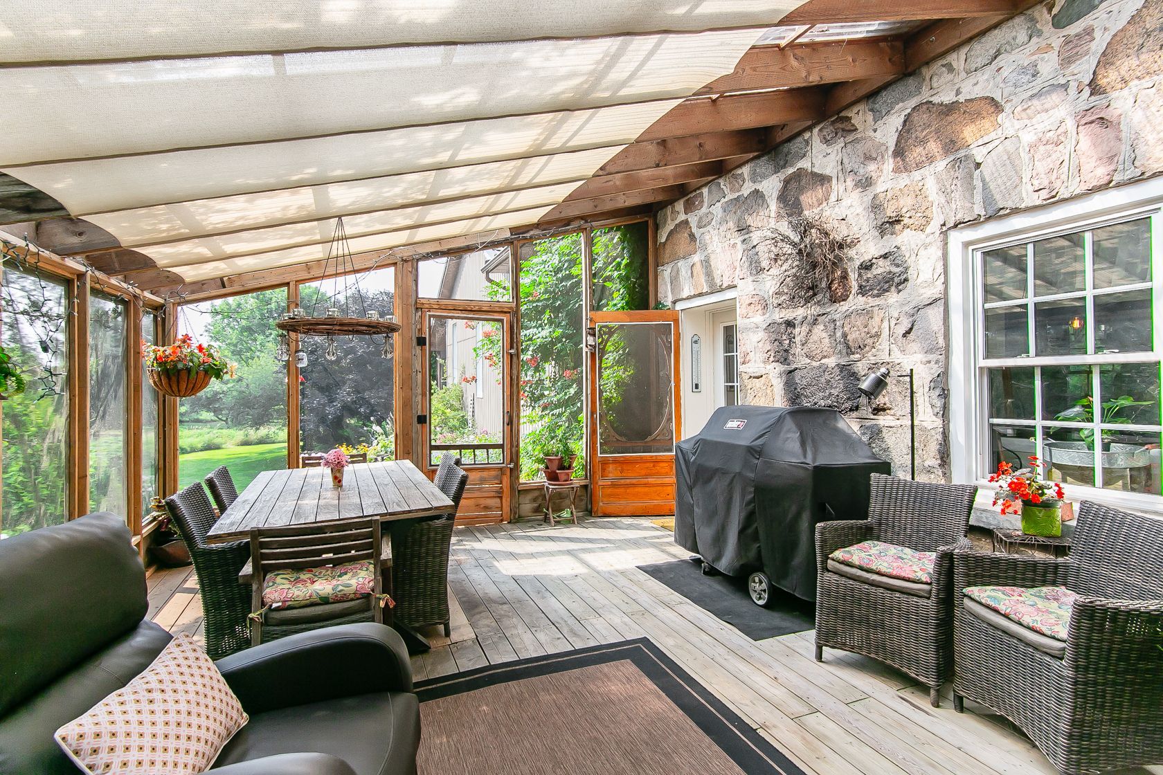 Welcome to your dream country retreat, tucked away on a peaceful rural road just outside plattsville. This 1857 stone home has been renovated blending character with modern comfort, all nestled on a private, beautifully landscaped 1. 6 acre lot that truly is a gardeners paradise. Stroll through the gardens, unwind by the firepit with family and friends. You'll find a charming shed, perfect for storing your riding mower, and other equipment. A sparkling 20x40 heated inground pool awaits you, tucked into its own secluded, fenced in area surrounded by mature trees and shrubs. There's even a dedicated vegetable garden for the green thumbs in the family. This exceptional home offers approximately 3700 sq. Ft of living space, and a massive 4+car garage, featuring an e/v charger, hot+cold running water, floor drains and portable heater. Two breezeway entrances offer practical storage and convenience. Inside you will find formal living/dining rooms, perfect for family gatherings or quiet relaxation. The gourmet kitchen offers an abundance of cabinetry, granite countertops, a large island with breakfast bar and high end appliances, and a new ss range hood. There is a spacious laundry/mud room, complete with ample storage. Off the kitchen the outdoor sunroom offers a perfect spot for movie nights, watching sports, etc. The bright family room impresses with cathedral ceilings, skylights, a cozy gas fireplace & a built-in wet bar. A loft area above adds even more versatile living space. Upstairs the primary bedroom is its own private retreat, featuring a large walk-in closet, luxurious 4pc ensuite with a walk-in shower, and cozy fp. 3 additional bdrs share a beautifully renovated 3pc bath. The partially finished wo basement includes a wood fp & more storage. The home is serviced by 2 wells, and a combination of hot water gas heating, heat pump and ductless a/c units. Hy-grade roof(2016)this is truly a one-of a kind, must see home. Just 30 mins to k-w. Book your private tour now.