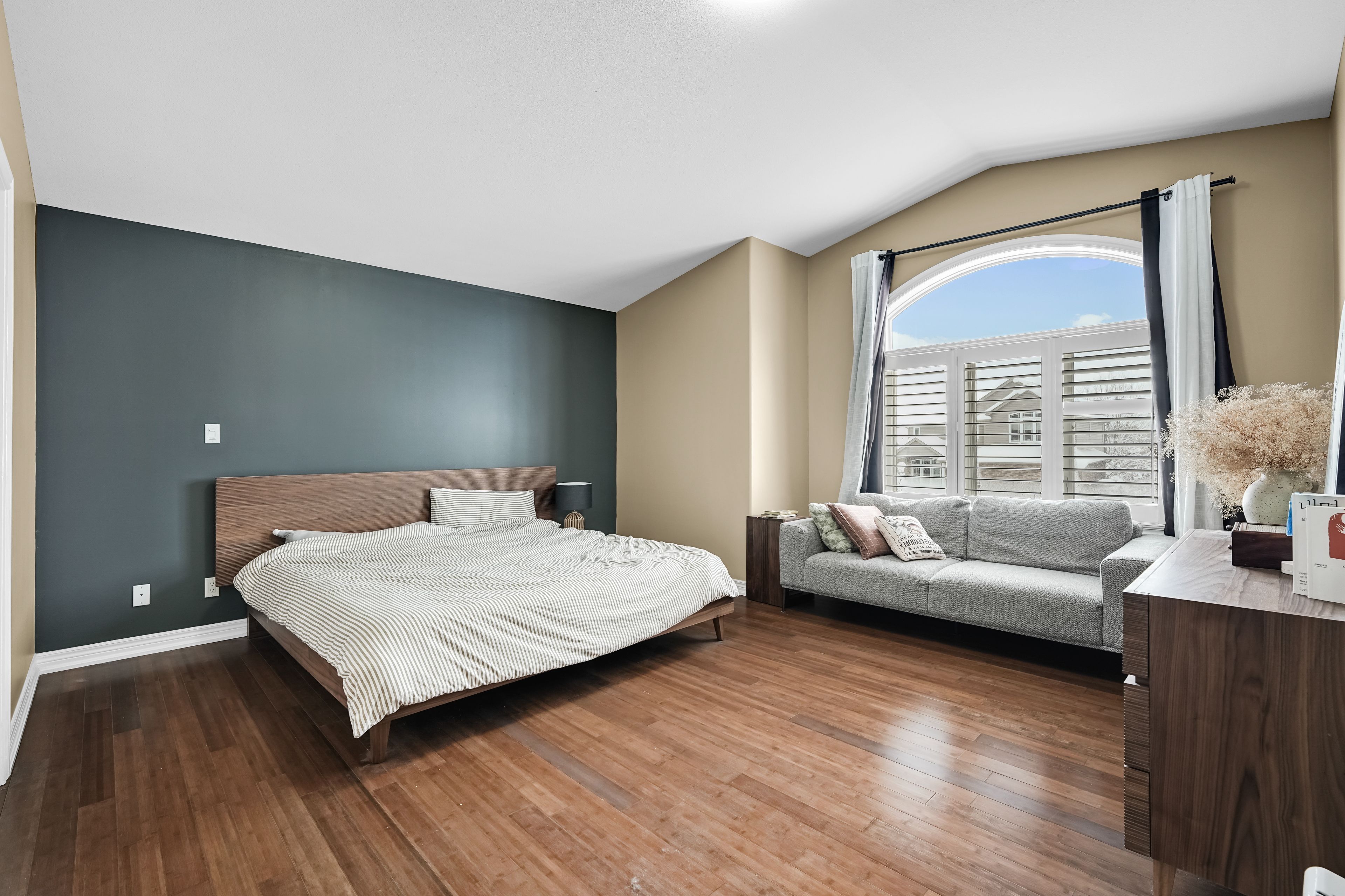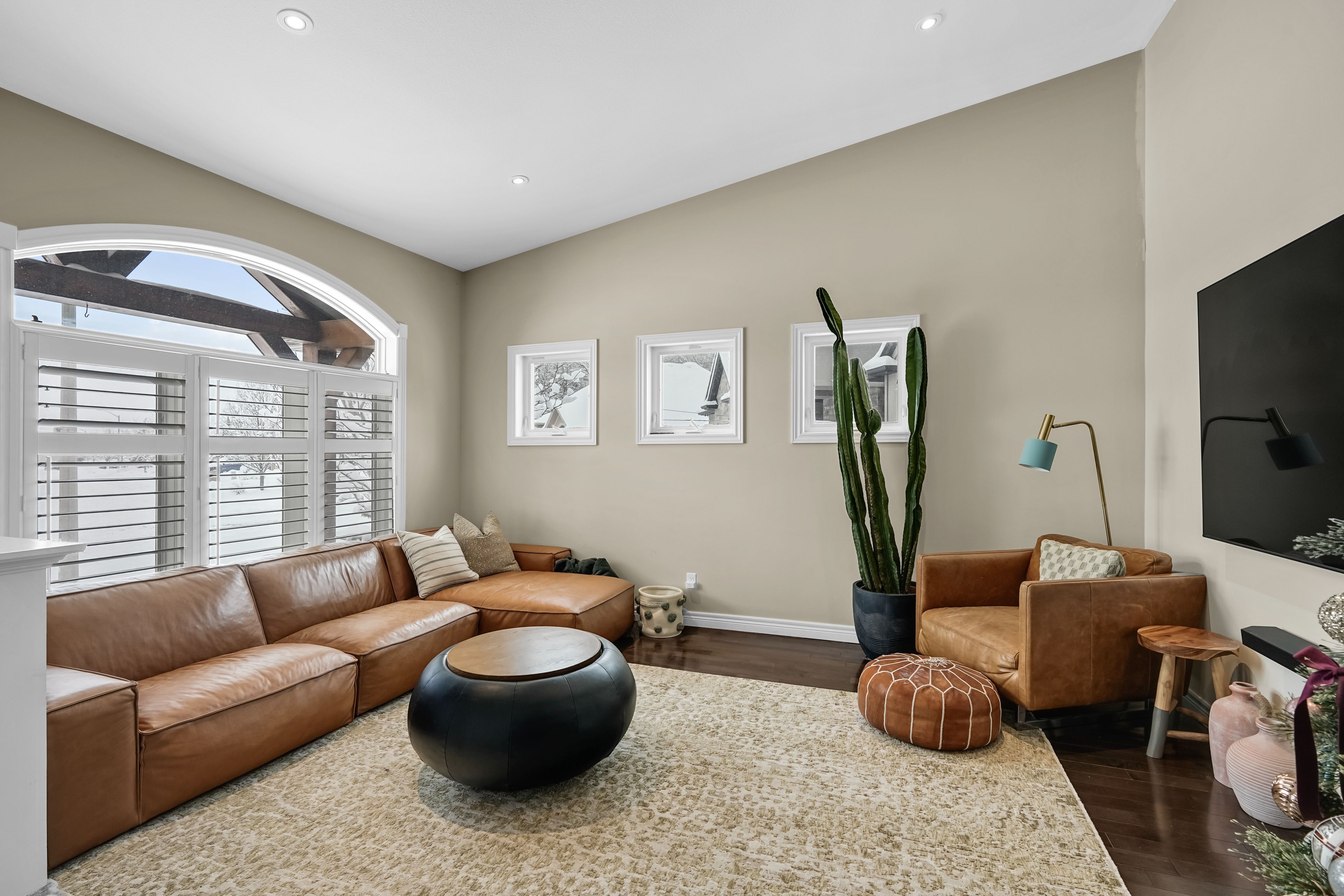 • Bright front living room overlooks a quiet court, perfect for relaxation.