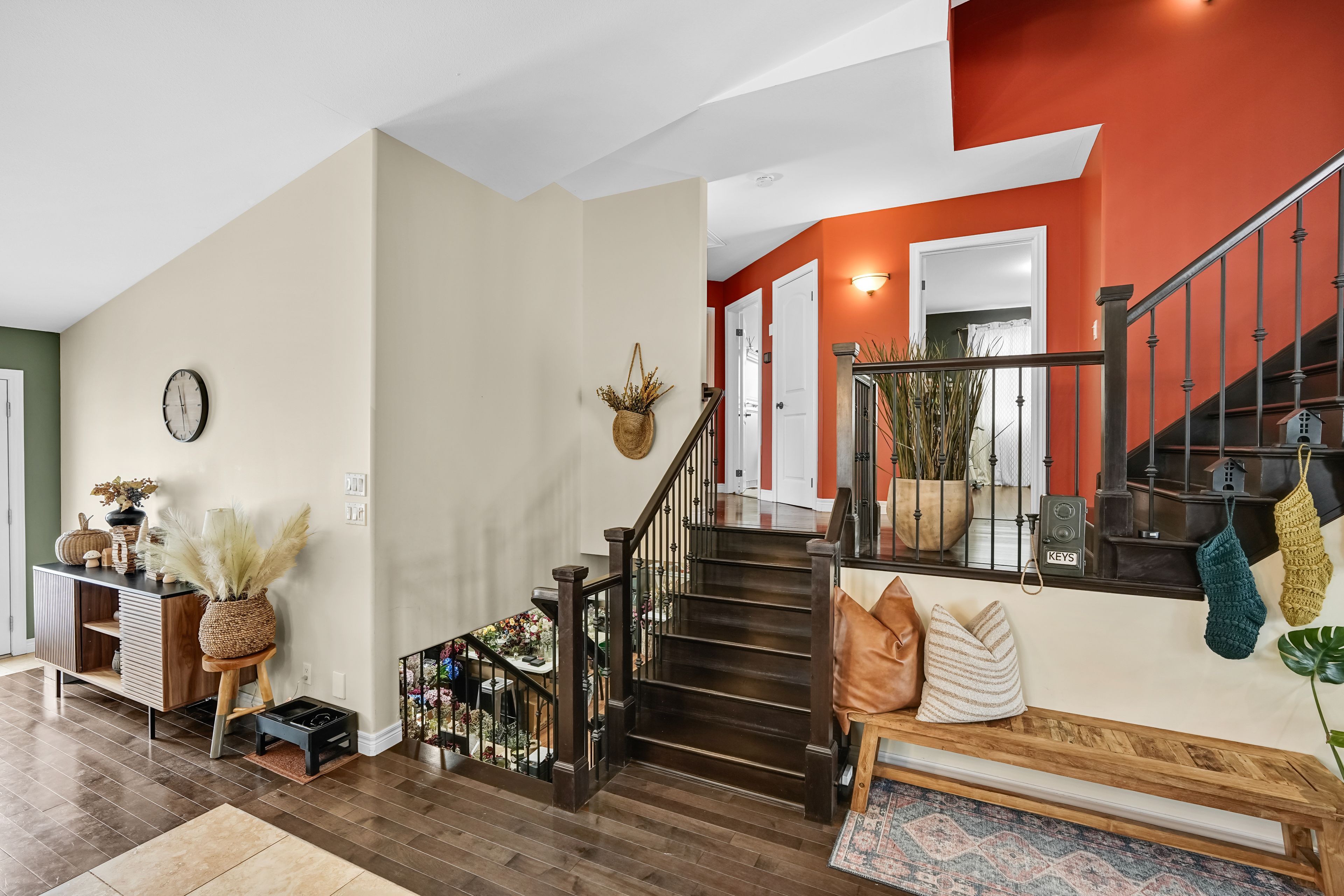 This stunning custom side-split in beautiful fernwood estates offers a layout that works perfectly for the whole family. The main floor features a bright front living room overlooking the quiet court. The incredible gourmet kitchen is truly a chef's dream, showcasing a massive custom center island with a built-in spice pullout, a retractable vented gas range, stainless steel refrigerator, two built-in ovens, under-cabinet lighting, quartz countertops, taps, and backsplash. Open to the dining area, it creates an ideal space for gathering with family and friends. Dark hardwood flooring continues upstairs to the second level, which includes three spacious bedrooms, a full bathroom, and lighted closets with organizers. The private third-level primary suite boasts cathedral ceilings, a fireplace, a walk-in closet, and an ensuite bathroom. The lower level offers a large family room with walk-out access, a powder room, and an office or bedroom complete with a wet bar. The lowest level of the home provides triple closet space, laundry facilities, and ample storage, making it suitable as an additional bedroom or family room. Fresh paint throughout the home adds beautiful contrast and character. The attractive exterior features a two-car garage, front porch, irrigation system, double-wide stamped concrete driveway, and two backyard access points-one from the kitchen and one from the family room-enhancing its excellent curb appeal. During the warmer months, perennial gardens in both the front and back yards add vibrant colour. Numerous updates have been completed, including the kitchen appliances, island, countertops, sink, furnace, central vacuum, sump pump, deck, and pergola-just to name a few.