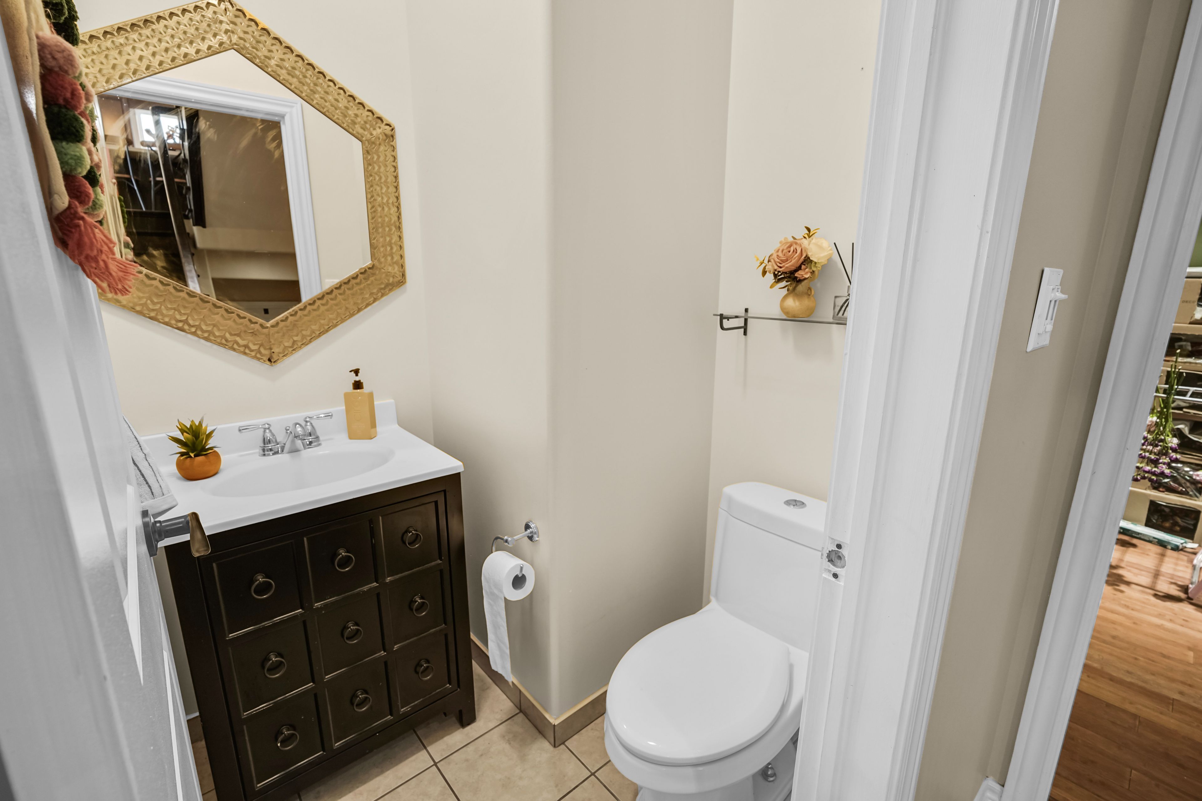 • Attractive exterior with a two-car garage, gardens, and ample outdoor access points.