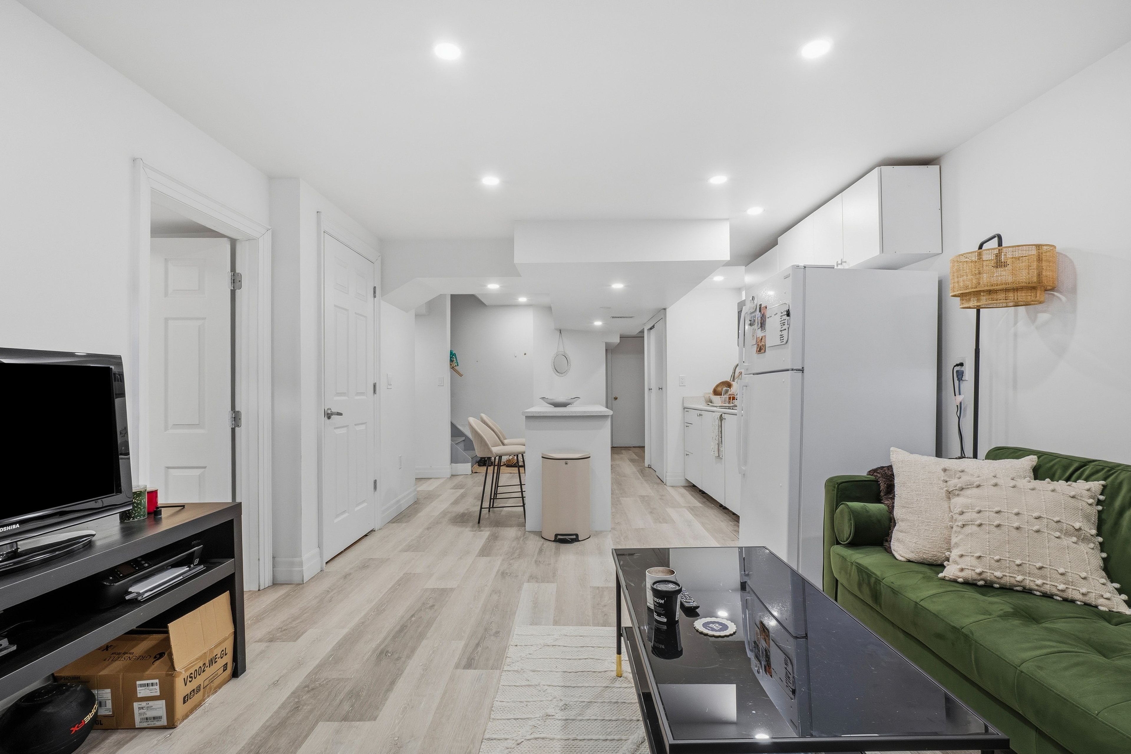 Modern style basement unit located in south newmarket, walk distance to yonge st, few min to shops and restaurants and amenities, separate washer and dryer with one parking spot on driveway