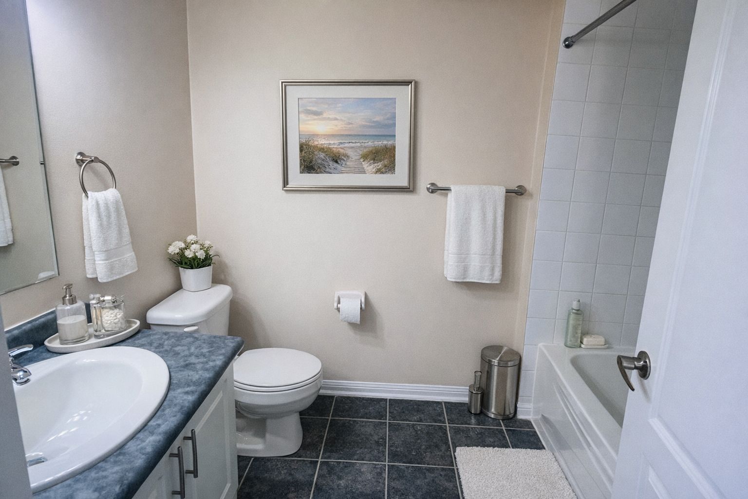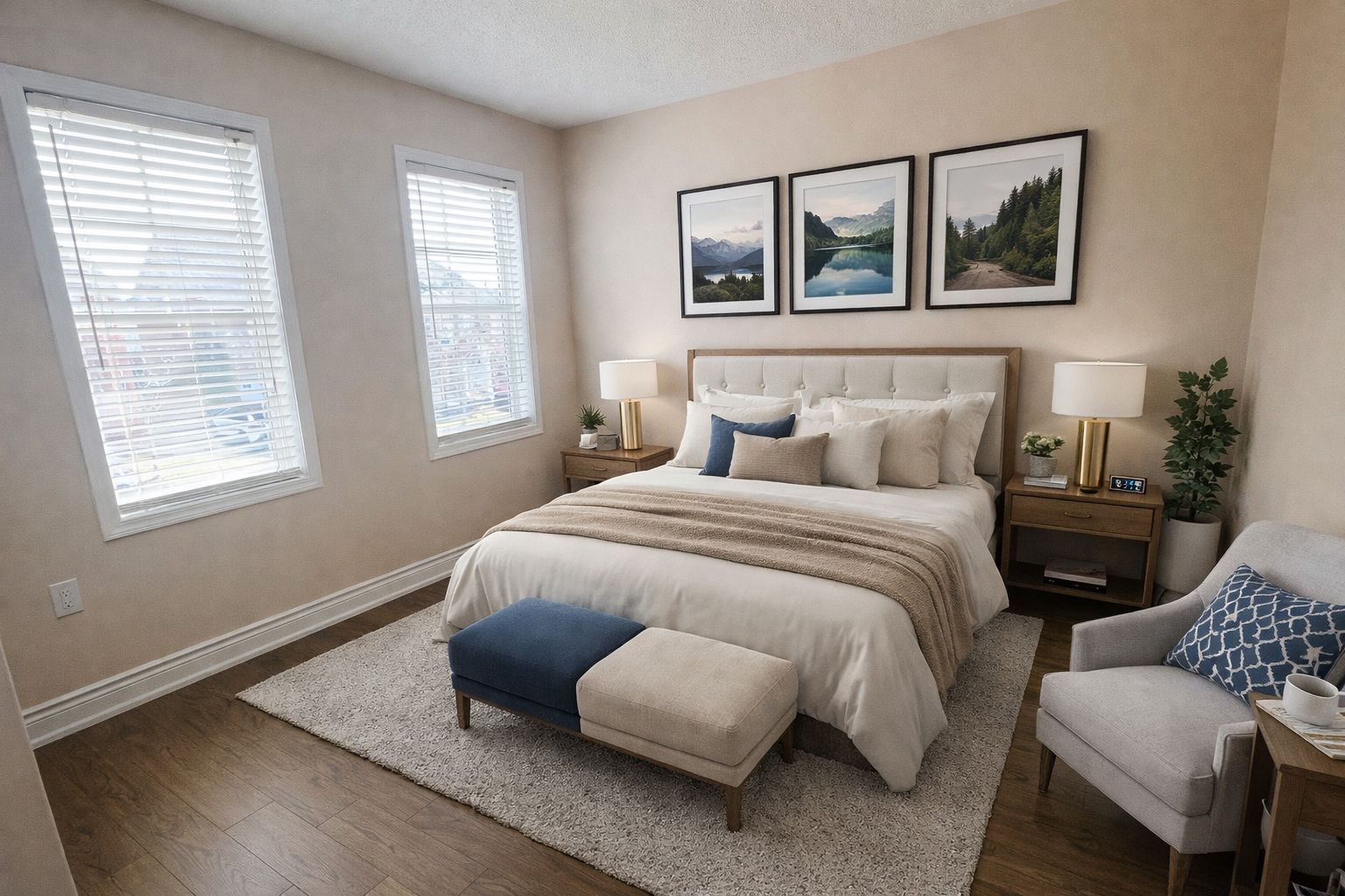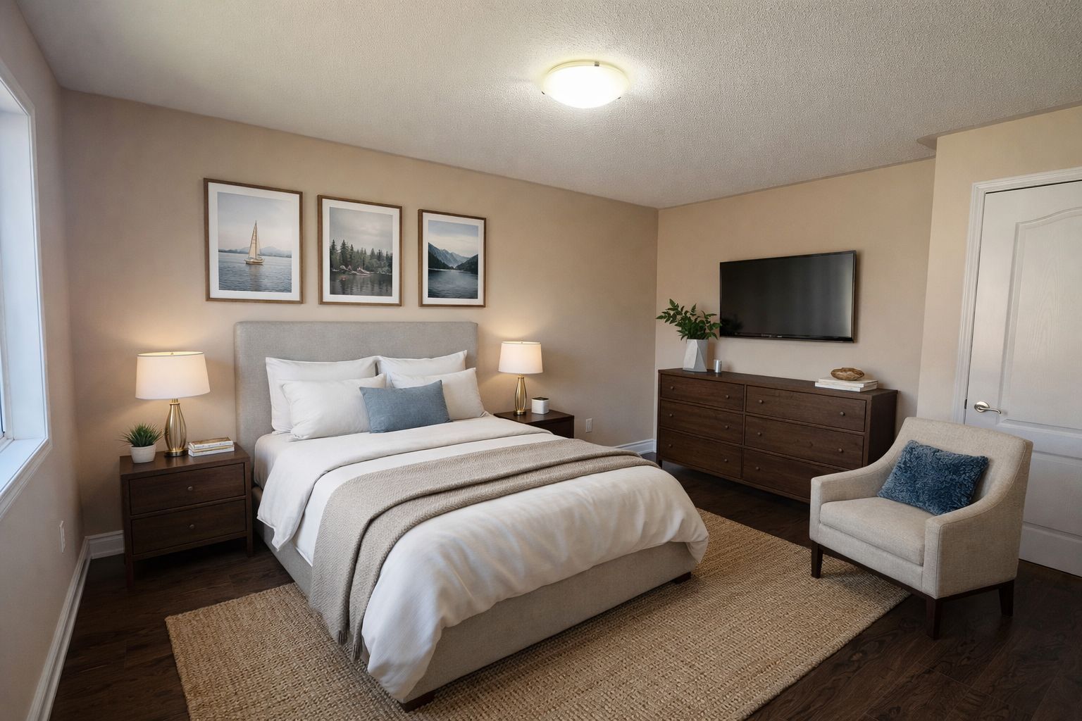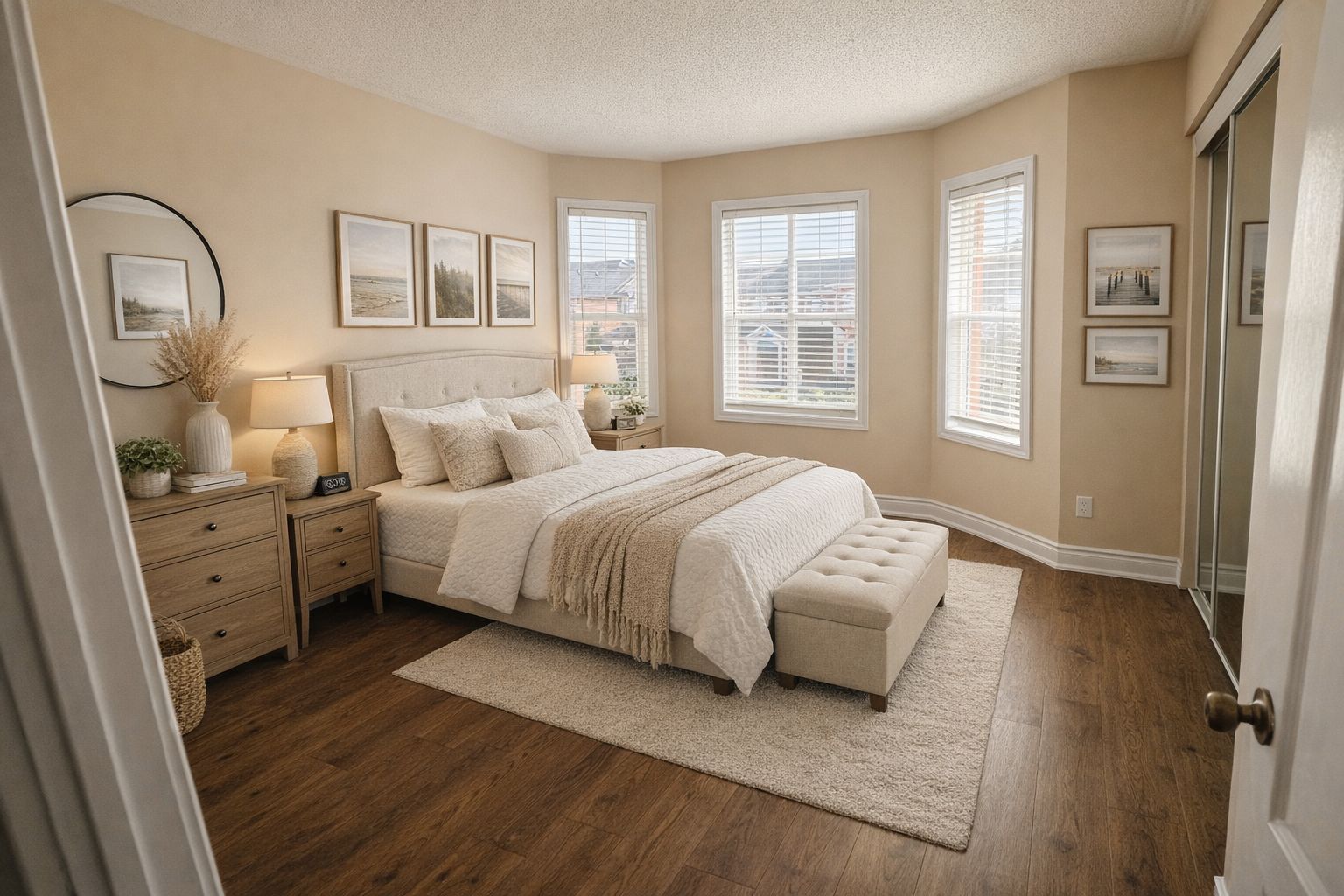 • Spacious primary bedroom with ensuite bathroom and walk-in closet.