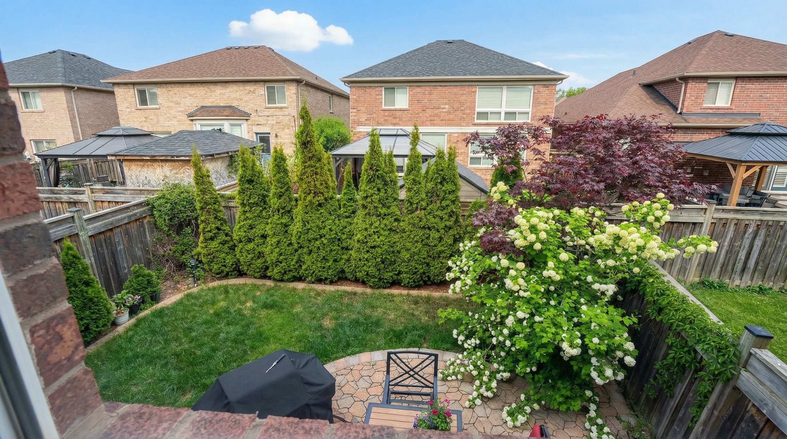 • Beautiful backyard with interlock patio and a variety of trees for privacy.