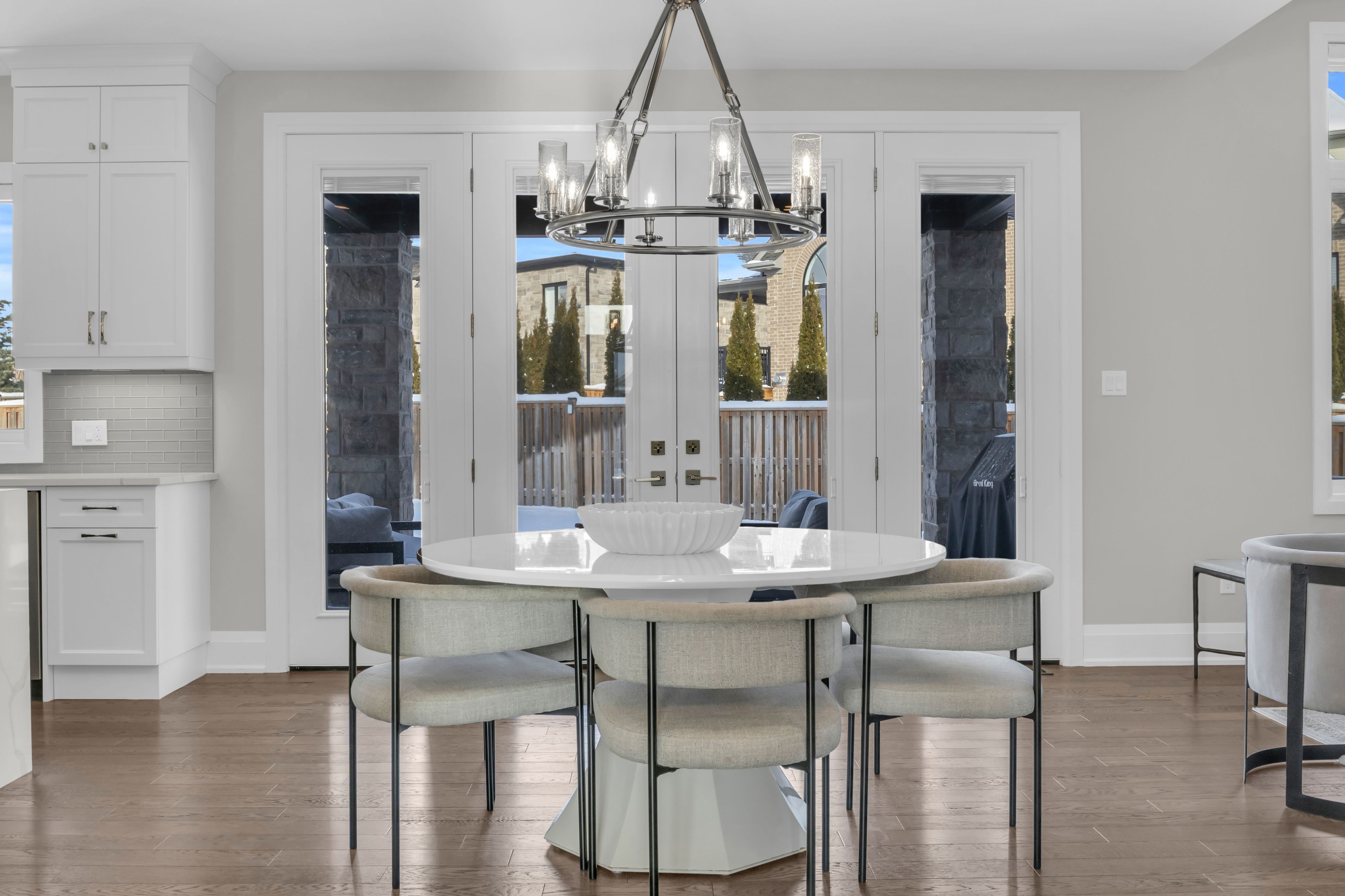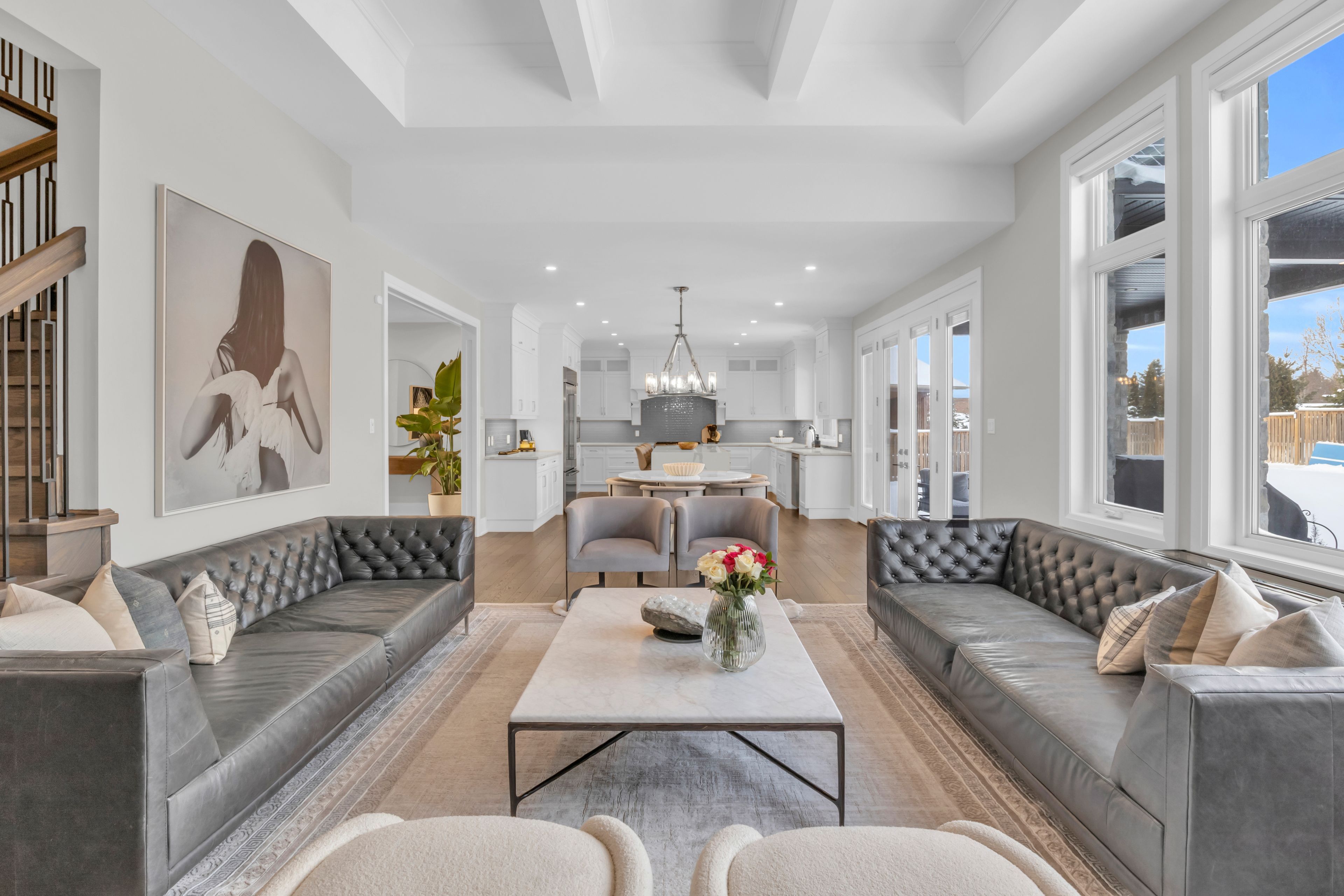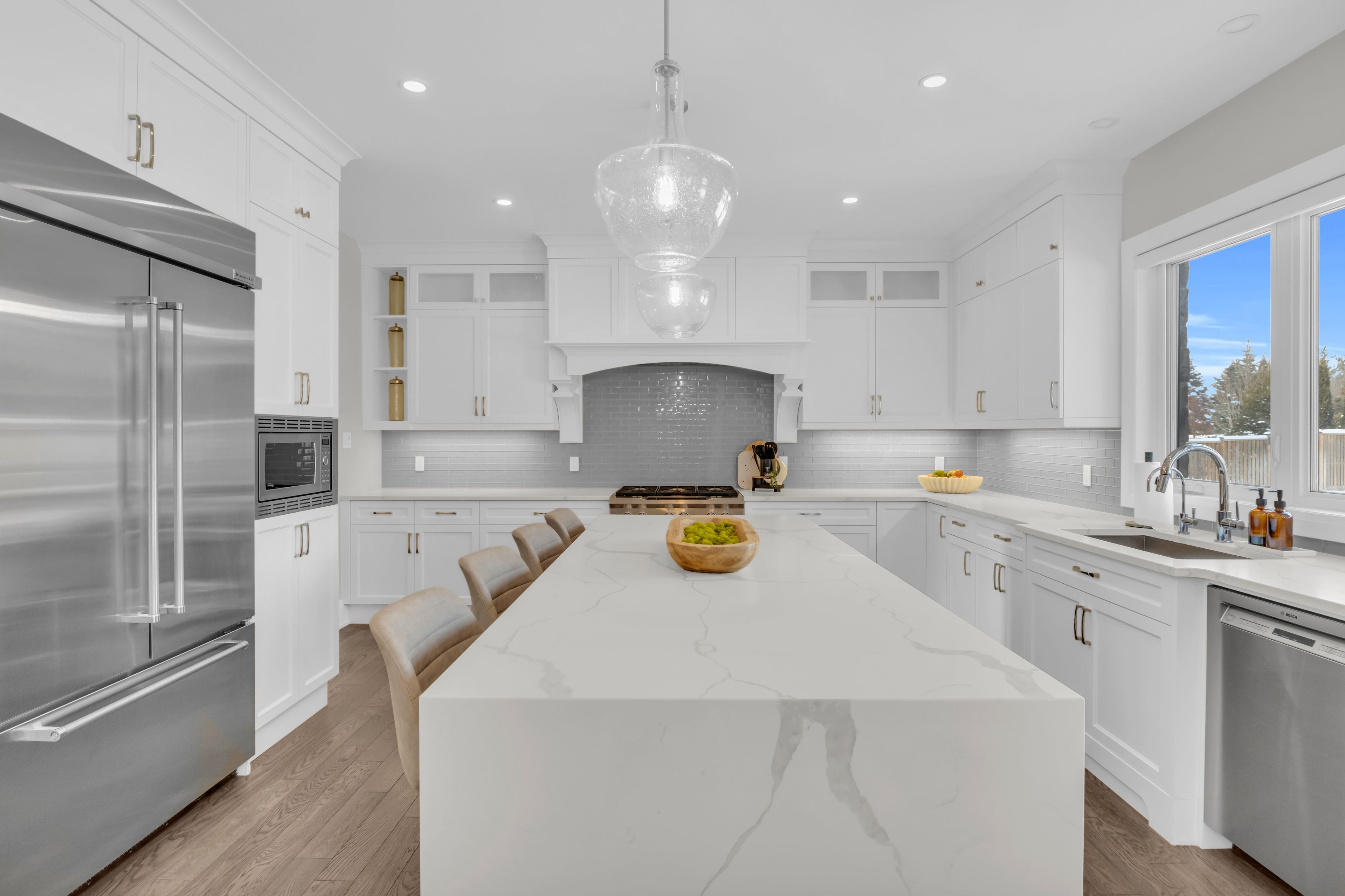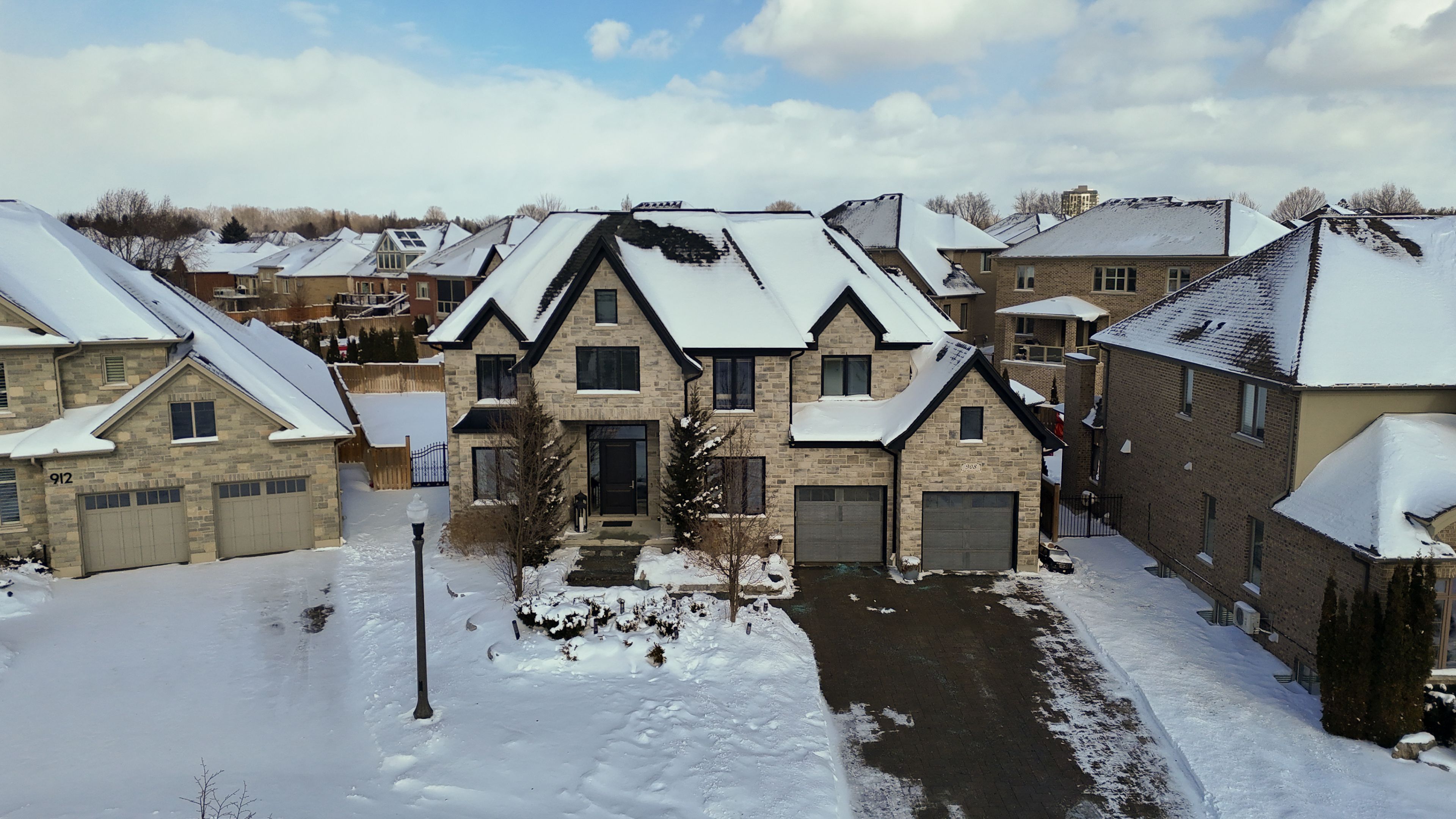 Over 5,700 sq ft of finished living space and located on a large 0. 25-acre lot in the sought-after deer ridge neighbourhood. Tucked away on a quiet court, this custom-built home offers a comfortable layout with carefully selected finishes throughout. The main entry opens into a bright two-storey foyer, with a formal dining room nearby that connects to the kitchen through a practical servery and pantry. The kitchen features white cabinetry, quartz countertops, a waterfall island, tiled backsplash, a built-in refrigerator, and a dual-fuel range with an oversized hood. The breakfast area includes french doors that open to a covered back porch, making it easy to enjoy the large outdoor space. The family room sits just off the kitchen and includes high coffered ceilings, a large picture window, and a gas fireplace with a floor-to-ceiling mantel. A powder room, mudroom with access to the triple car garage, and a spacious home office complete the main level. The upper floor offers four generously sized bedrooms. Two share a five-piece jack and jill bathroom, one includes its own ensuite and walk-in closet, and the primary bedroom features a large walk-in closet and an ensuite with a soaker tub and walk-in shower with rain head. Laundry is also conveniently located on the upper level, and all bathrooms are equipped with heated floors for added comfort. The basement benefits from very high ceilings and large above-grade windows filling the space with natural light. It is currently used as a recreation room, an additional bedroom, and a three-piece bathroom. Additional highlights include smart lighting throughout the home and automatic window coverings, offering added convenience and efficiency. Outside, the home is finished with a stone façade and includes an exterior air and weather barrier system, in-ground irrigation, a security system, and a water conditioning system. This is a great opportunity to settle into one of the most sought-after areas in kitchener.