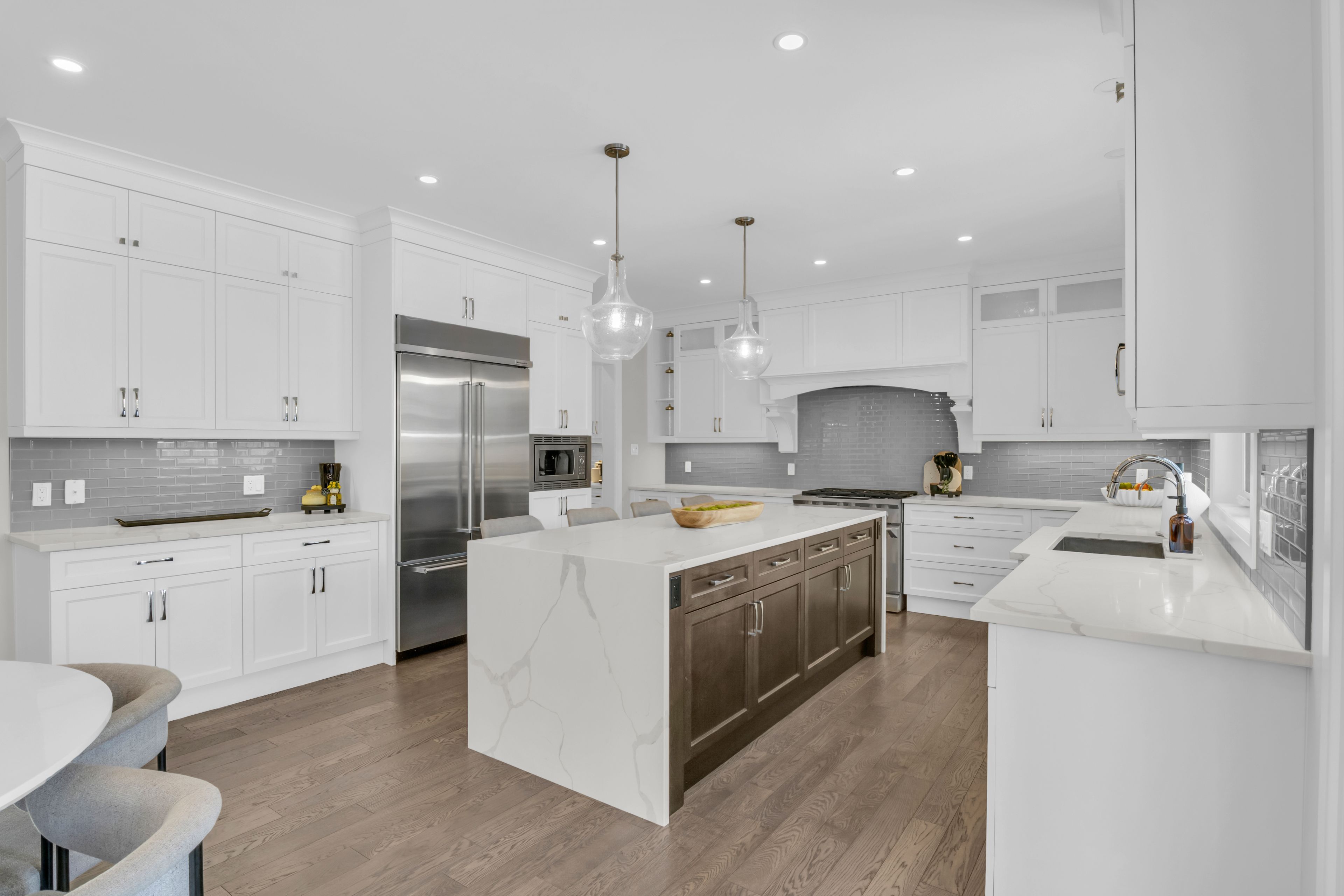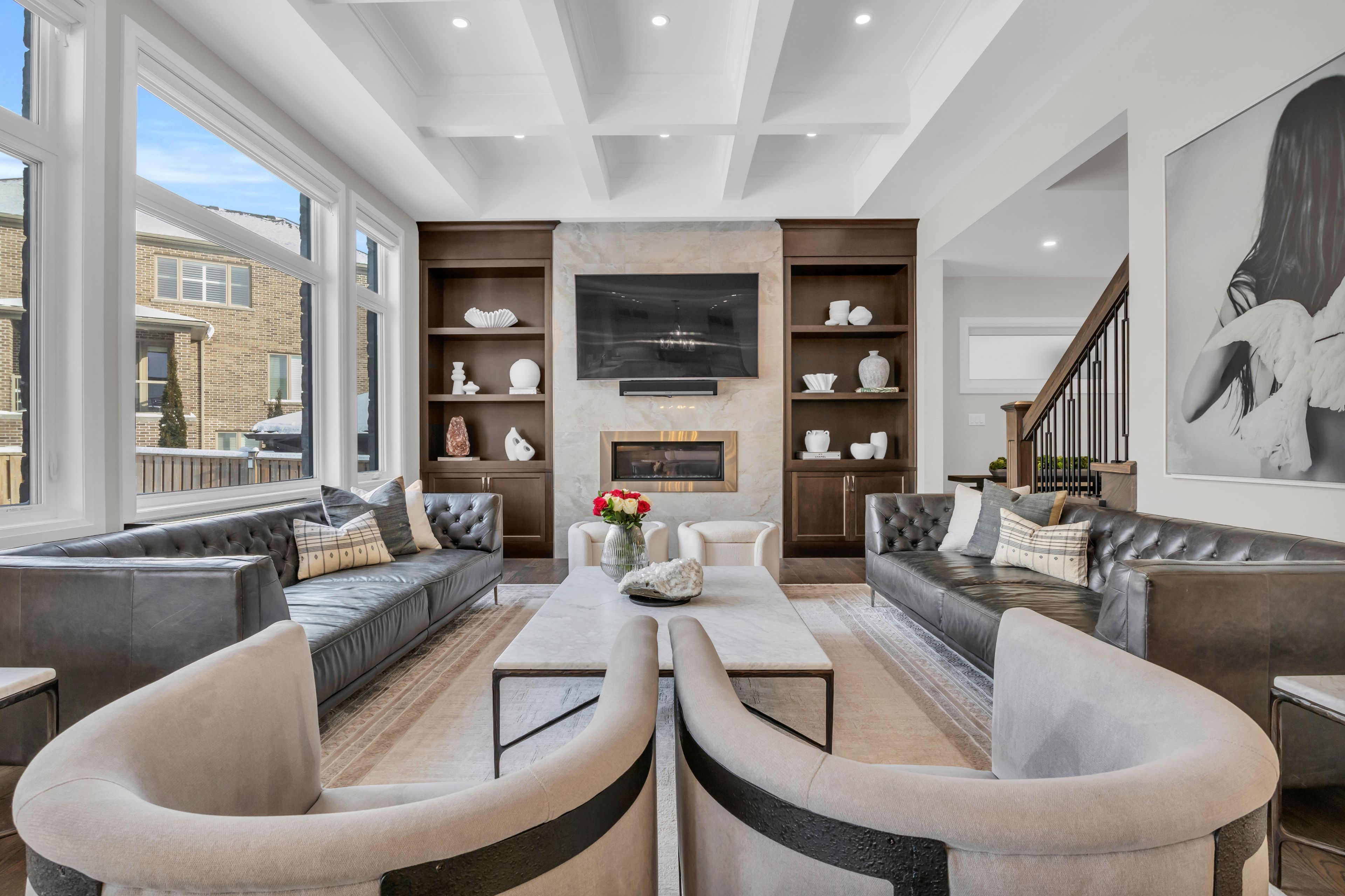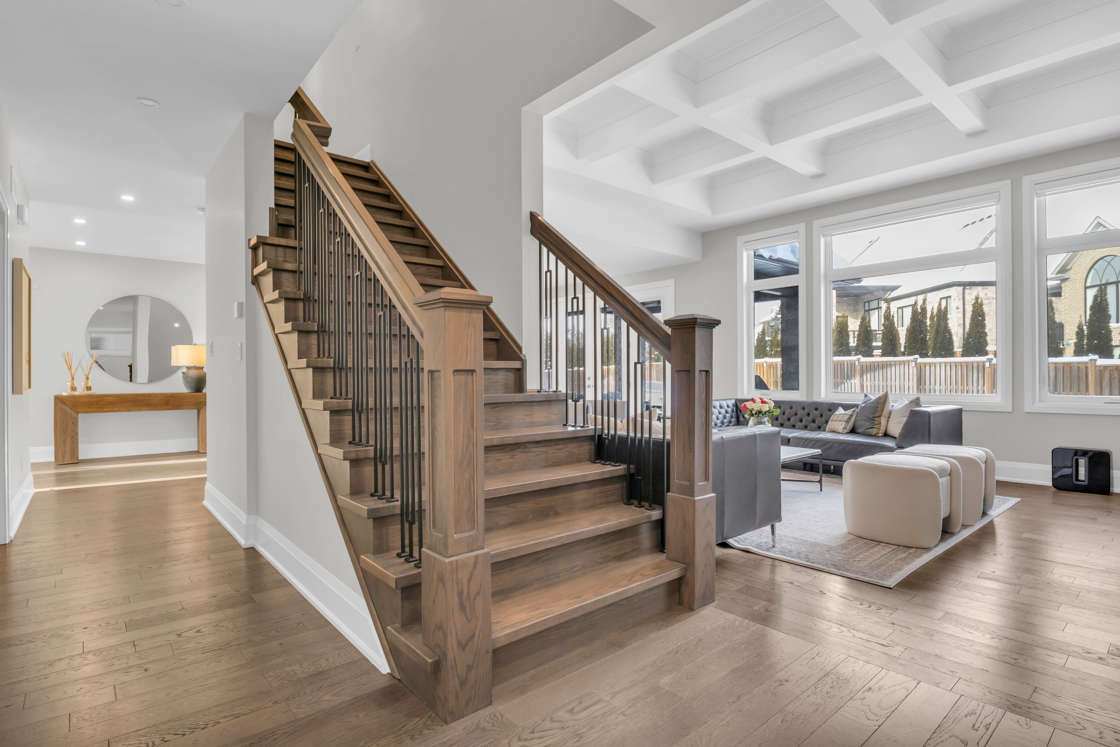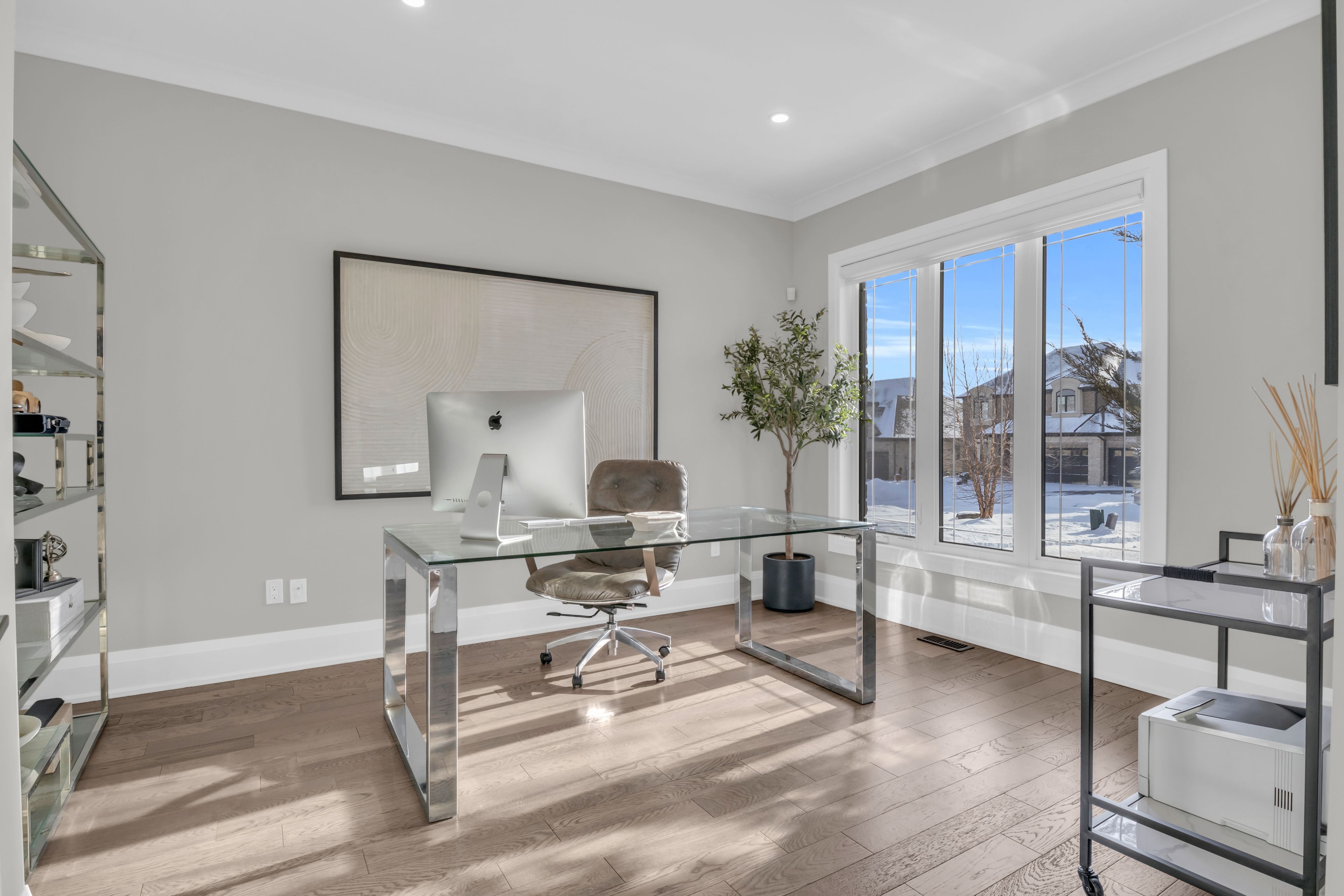 Over 5,700 sq ft of finished living space and located on a large 0. 25-acre lot in the sought-after deer ridge neighbourhood. Tucked away on a quiet court, this custom-built home offers a comfortable layout with carefully selected finishes throughout. The main entry opens into a bright two-storey foyer, with a formal dining room nearby that connects to the kitchen through a practical servery and pantry. The kitchen features white cabinetry, quartz countertops, a waterfall island, tiled backsplash, a built-in refrigerator, and a dual-fuel range with an oversized hood. The breakfast area includes french doors that open to a covered back porch, making it easy to enjoy the large outdoor space. The family room sits just off the kitchen and includes high coffered ceilings, a large picture window, and a gas fireplace with a floor-to-ceiling mantel. A powder room, mudroom with access to the triple car garage, and a spacious home office complete the main level. The upper floor offers four generously sized bedrooms. Two share a five-piece jack and jill bathroom, one includes its own ensuite and walk-in closet, and the primary bedroom features a large walk-in closet and an ensuite with a soaker tub and walk-in shower with rain head. Laundry is also conveniently located on the upper level, and all bathrooms are equipped with heated floors for added comfort. The basement benefits from very high ceilings and large above-grade windows filling the space with natural light. It is currently used as a recreation room, an additional bedroom, and a three-piece bathroom. Additional highlights include smart lighting throughout the home and automatic window coverings, offering added convenience and efficiency. Outside, the home is finished with a stone façade and includes an exterior air and weather barrier system, in-ground irrigation, a security system, and a water conditioning system. This is a great opportunity to settle into one of the most sought-after areas in kitchener.
