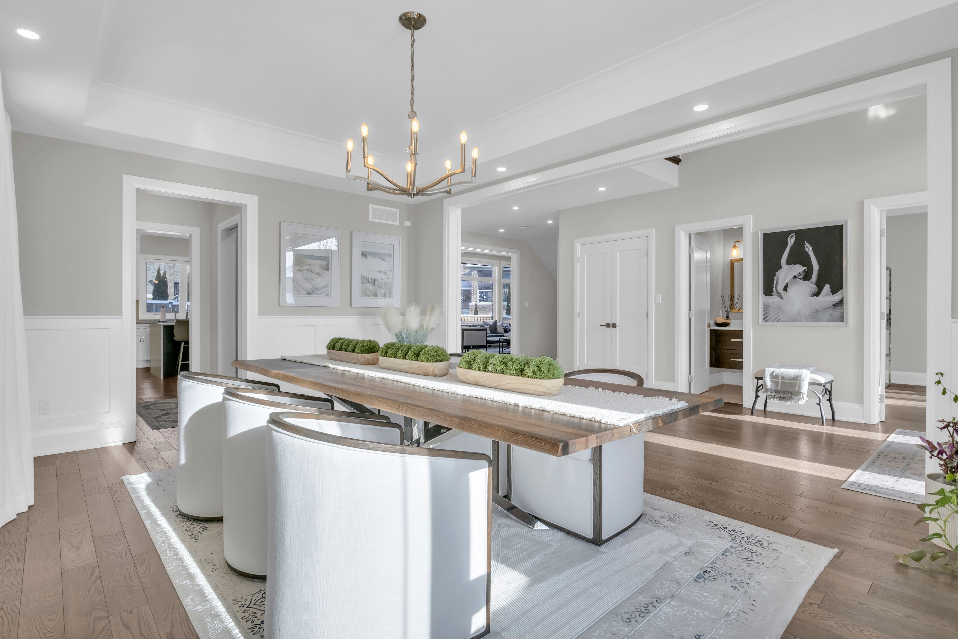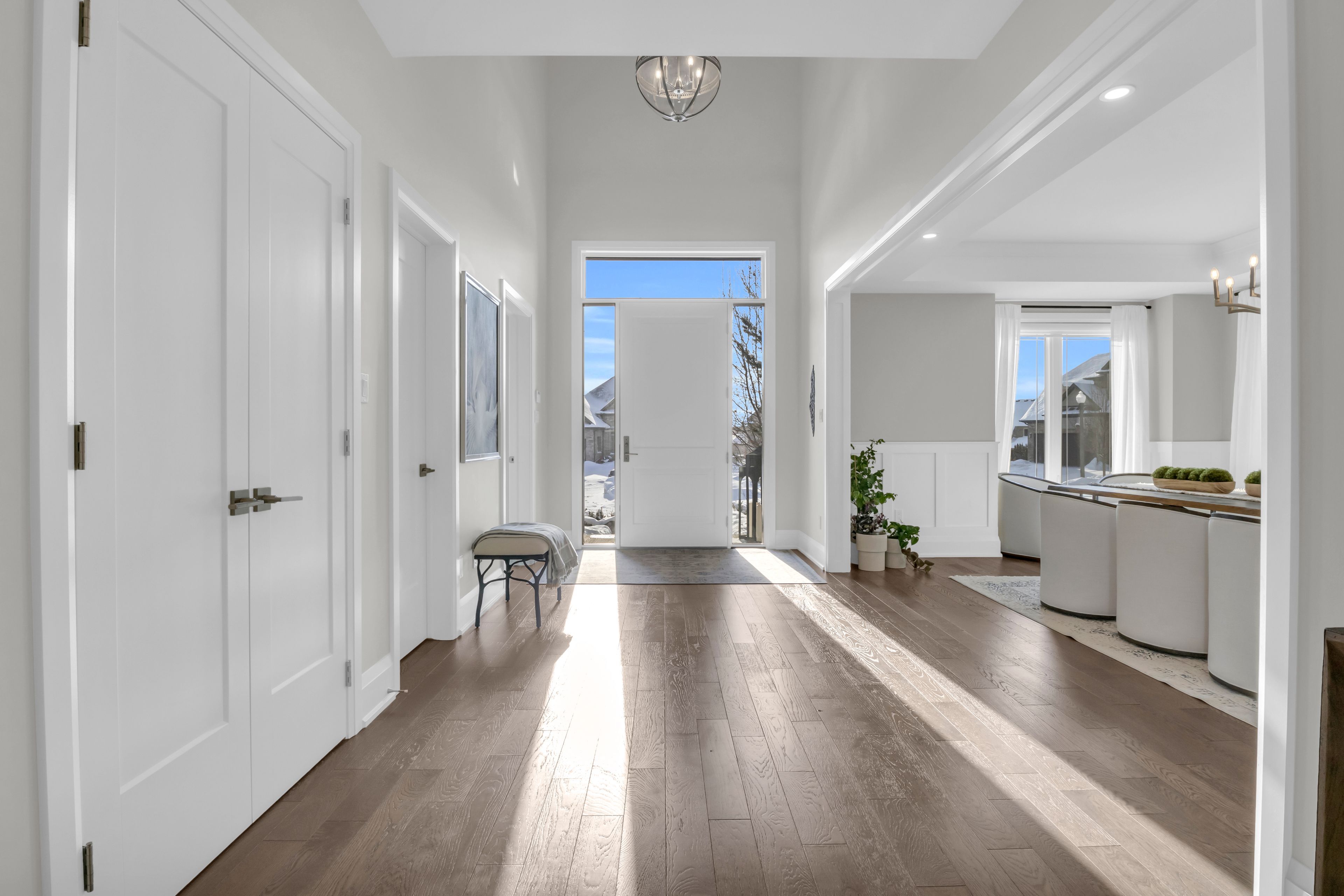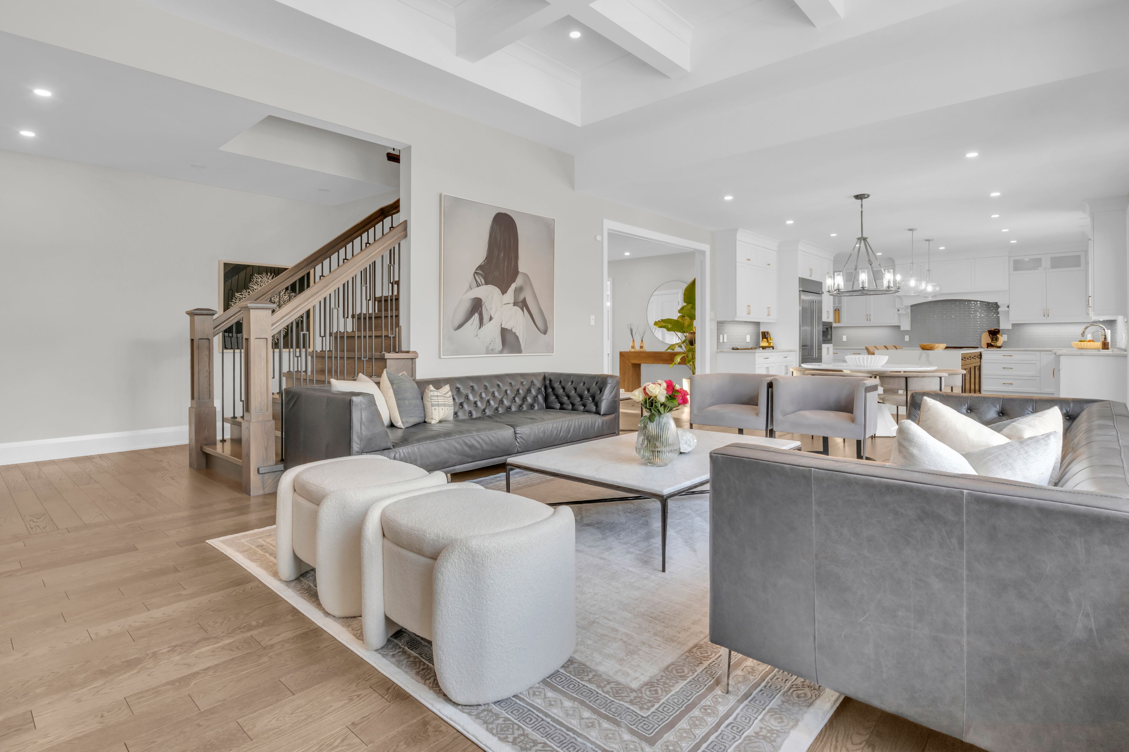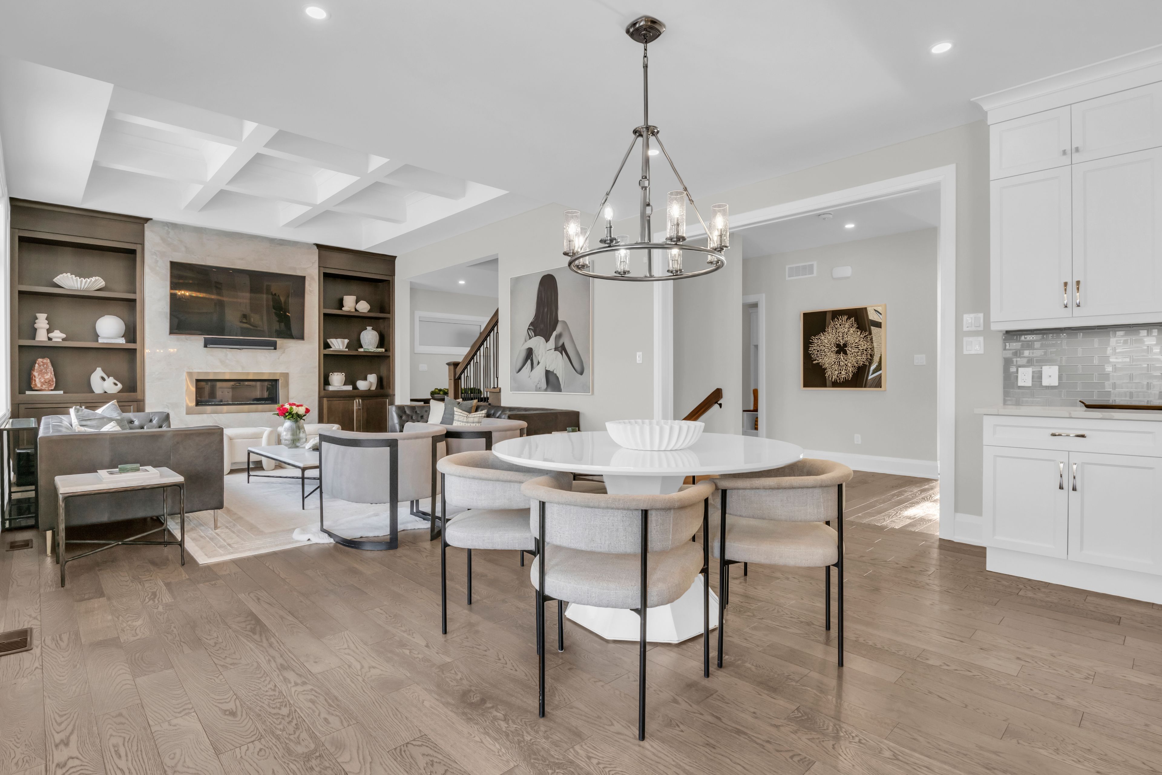 Over 5,700 sq ft of finished living space and located on a large 0. 25-acre lot in the sought-after deer ridge neighbourhood. Tucked away on a quiet court, this custom-built home offers a comfortable layout with carefully selected finishes throughout. The main entry opens into a bright two-storey foyer, with a formal dining room nearby that connects to the kitchen through a practical servery and pantry. The kitchen features white cabinetry, quartz countertops, a waterfall island, tiled backsplash, a built-in refrigerator, and a dual-fuel range with an oversized hood. The breakfast area includes french doors that open to a covered back porch, making it easy to enjoy the large outdoor space. The family room sits just off the kitchen and includes high coffered ceilings, a large picture window, and a gas fireplace with a floor-to-ceiling mantel. A powder room, mudroom with access to the triple car garage, and a spacious home office complete the main level. The upper floor offers four generously sized bedrooms. Two share a five-piece jack and jill bathroom, one includes its own ensuite and walk-in closet, and the primary bedroom features a large walk-in closet and an ensuite with a soaker tub and walk-in shower with rain head. Laundry is also conveniently located on the upper level, and all bathrooms are equipped with heated floors for added comfort. The basement benefits from very high ceilings and large above-grade windows filling the space with natural light. It is currently used as a recreation room, an additional bedroom, and a three-piece bathroom. Additional highlights include smart lighting throughout the home and automatic window coverings, offering added convenience and efficiency. Outside, the home is finished with a stone façade and includes an exterior air and weather barrier system, in-ground irrigation, a security system, and a water conditioning system. This is a great opportunity to settle into one of the most sought-after areas in kitchener.