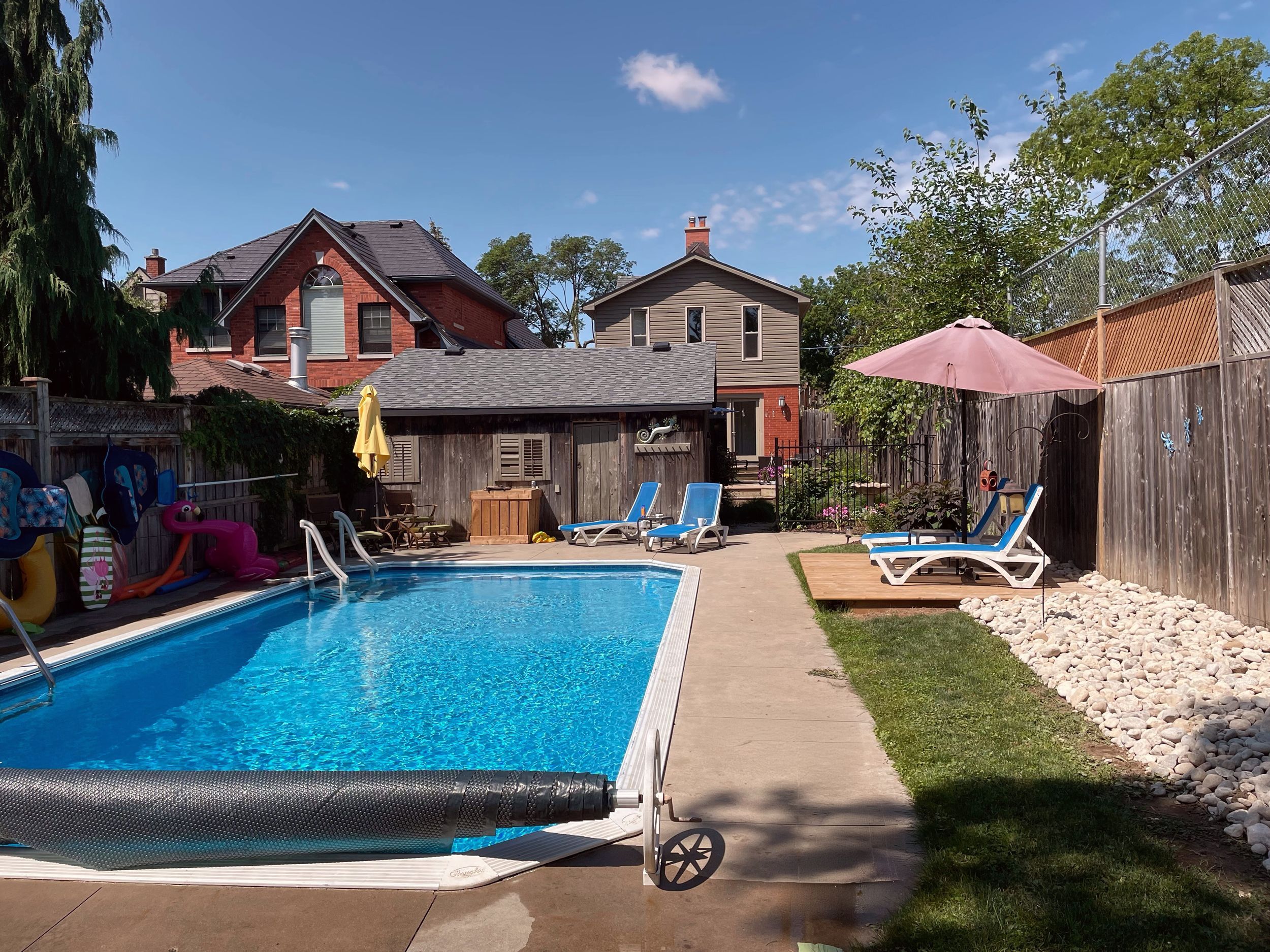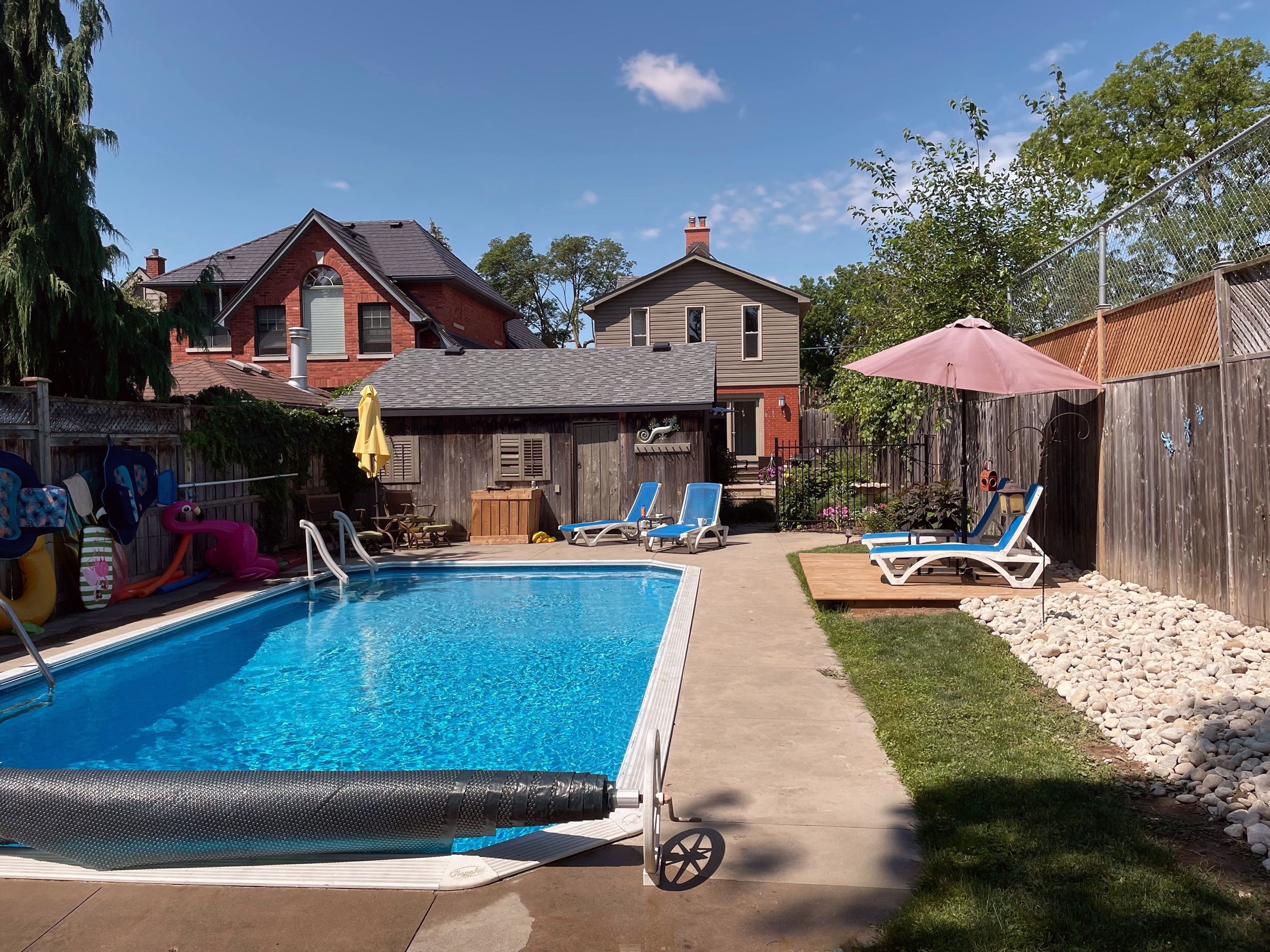Set on a deep, tree-lined lot in the heart of old north, this classic, red-brick century home blends enduring character with thoughtful updates and a layout that works for everyday living. A timber pergola arbour frames the front entrance with architectural detail and creates intriguing curb appeal. Stepping into the interior foyer you take in the detail and welcoming ambiance within. The bright, well-proportioned spaces, hardwood floors, crown moulding, and original features throughout feel nurturing & inviting. The main floor includes a gracious living and dining area anchored by a lovely gas fireplace, an updated white kitchen with quartz counters, gas range, excellent storage, and a bistro eating area plus a media lounge addition offering a comfortable, flexible space for relaxed evenings and everyday use, with recessed lighting and walkout to the yard. A main-floor powder room & built-in bar area w/ wine fridge add convenience and entertaining appeal. Upstairs, three bedrooms are served by a beautifully updated full bath featuring a glass-enclosed shower and freestanding tub beneath a skylight. The primary suite offers a romantic fireplace, double walk-in closets w/ built-ins, an adjacent dressing room/study, and generous proportions, while additional bedrooms provide flexibility for family, guests, or home office use. The lower level offers laundry, storage, and future finishing potential. The private yard truly comes to life, featuring an inground pool, mature landscaping, multiple seating areas, and a large deck ideal for relaxed afternoons and evening gatherings under string lights. A detached double garage and private drive complete the package. Ideally located close to downtown, western university, university hospital. Catchment zone for st. George's public & central secondary schools. Siding along st. Michaels catholic elementary- playgrounds & parks are close at hand. Enjoy old north living in a home filled with character & comfort. Pool filter 2024