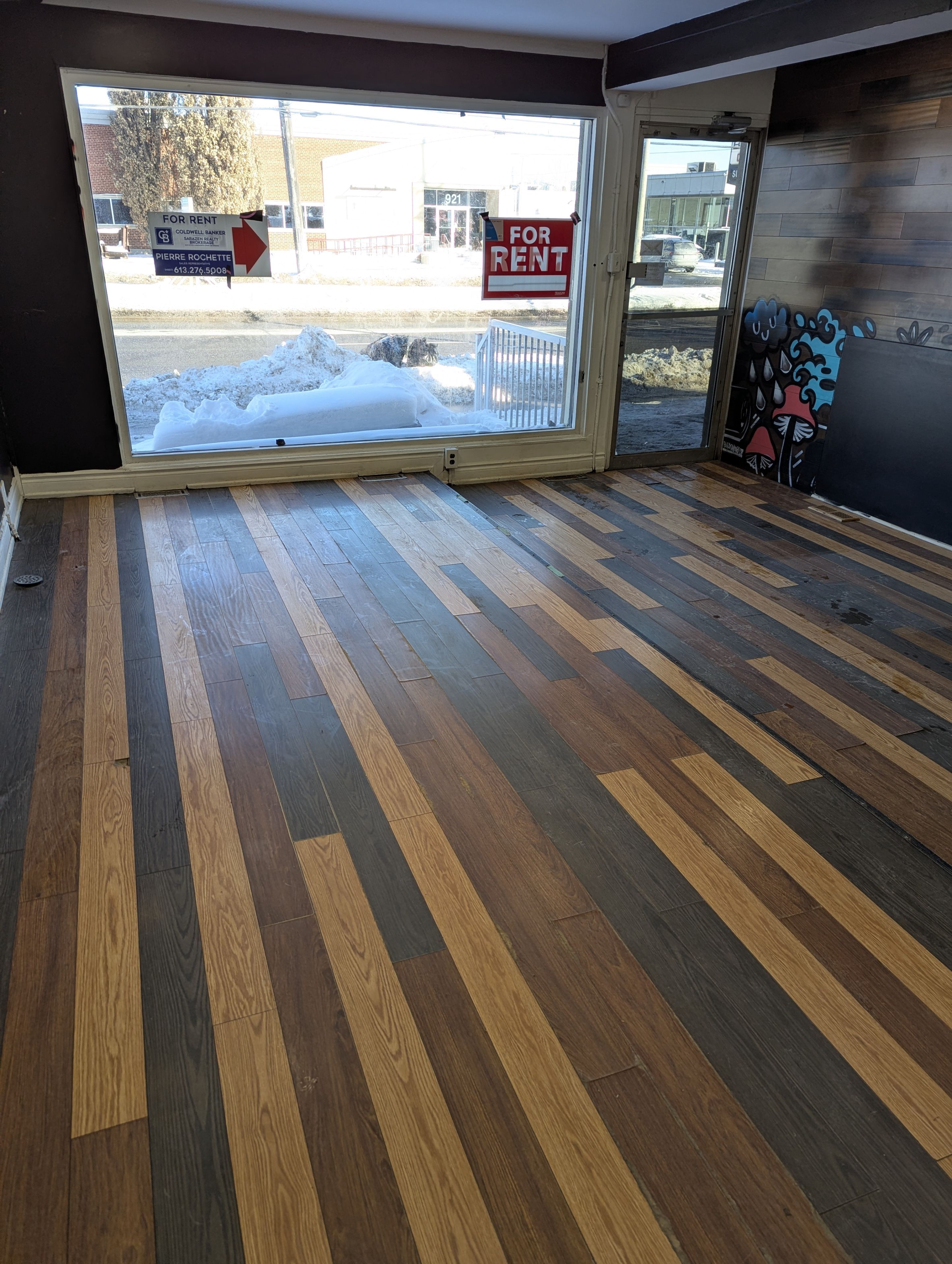 Ground floor area is appx 500 sq. Ft. And usable basement appx 500 sq. Ft... Was a barber shop at the front and beauty salon at the back.. And basement was used as a recording studio for over 15 years . Great parking at the rear .. Busy trafficked road gives you great exposure.. Thousands of cars daily..