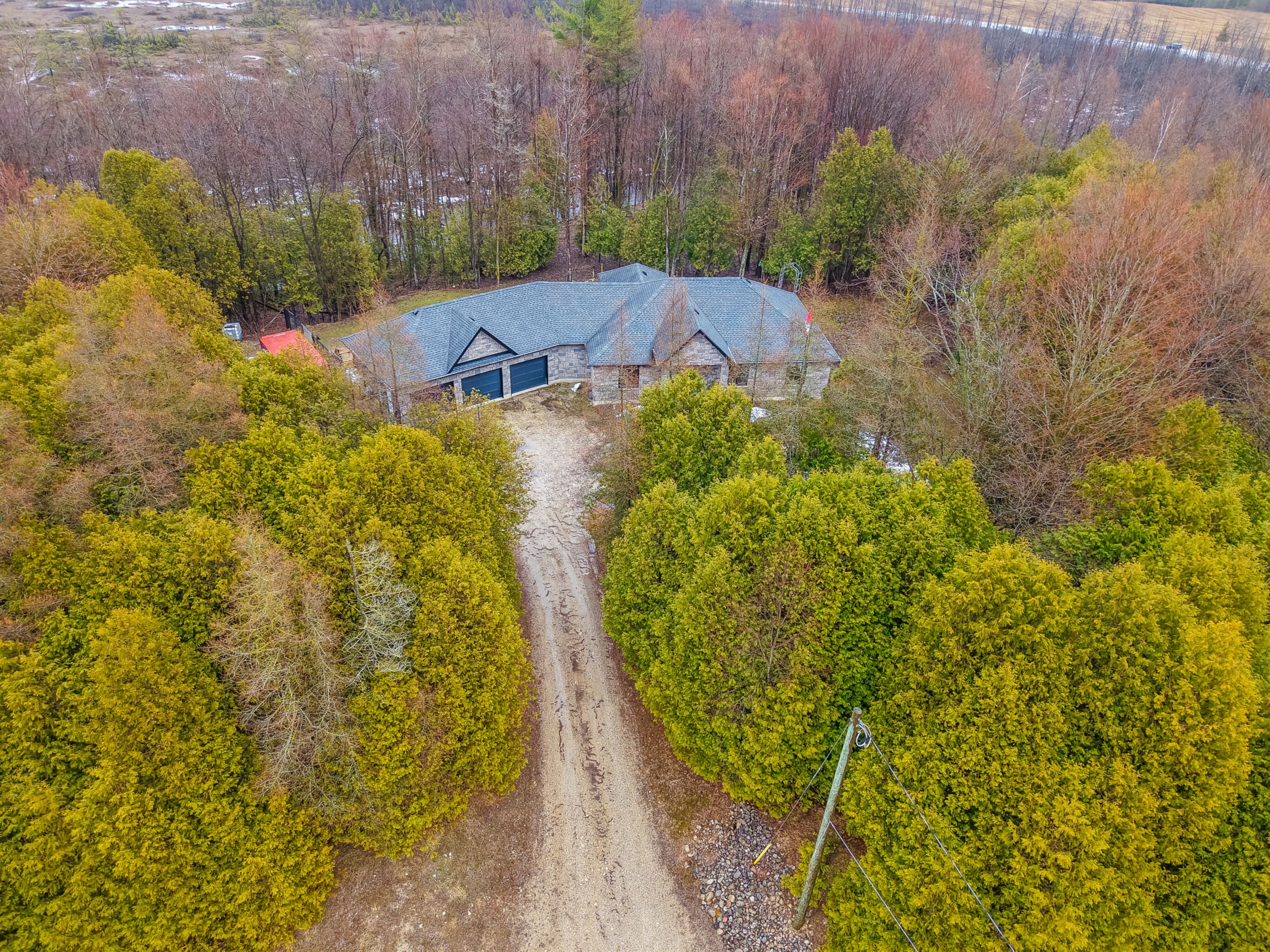 Nestled on a scenic 21+ acre, elevated lot overlooking driftwood beach road, this stunning 2014 built bungalow offers the perfect blend of modern comfort and serene waterfront living. With 1,717 sq ft of thoughtfully designed space, this stone and vinyl home is surrounded by nature and enhanced by direct access to a portion of picturesque blind lake, creating a private retreat you'll never want to leave. Step inside to a bright, open-concept layout ideal for both everyday living and entertaining. The spacious main floor features three generously sized bedrooms, including a primary suite complete with a walk-in closet and private en-suite. Large windows invite in natural light while showcasing tranquil views of the surrounding landscape. The basement offers endless potential, ready for your custom finishing to expand living space, add a recreation area, or create the ultimate guest suite. Outdoors, a large, uniquely designed patio provides the perfect setting to relax, host, and take in the peaceful natural surroundings. The expansive property offers privacy, mature greenery, and the rare bonus of partial ownership of blind lake, ideal for enjoying waterfront activities, wildlife, and year-round scenic beauty. Car enthusiasts and hobbyists will appreciate the impressive attached 3-bay garage (22 ft x 38 ft), offering ample space for vehicles, storage, and workspace. Ideally situated for convenience, the property is only a short drive to clifford, approximately 20 minutes from hanover and walkerton, about 24 minutes to listowel, and roughly an hour from both kitchener and owen sound. This is more than a home, it's a lifestyle. Experience the best of lakefront living with unmatched privacy, natural beauty, and modern convenience all in one exceptional property.