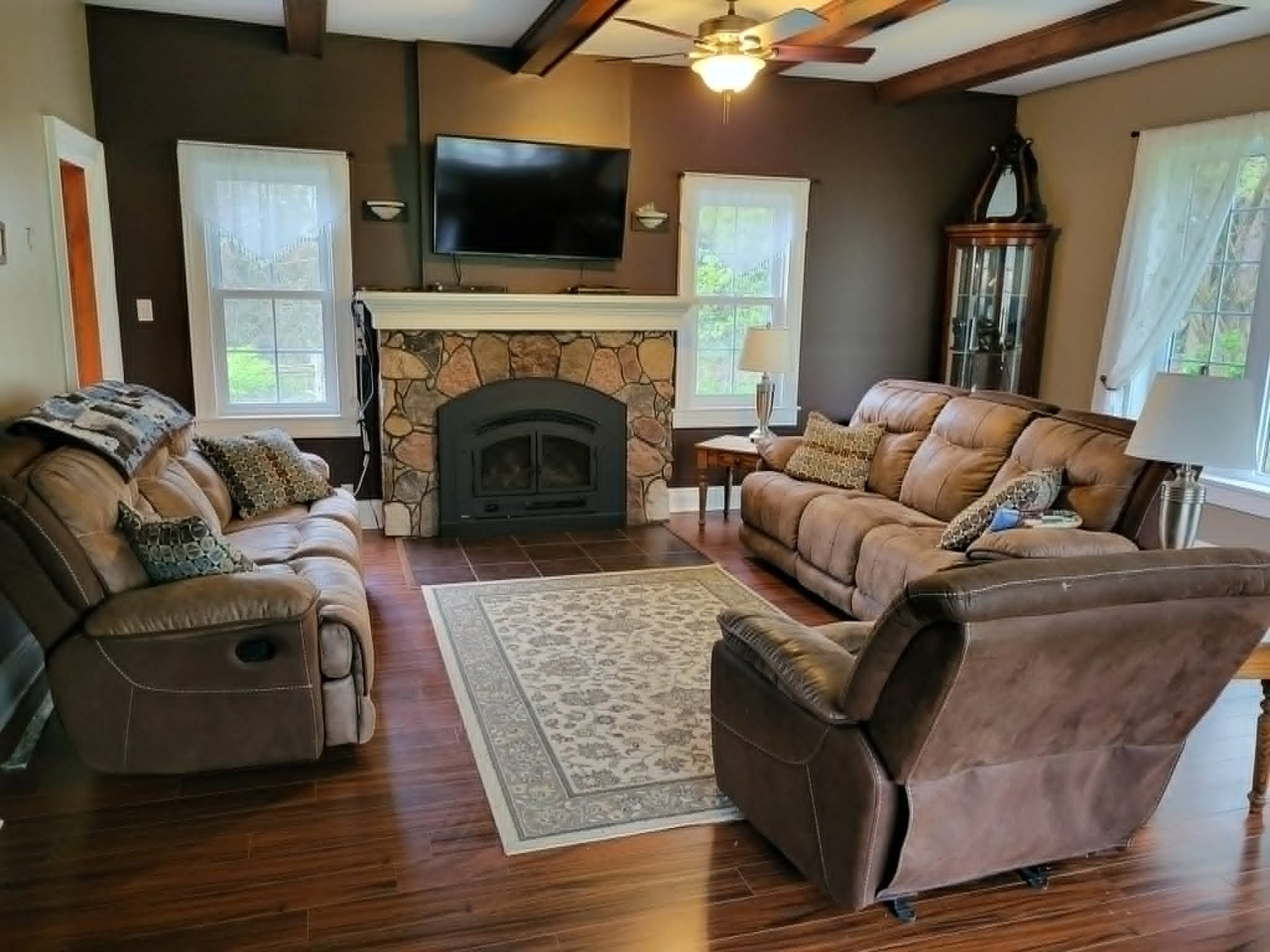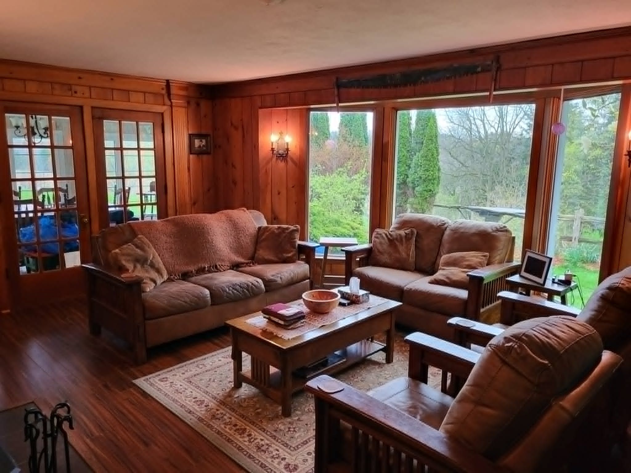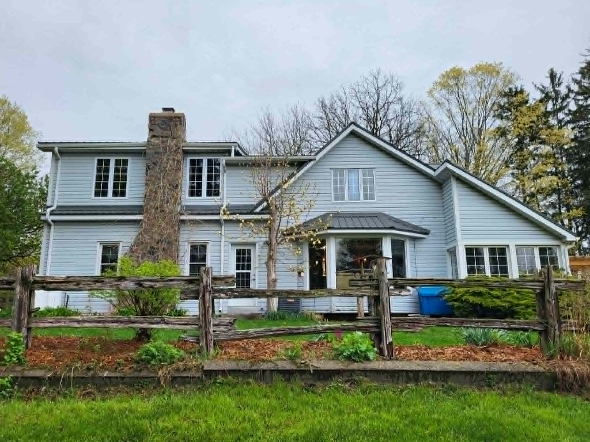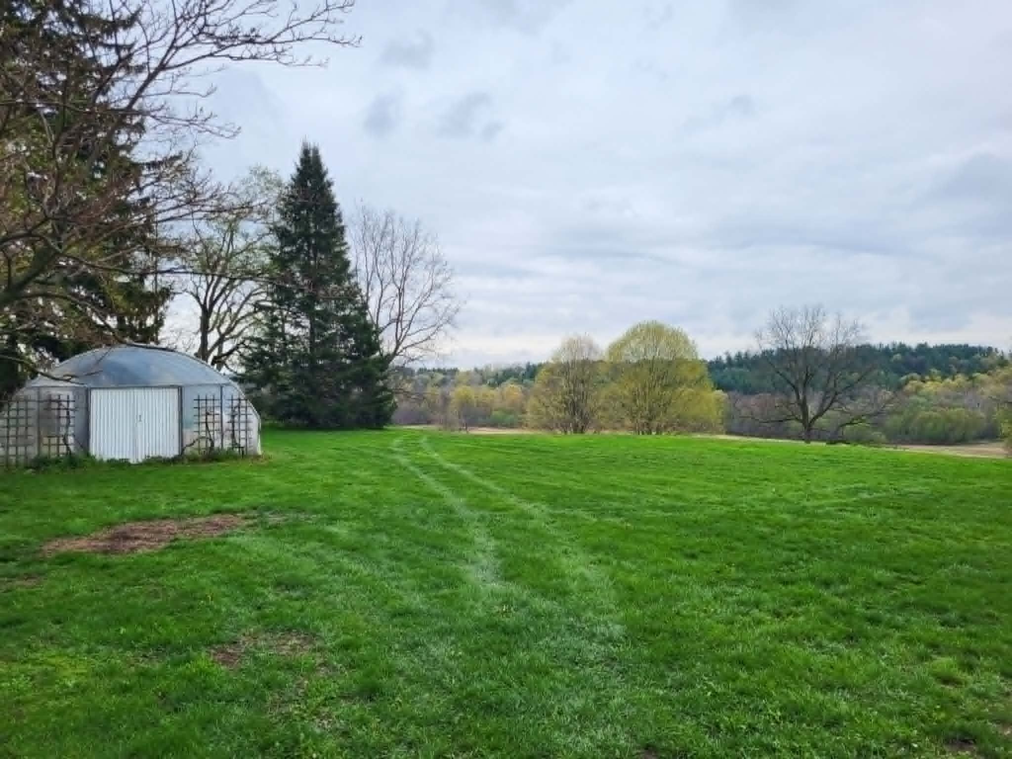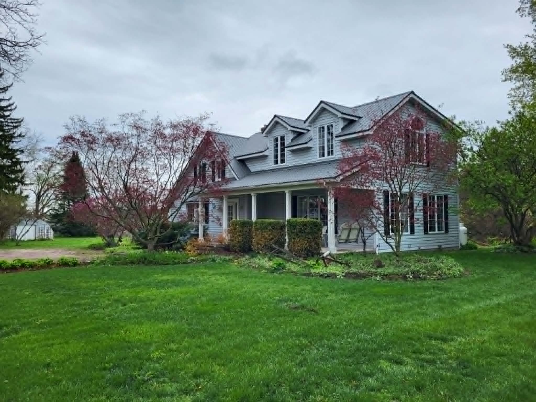 Panoramic views | majestic wildlife | serene privacy - welcome to 9088 culloden road! This 3. 76 acre property overlooks rolling hills of country fields and forest. Relax in quiet paradise while soaking in the sun on a large tiered deck with pergola. Snack on the green seedless grapes and black berries while cultivating in the greenhouse. The beautifully renovated kitchen features quartz tops and cherry cabinetry. A wood fireplace and wooden interior finishes provide a cozy cottage feel in the living room. Tall ceilings with exposed beams and a propane fireplace in the family room set a wonderful ambiance for gathering. The 4-season sunroom is ripe for viewings of bald eagles, hawks, song birds, deer, turkeys, and more. Numerous recent upgrades include a metal roof (2025), most windows (2025), furnace (2020), and a heatmor outdoor wood furnace (2023) to provide high efficiency heating to the home. Ample storage space can be found in the basement plus in the 32' x 16' garage/workshop. Golf enthusiasts will enjoy a 1-minute drive to the lovely eden golf club. The hilled south-east yard is perfect for tobogganing in the winter and slip & slides in the summer. Beautiful countryside living awaits you!