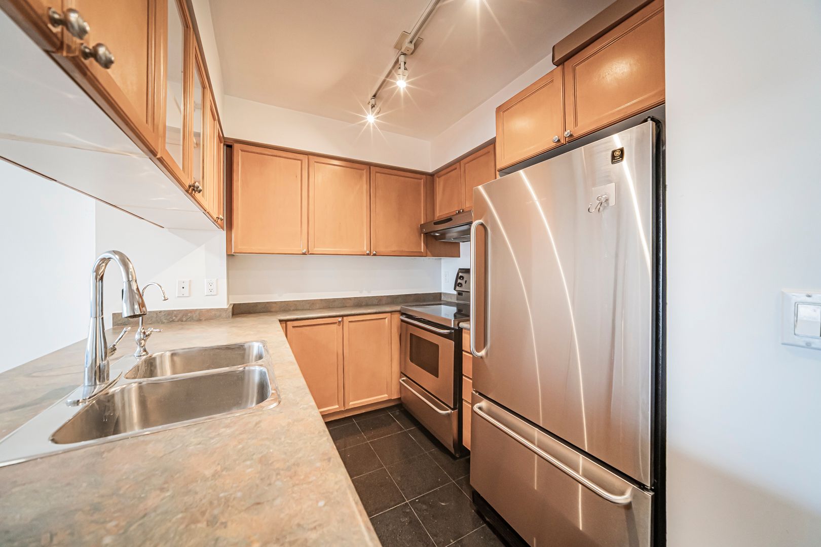 • Well-equipped kitchen with stainless steel appliances and breakfast bar.