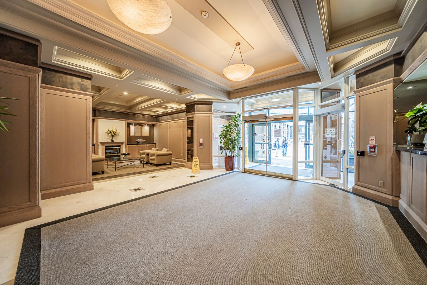 • Open concept living and dining area with floor-to-ceiling windows.