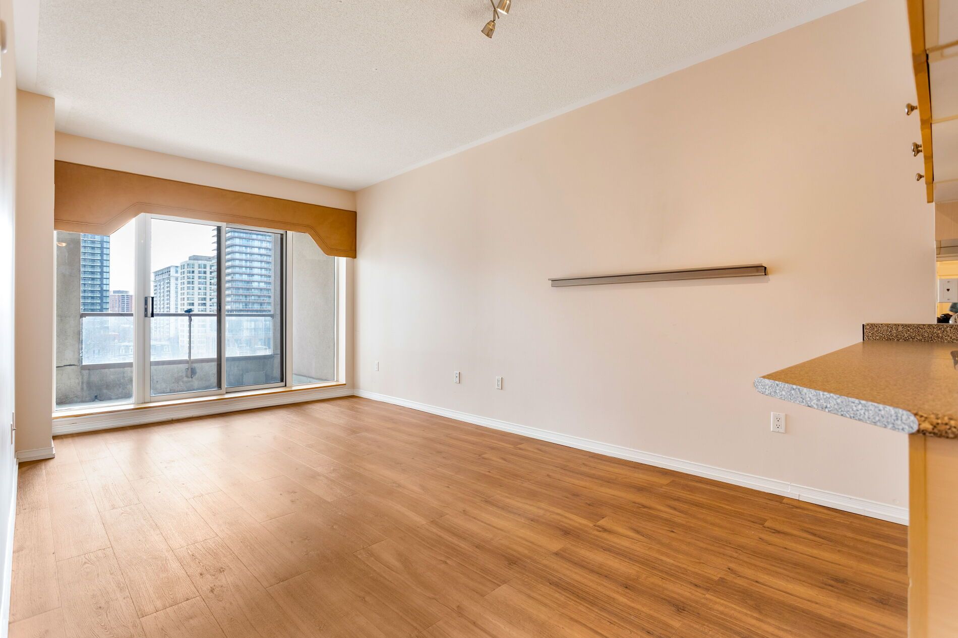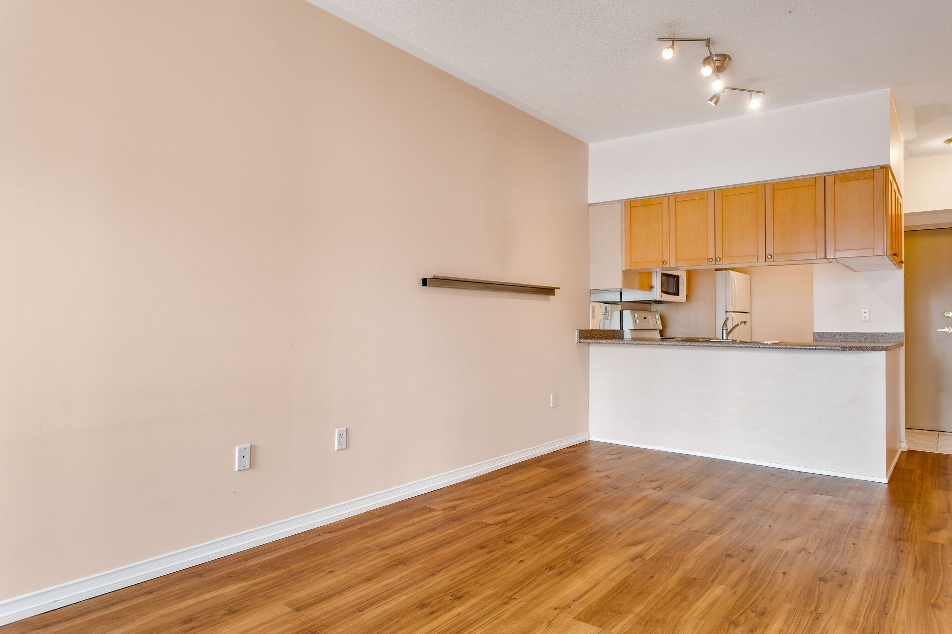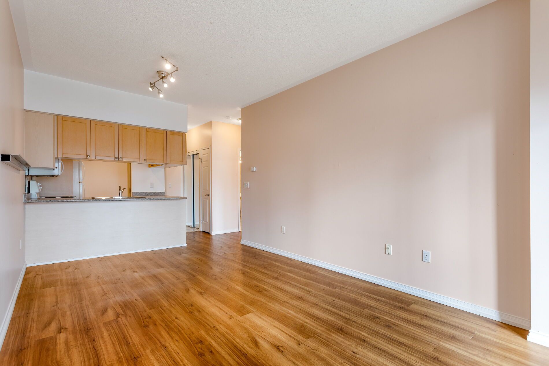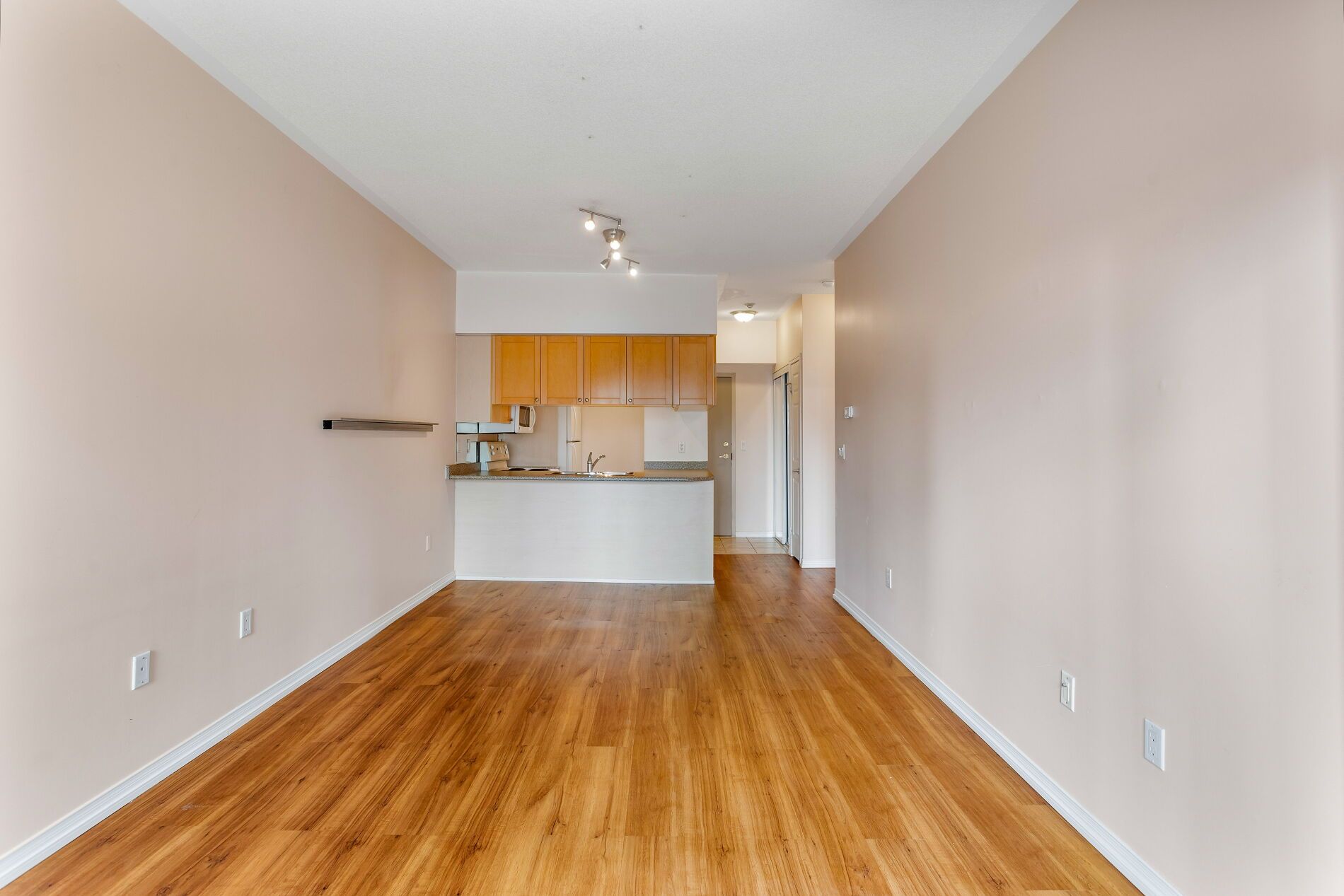 • Efficient 571 sq ft layout with open concept living and dining area.